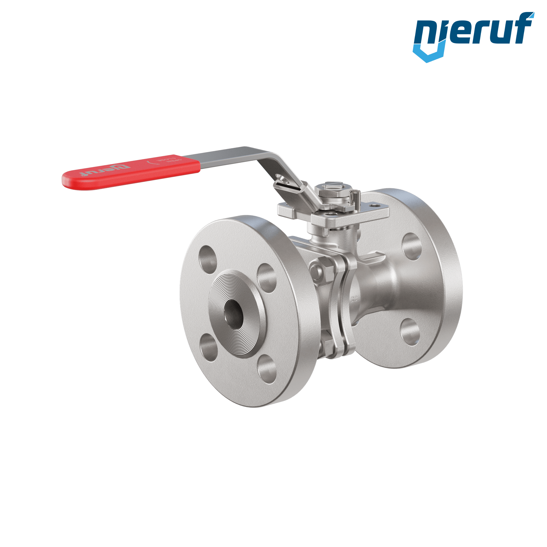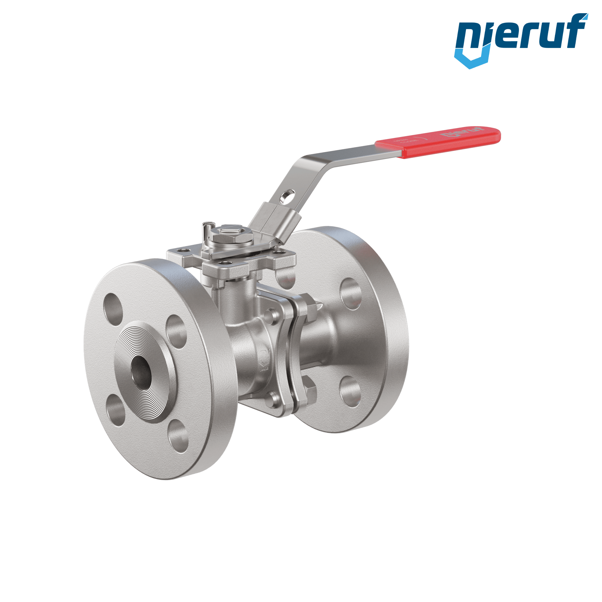 Kołnierzowy zawór kulowy DN15 PN40 FK06, korpus ze stali nierdzewnej 1.4408, kula ze stali nierdzewnej 1.4401, uszczela z PTFE do płynnych i gazowych mediów