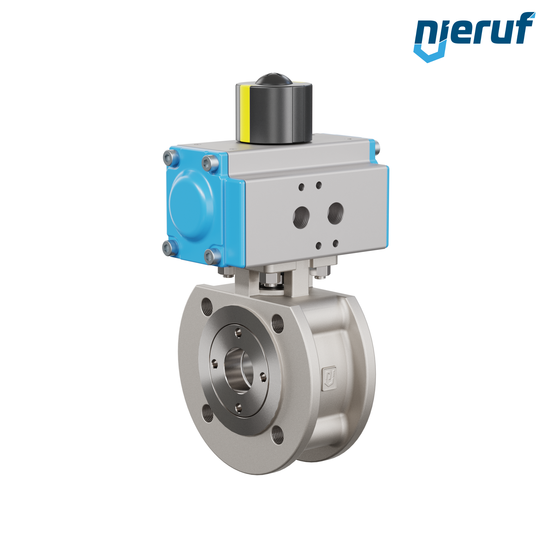 W przypadku tego wysokiej jakości automatycznego kołnierzowego zaworu kulowego wykonanego ze stali nierdzewnej z pneumatycznym siłownikiem obrotowym (GD = dwustronnego działania) możliwy jest bezpośredni montaż kołnierzowy zaworów elektromagnetycznych zgodnie ze standardami Namur.