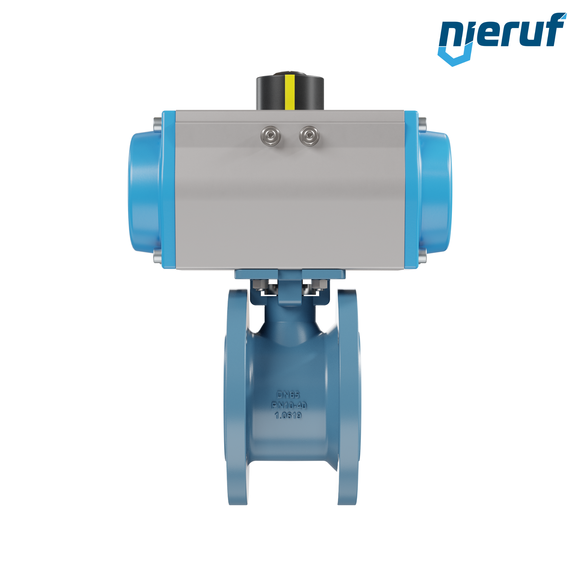 Kompaktowy zawór kulowy kołnierzowy DN65 staliwo 1.0619 PK06 pneumatyczny siłownik obrotowy GS105 wykonany z aluminium (funkcja: GS = jednostronnego działania)