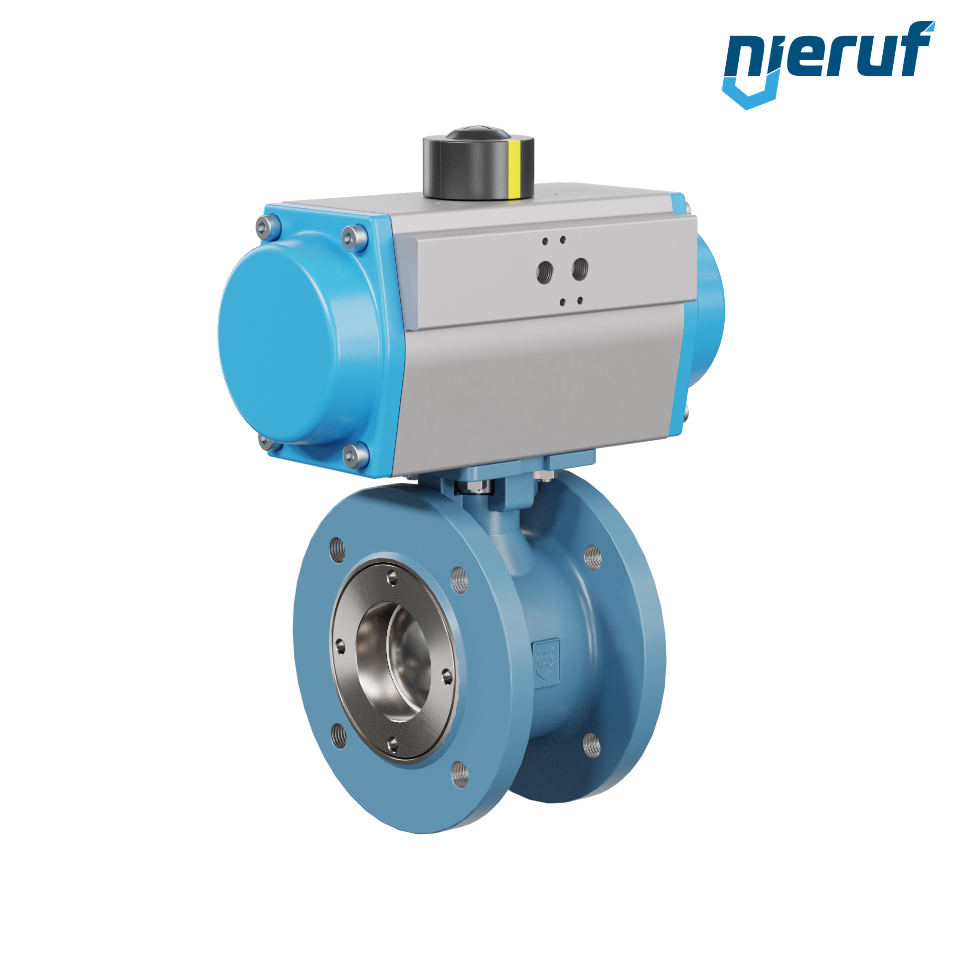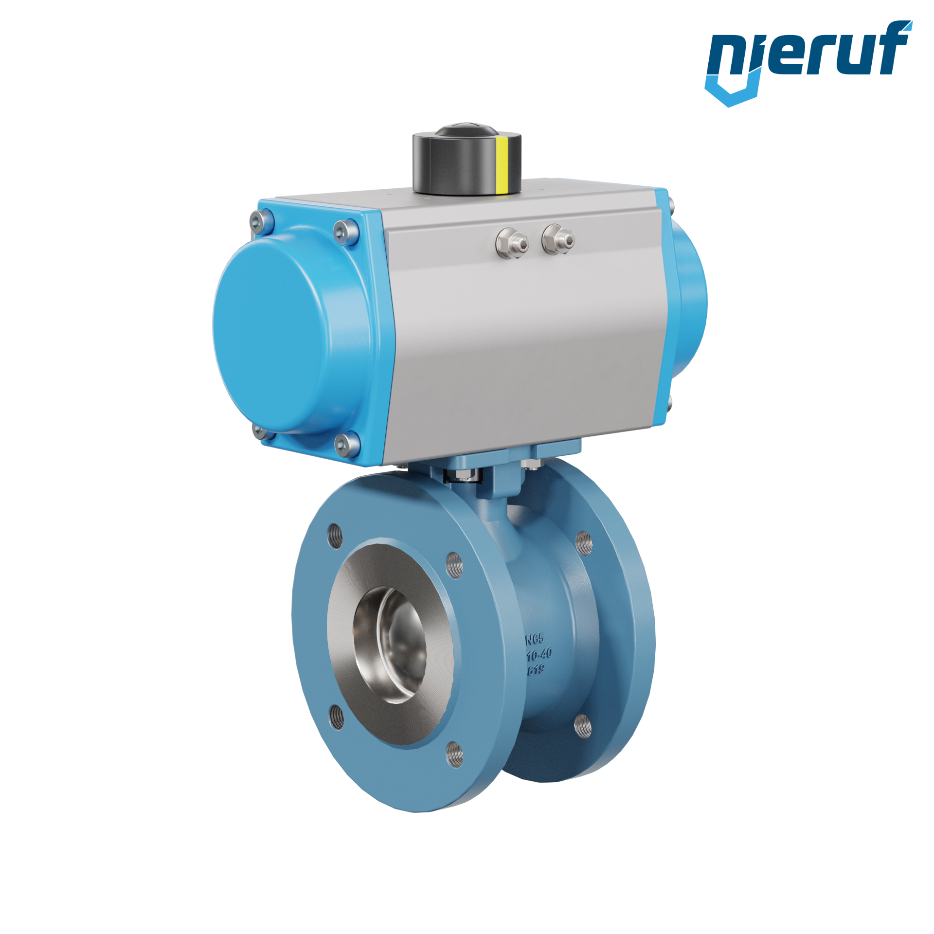 | Cechy charakterystyczne produktu | W przypadku tego wysokiej jakości automatycznego kołnierzowego zaworu kulowego wykonanego ze staliwa z pneumatycznym siłownikiem obrotowym (GS = jednostronnego działania) możliwy jest bezpośredni montaż kołnierzowy zaworów elektromagnetycznych zgodnie ze standardami Namur. |