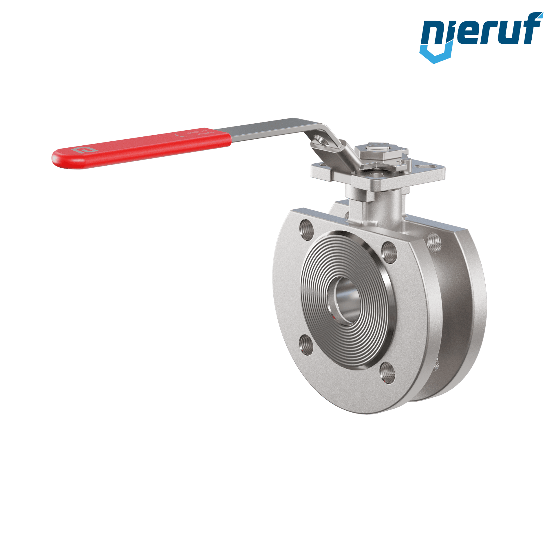 Kompaktowy zawór kulowy ze stali nierdzewnej 1.4408 DN25 PN16, z uszczelnieniem z PTFE i przyłączem kołnierzowym zgodnym z DIN EN 1092-1 PN16 dla płynnych ich gazowych mediów