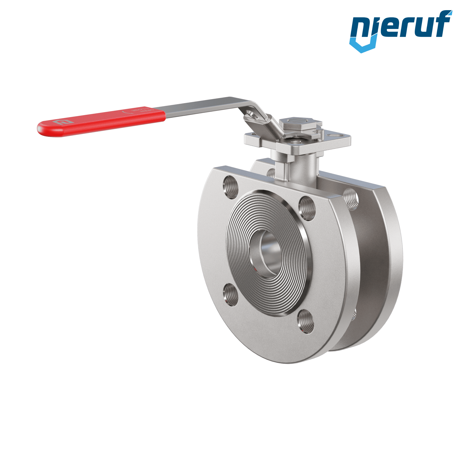 Kompaktowy zawór kulowy ze stali nierdzewnej 1.4408 DN32 PN16, z uszczelnieniem z PTFE i przyłączem kołnierzowym zgodnym z DIN EN 1092-1 PN16 dla płynnych ich gazowych mediów
