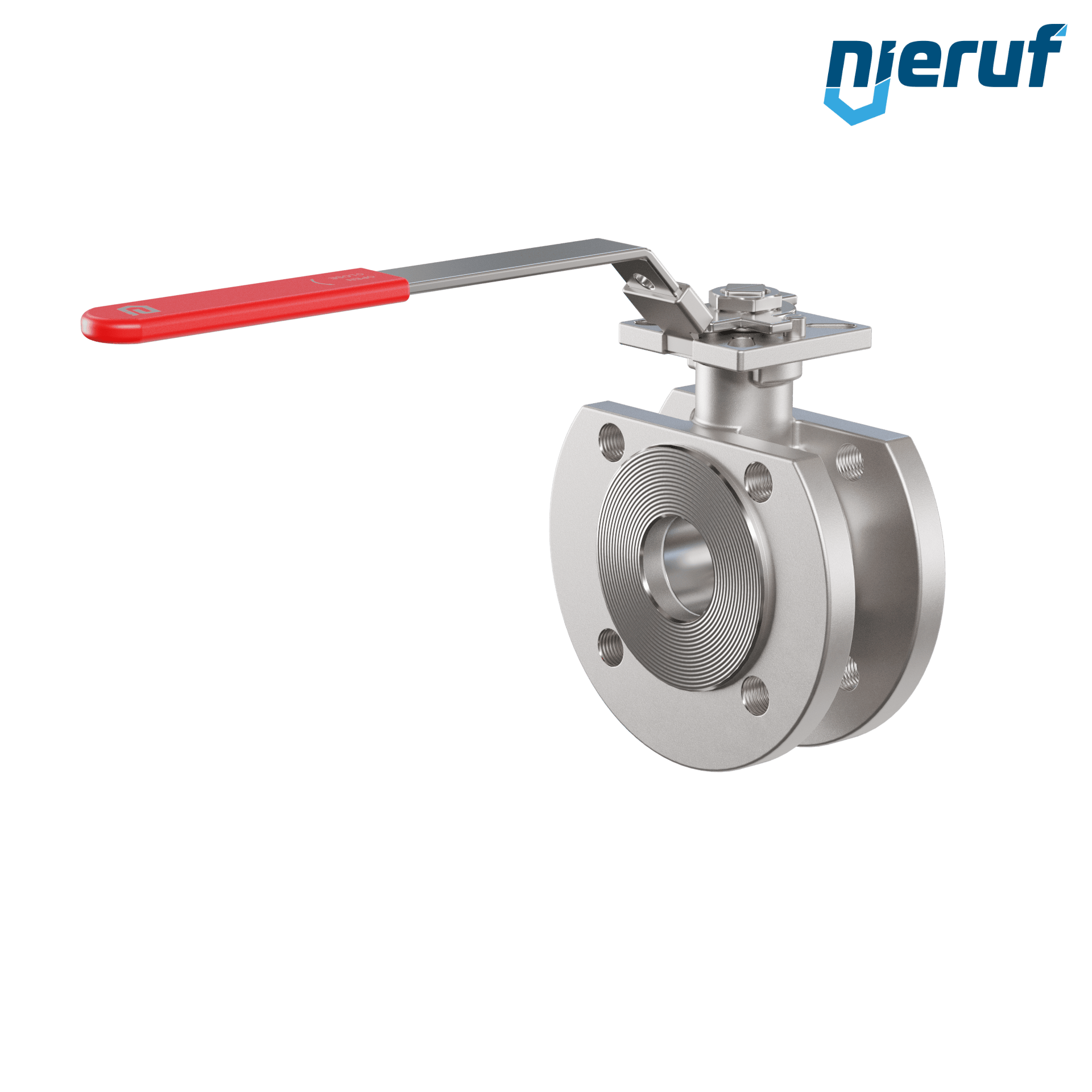 Kompaktowy zawór kulowy ze stali nierdzewnej 1.4408 DN40 PN16, z uszczelnieniem z PTFE i przyłączem kołnierzowym zgodnym z DIN EN 1092-1 PN16 dla płynnych ich gazowych mediów