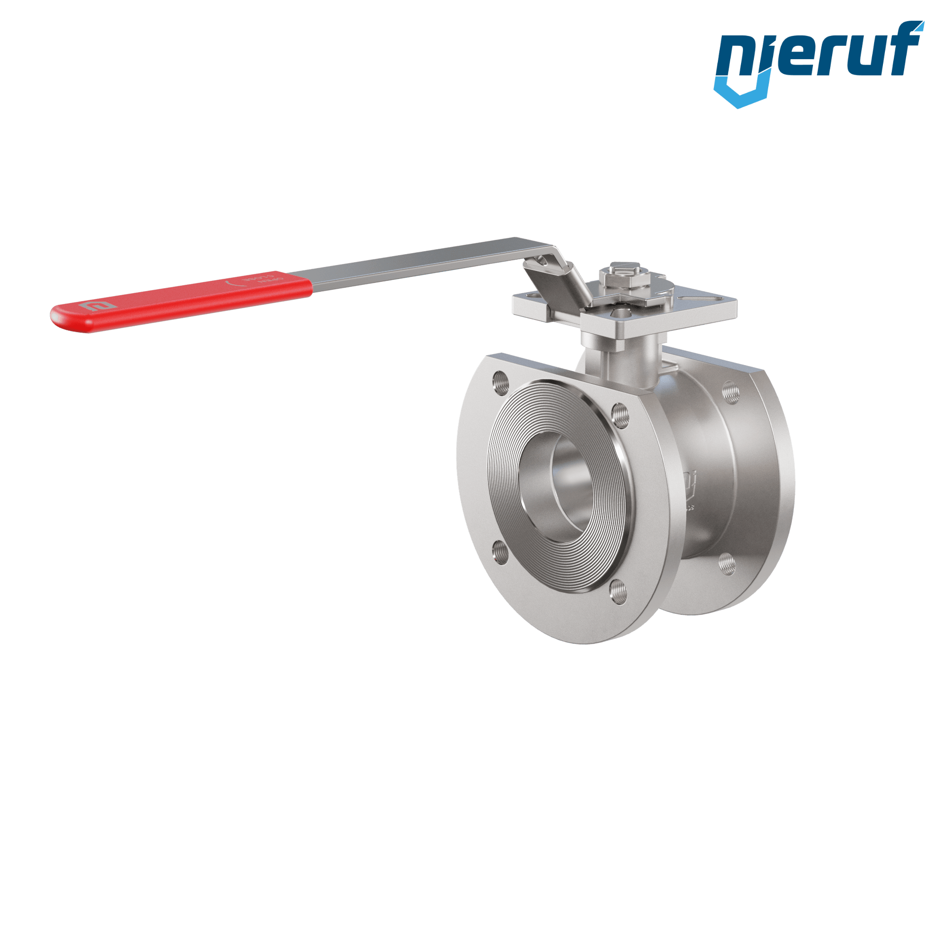 Kompaktowy zawór kulowy ze stali nierdzewnej 1.4408 DN65 PN16, z uszczelnieniem z PTFE i przyłączem kołnierzowym zgodnym z DIN EN 1092-1 PN16 dla płynnych ich gazowych mediów