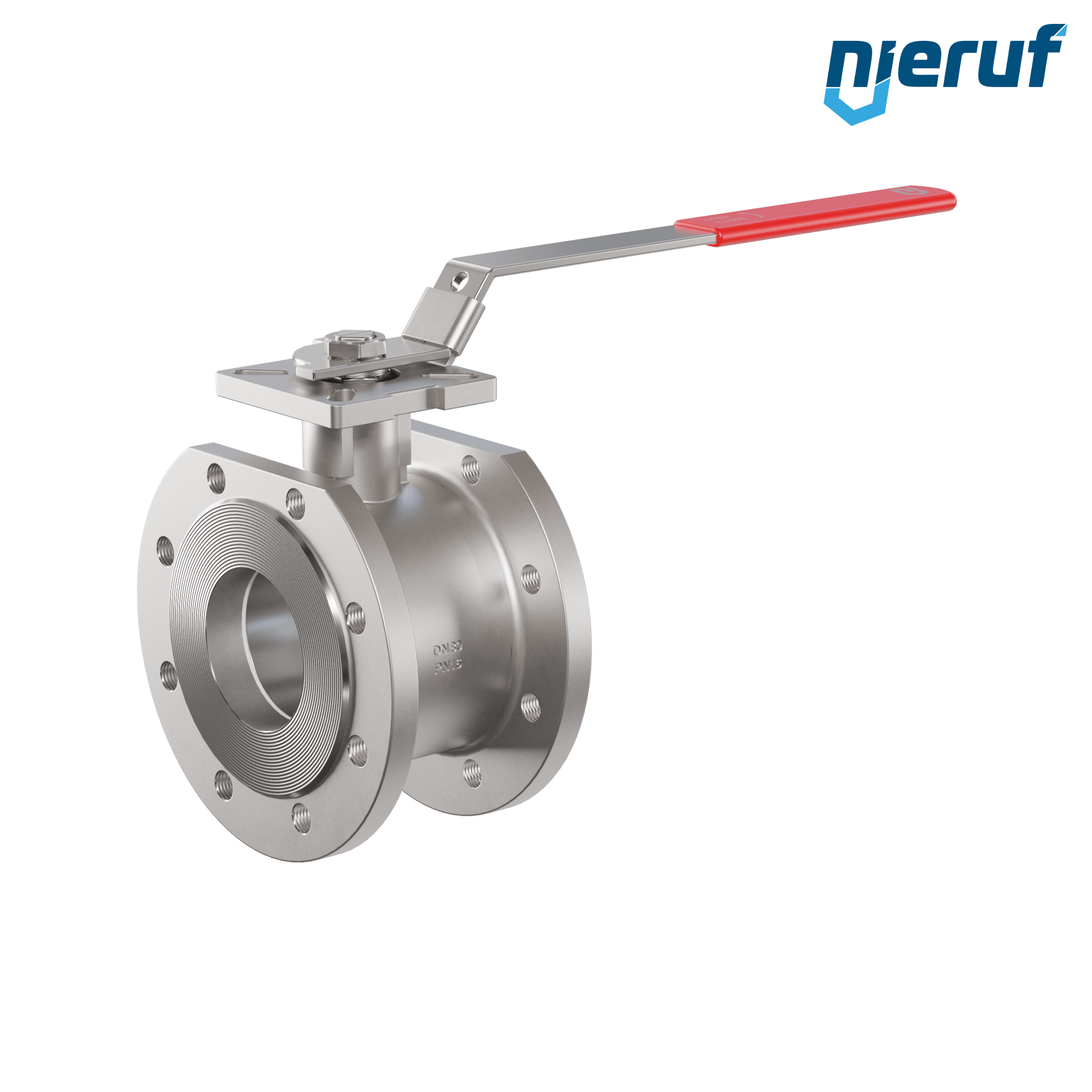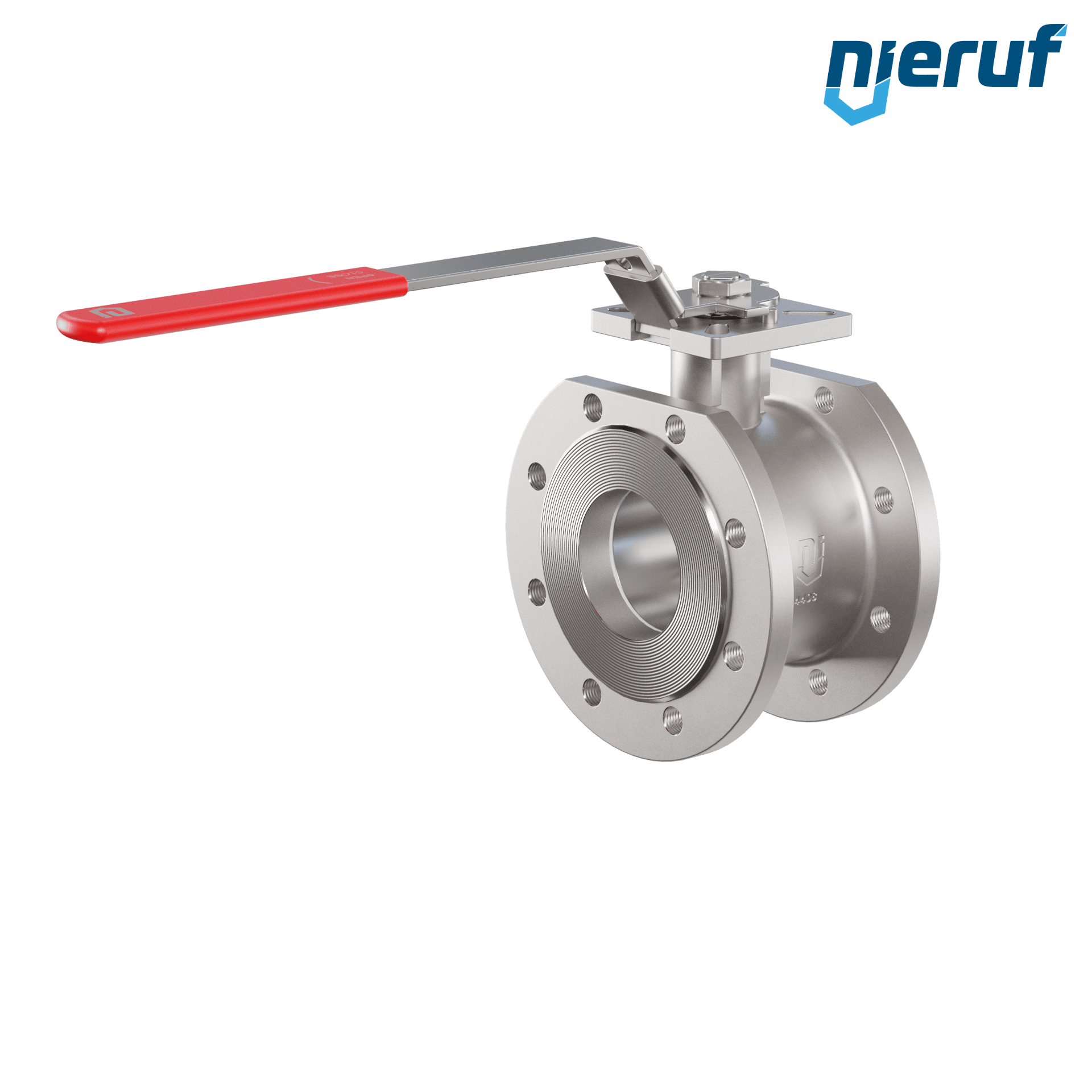 Kompaktowy zawór kulowy ze stali nierdzewnej 1.4408 DN80 PN16, z uszczelnieniem z PTFE i przyłączem kołnierzowym zgodnym z DIN EN 1092-1 PN16 dla płynnych ich gazowych mediów