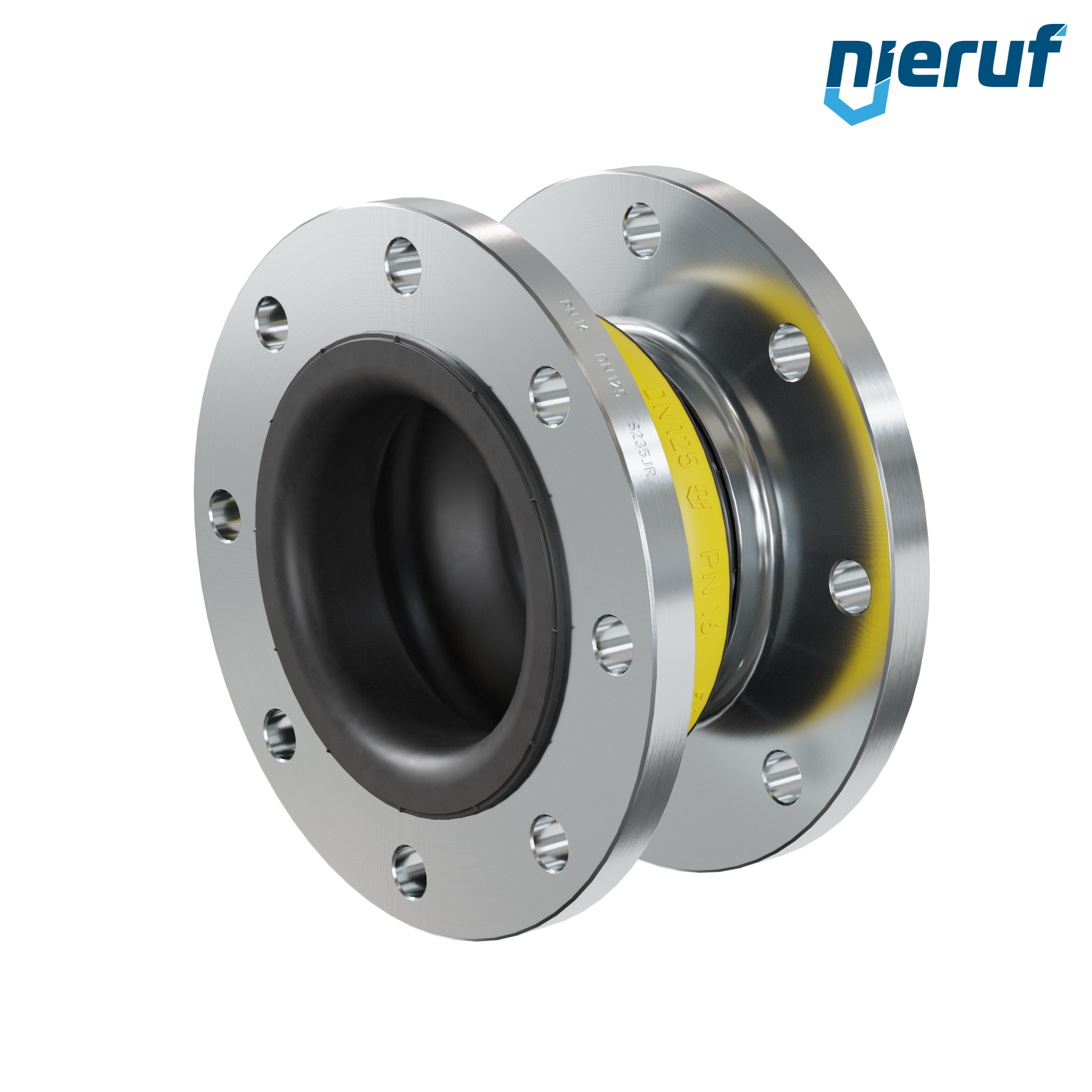 Wysokiej jakości gumowy kompensator z uszczelką NBR i stalowymi kołnierzami. Na życzenie typ ten może zostać rozszerzony o wykładzinę PTFE, podciśnieniowe pierścienie nośne i inne opcje.