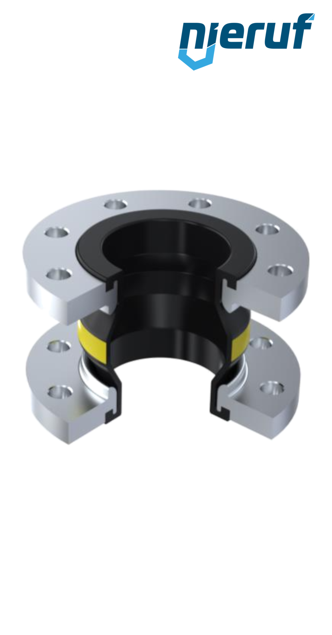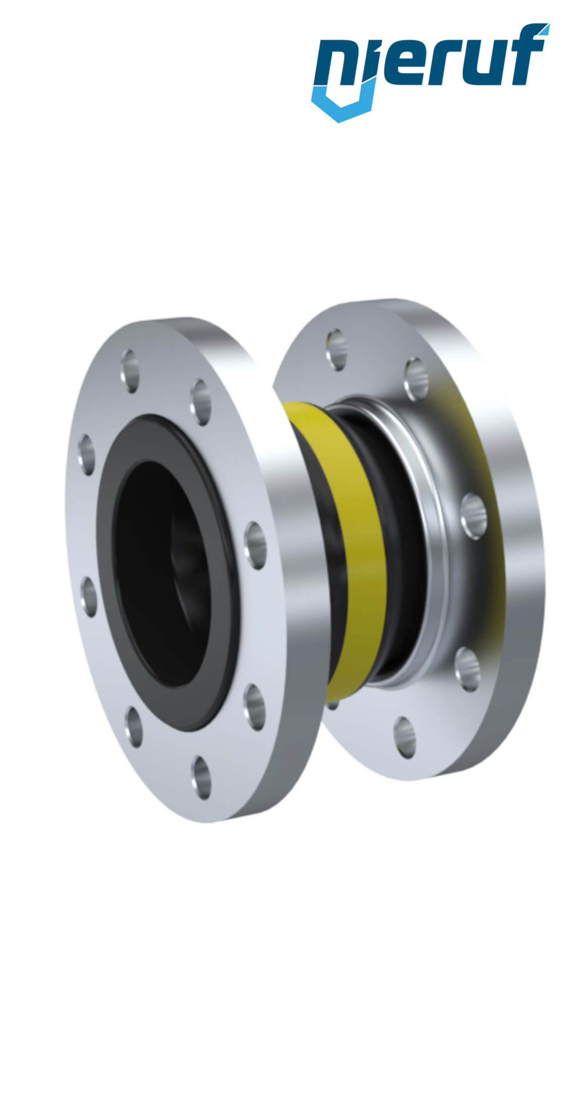 Wysokiej jakości gumowy kompensator z uszczelką NBR i kołnierzami ze stali nierdzewnej. Na życzenie typ ten może zostać rozszerzony o wykładzinę PTFE, podciśnieniowe pierścienie nośne i inne opcje.