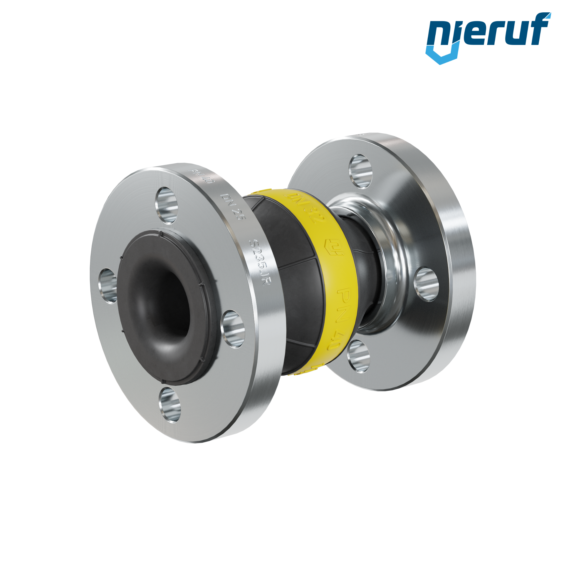 Gumowy Kompensator KP04 DN25 z manszetą NBR i kołnierzem stalowym do płynnych i gazowych mediów (z wyjątkiem pary)