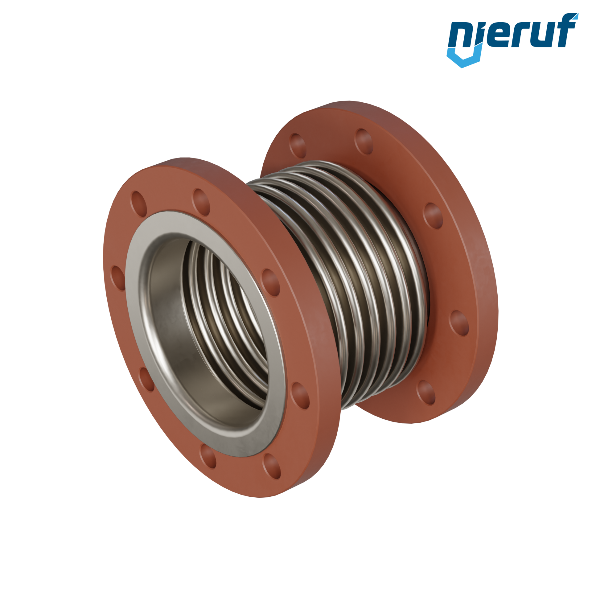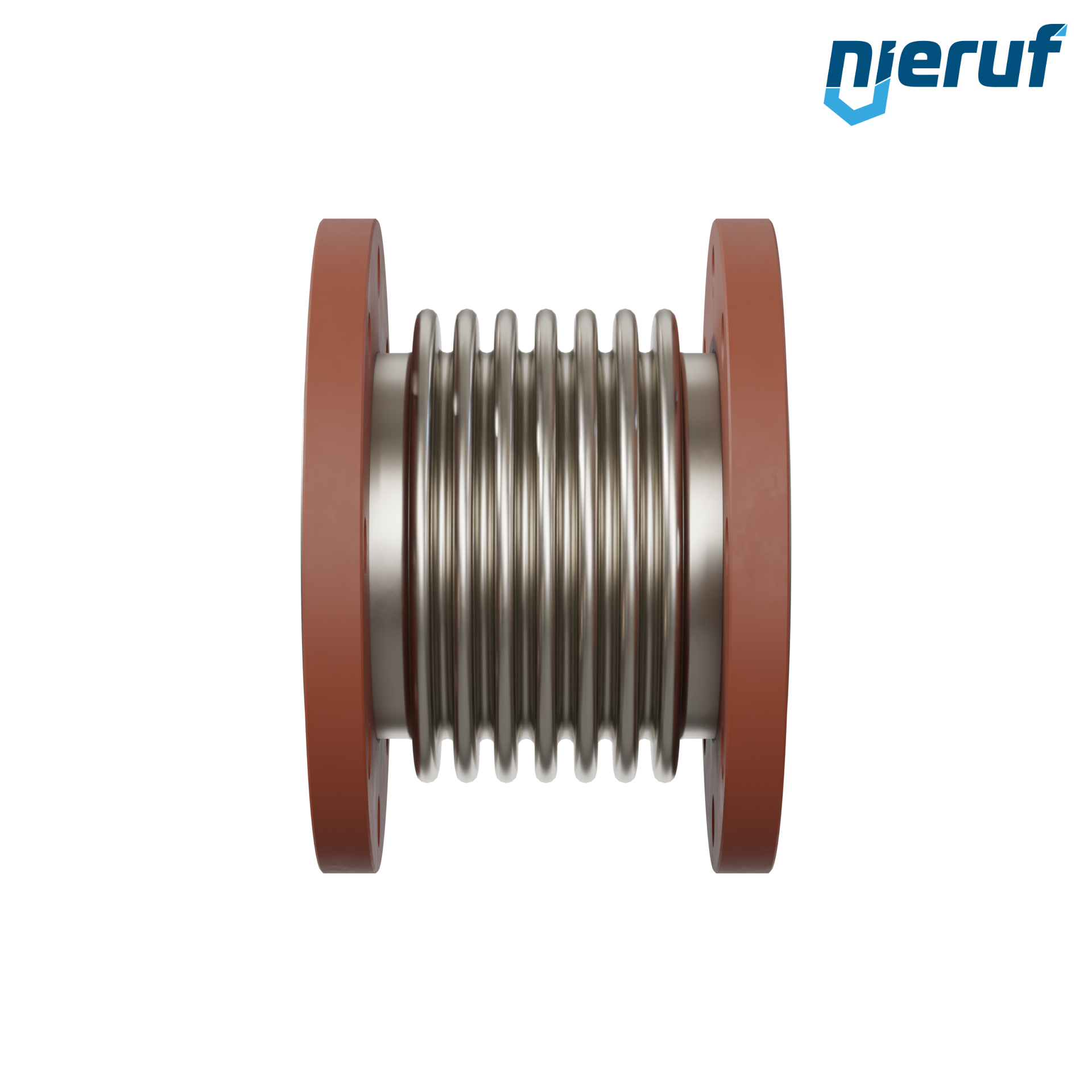 Ten wysokiej jakości kompensator osiowy z mieszkiem ze stali nierdzewnej i stalowymi kołnierzami kielichowymi nadaje się do stosowania przy wysokich temperaturach i trudnych warunkach. Typ ten może być również oferowany w innych średnicach nominalnych, stopniach ciśnienia i długościach, a także ze specjalną powłoką i przedłużony o rurę prowadzącą lub rurę ochronną.
