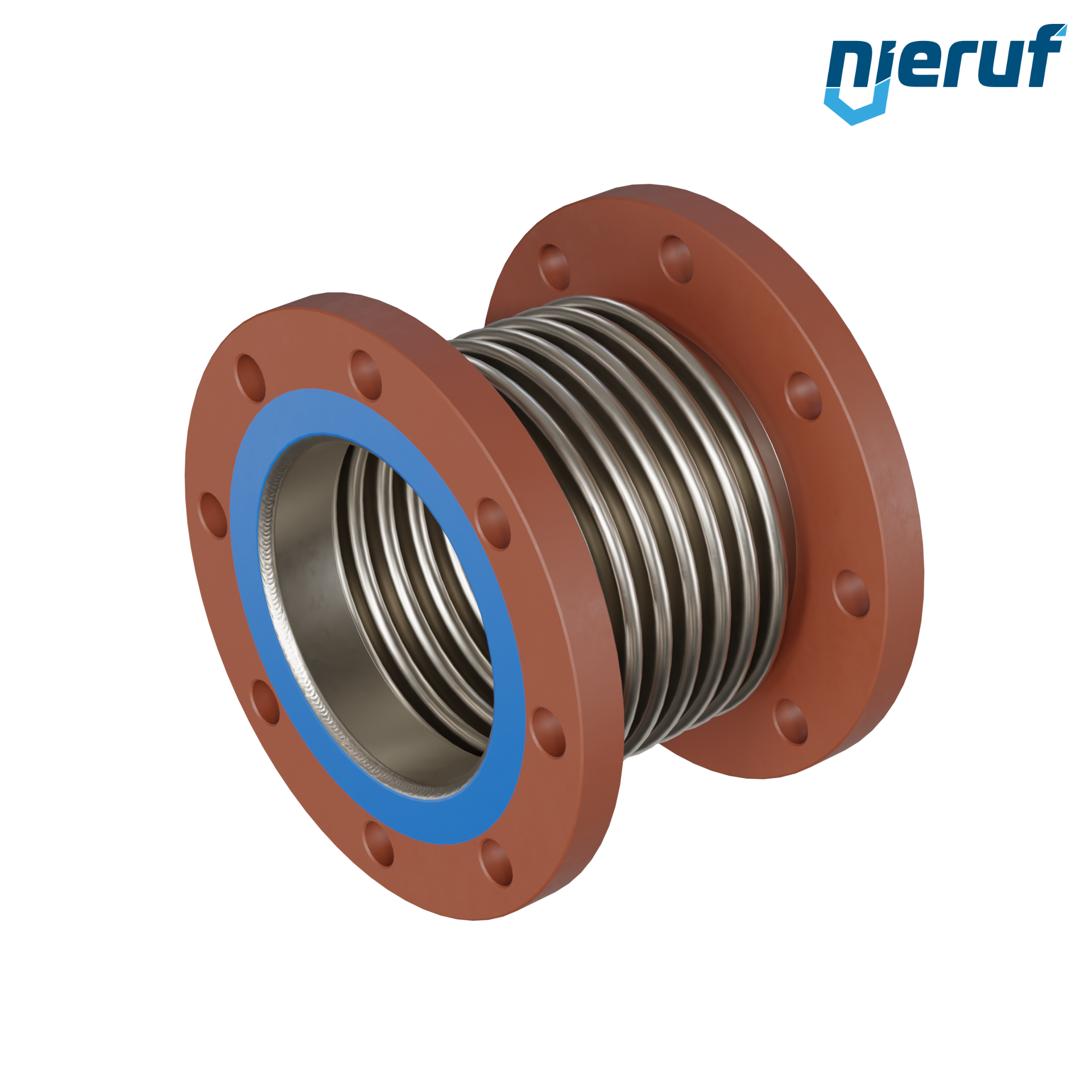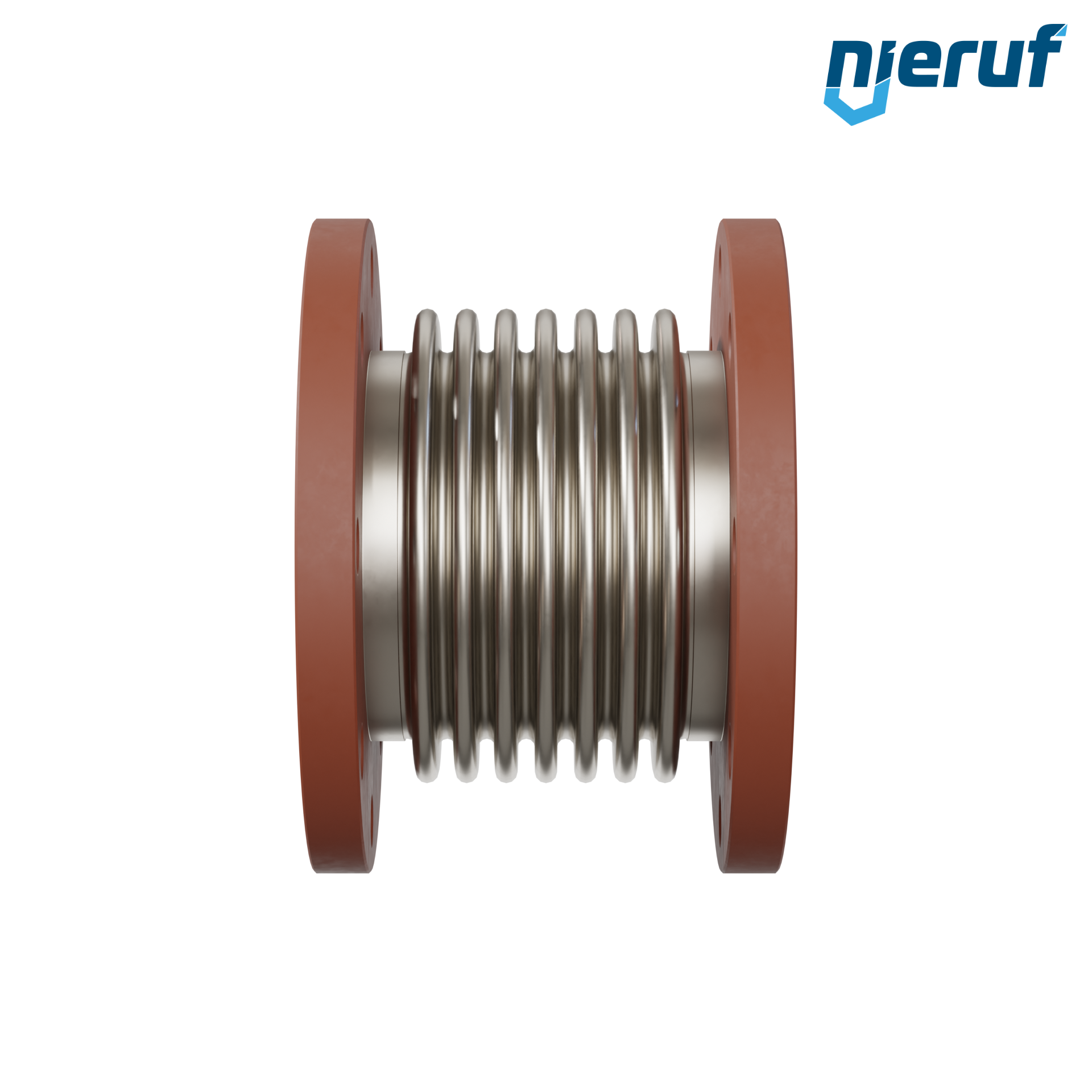 Ten wysokiej jakości kompensator osiowy z mieszkiem ze stali nierdzewnej i stałymi kołnierzami stalowymi nadaje się do stosowania przy wysokich temperaturach i trudnych warunkach. Typ ten może być również oferowany w innych średnicach nominalnych, stopniach ciśnienia i długościach, a także ze specjalną powłoką i przedłużony o rurę prowadzącą lub rurę ochronną.