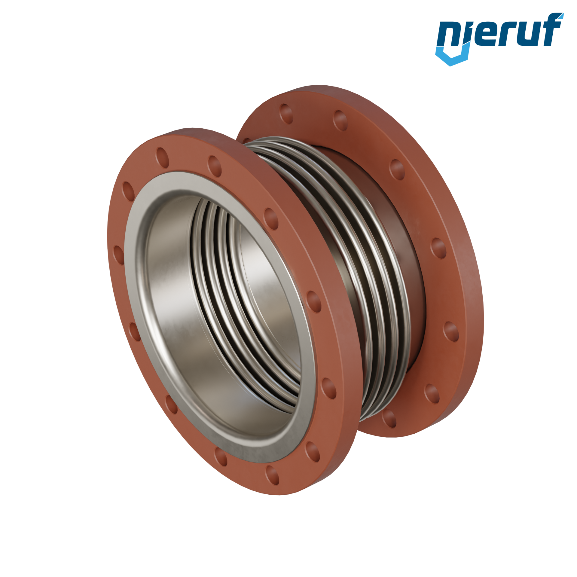 Ten wysokiej jakości kompensator osiowy z mieszkiem ze stali nierdzewnej i stalowymi kołnierzami kielichowymi nadaje się do stosowania przy wysokich temperaturach i trudnych warunkach. Typ ten może być również oferowany w innych średnicach nominalnych, stopniach ciśnienia i długościach, a także ze specjalną powłoką i przedłużony o rurę prowadzącą lub rurę ochronną.