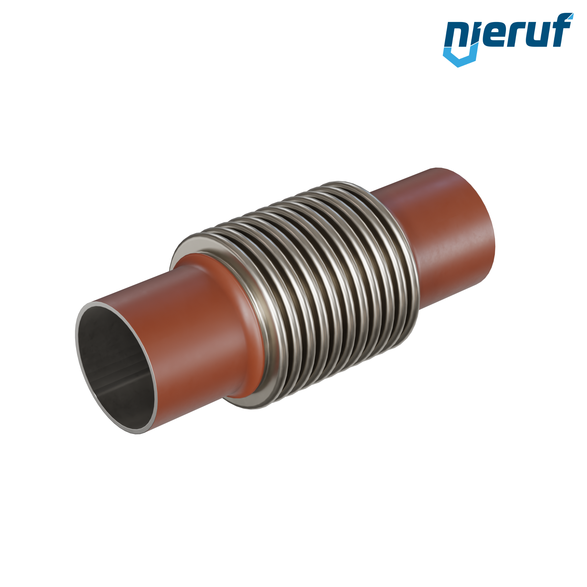 Ten wysokiej jakości kompensator osiowy z mieszkiem ze stali nierdzewnej i stalowymi końcówkami do spawania nadaje się do stosowania przy wysokich temperaturach i trudnych warunkach. Typ ten może być również oferowany w innych średnicach nominalnych, stopniach ciśnienia i długościach, a także ze specjalną powłoką i przedłużony o rurę prowadzącą lub rurę ochronną.