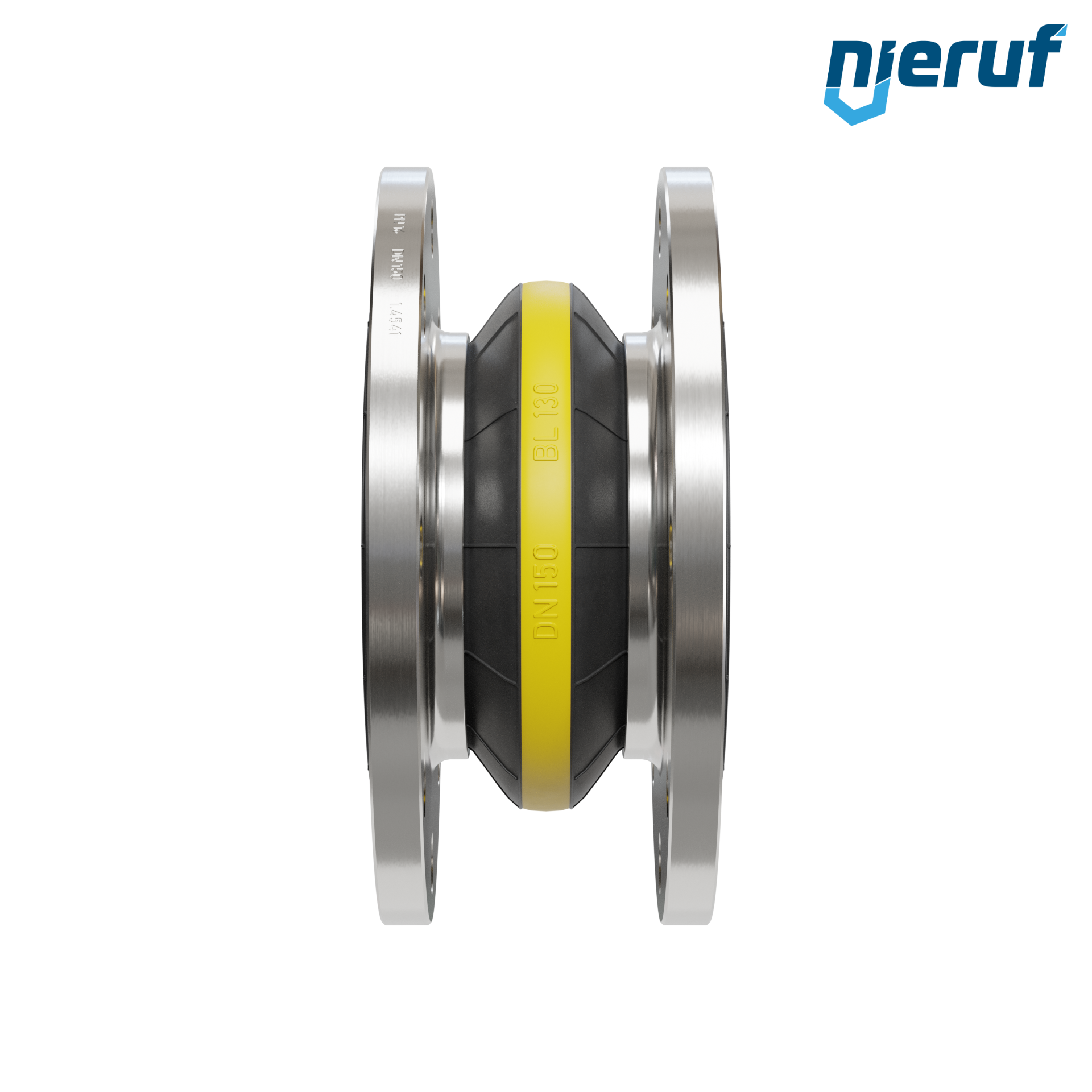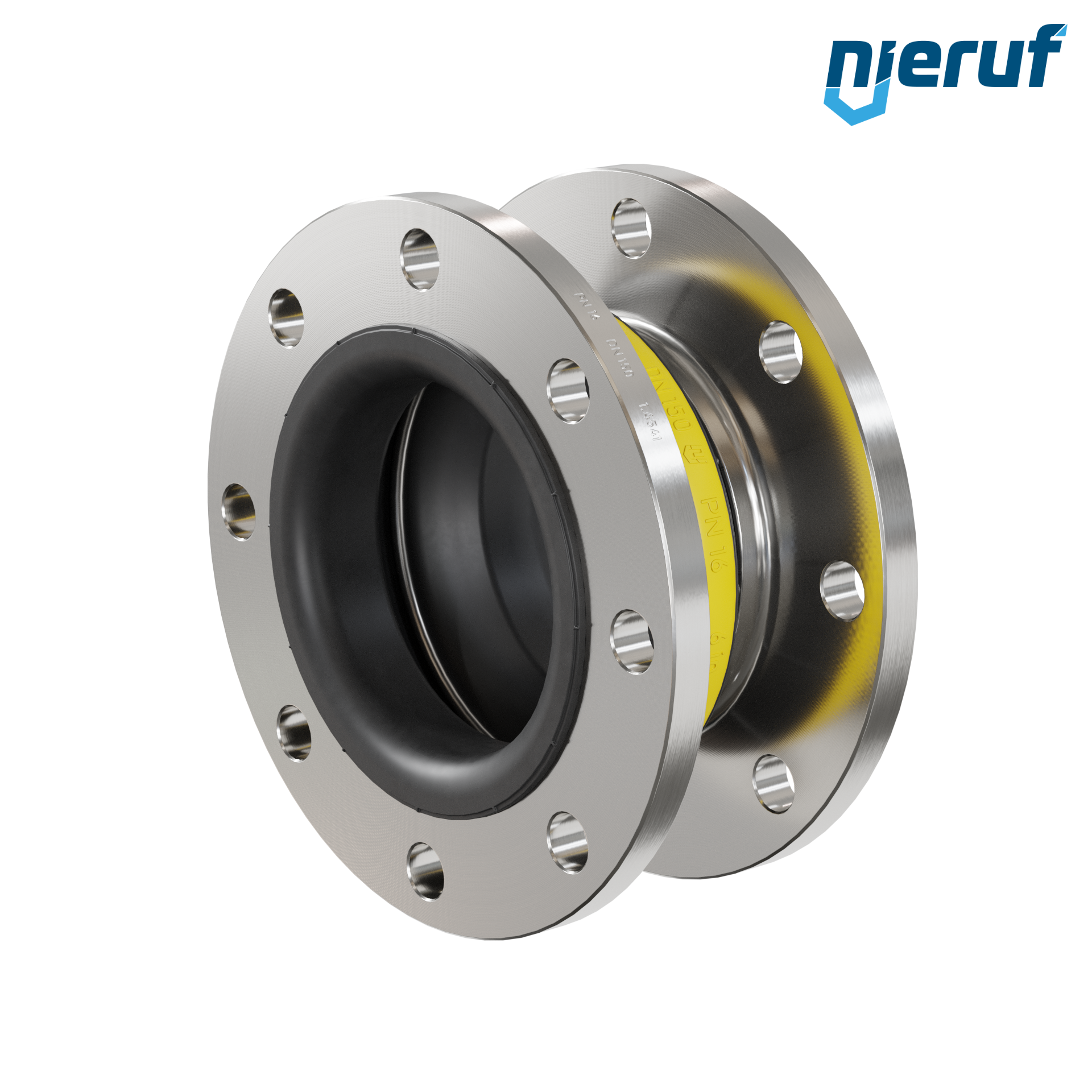 Wysokiej jakości gumowy kompensator z uszczelką NBR i kołnierzami ze stali nierdzewnej. Dodatkowo wyposażony jest w pierścień stabilizujący podciśnienie dla wyższych podciśnień.