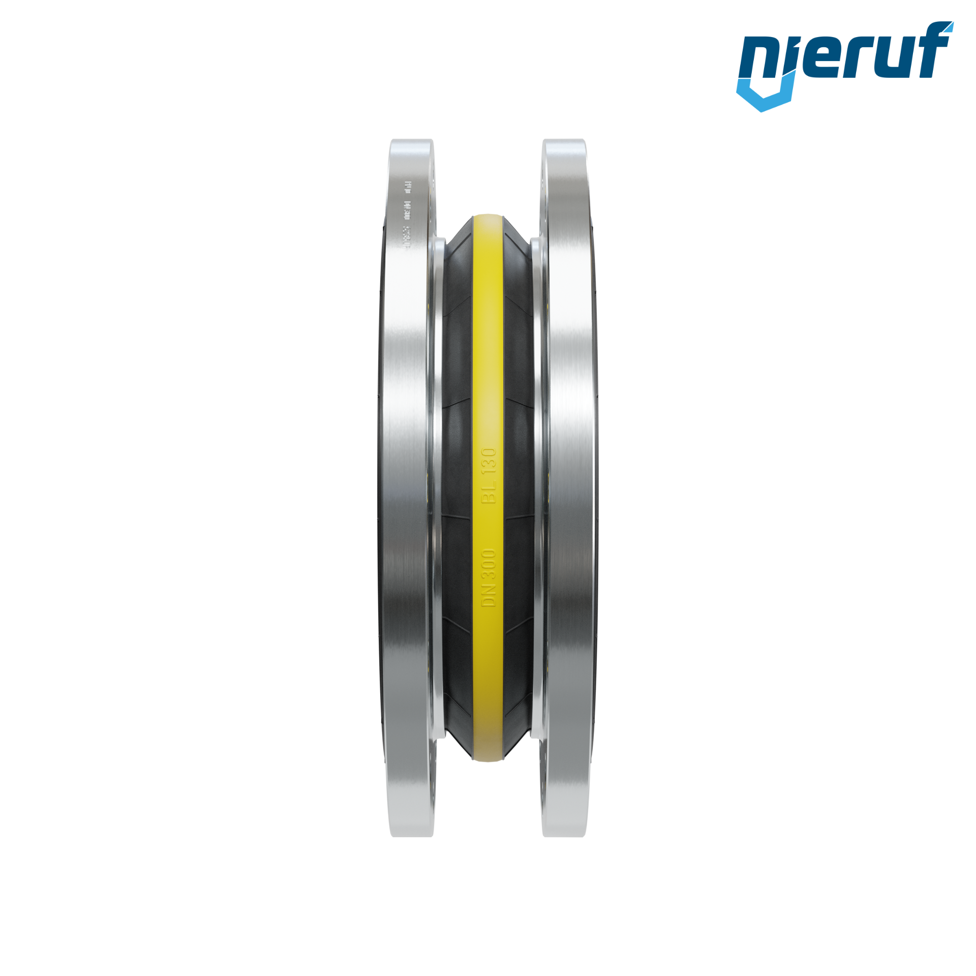 Wysokiej jakości gumowy kompensator z uszczelką NBR i stalowymi kołnierzami. Dodatkowo wyposażony jest w pierścień stabilizujący podciśnienie dla wyższych podciśnień.