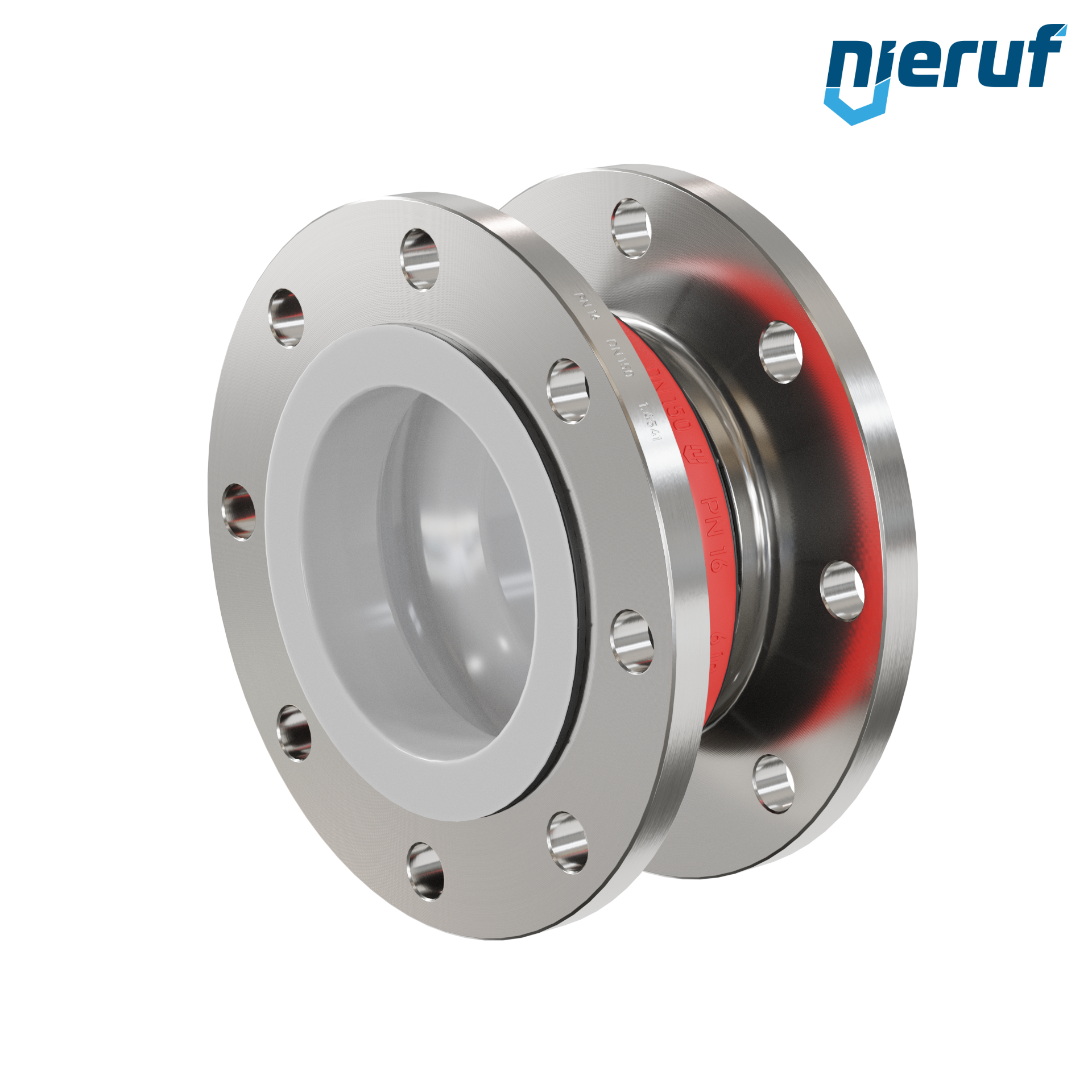 Ten wysokiej jakości kompensator gumowy z uszczelką EPDM i stalowymi kołnierzami posiada dopuszczenie FDA. Ponadto ten kompensator jest wyposażony w wykładzinę PTFE, dzięki czemu ma wysoką odporność chemiczną ze względu na gładką powierzchnię wewnętrzną.