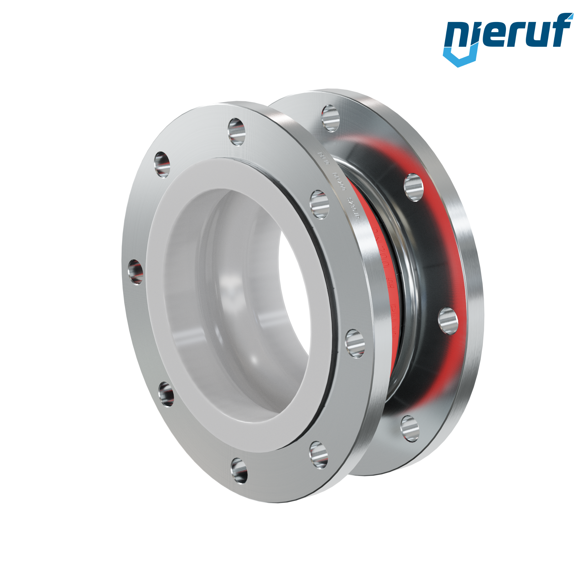 Ten wysokiej jakości kompensator gumowy z uszczelką EPDM i stalowymi kołnierzami posiada dopuszczenie FDA. Ponadto ten kompensator jest wyposażony w wykładzinę PTFE, dzięki czemu ma wysoką odporność chemiczną ze względu na gładką powierzchnię wewnętrzną.
