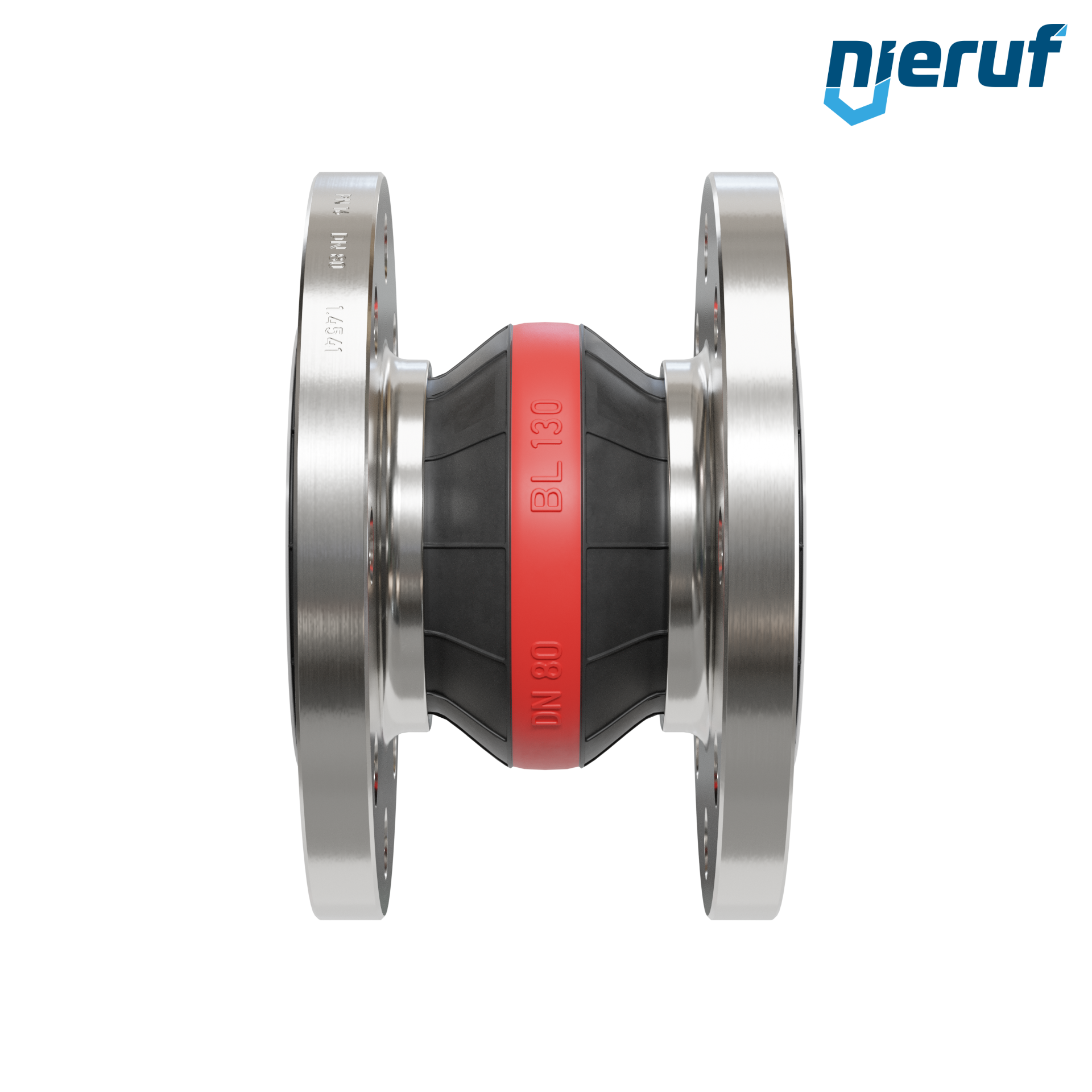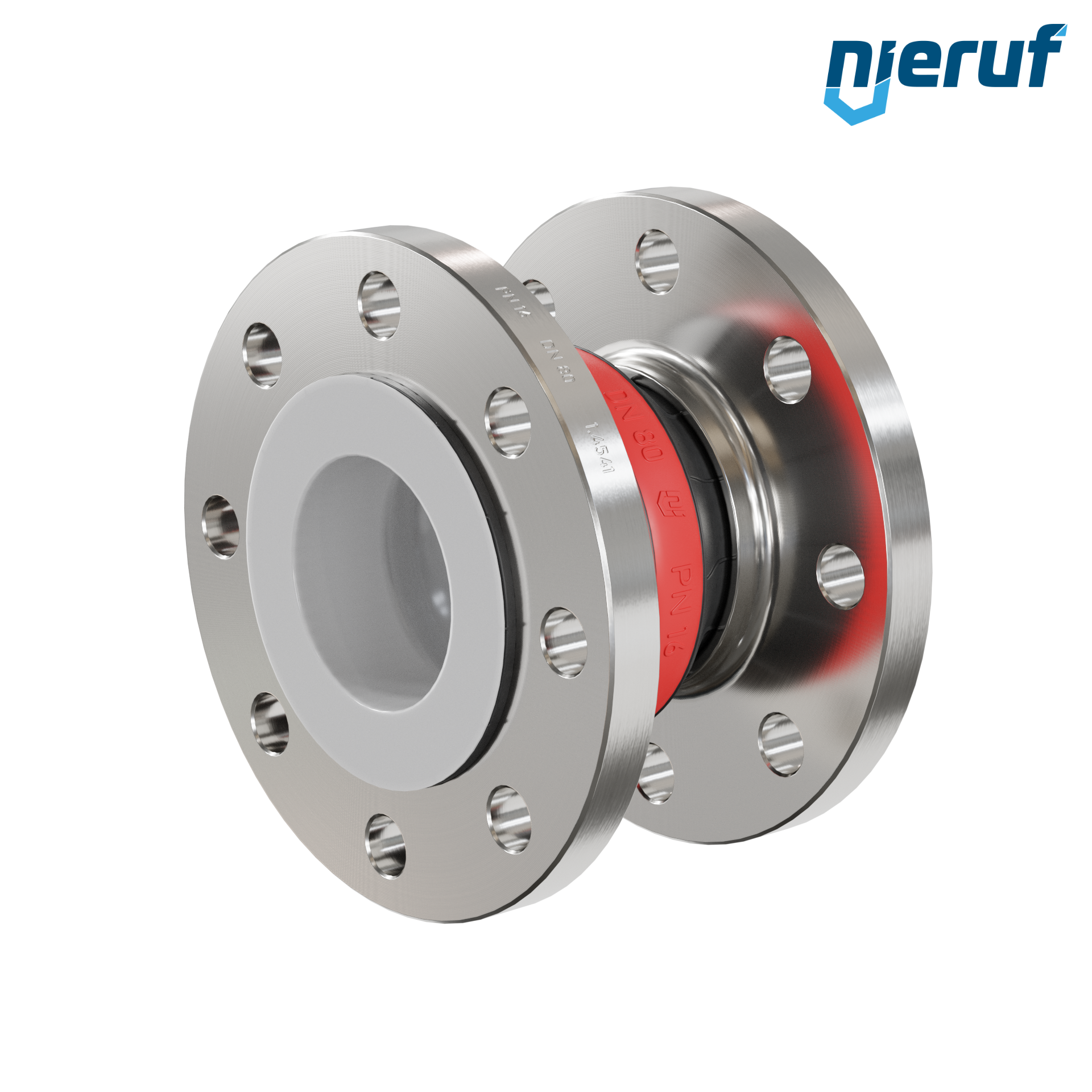 Ten wysokiej jakości kompensator gumowy z uszczelką EPDM i stalowymi kołnierzami posiada dopuszczenie FDA. Ponadto ten kompensator jest wyposażony w wykładzinę PTFE, dzięki czemu ma wysoką odporność chemiczną ze względu na gładką powierzchnię wewnętrzną.