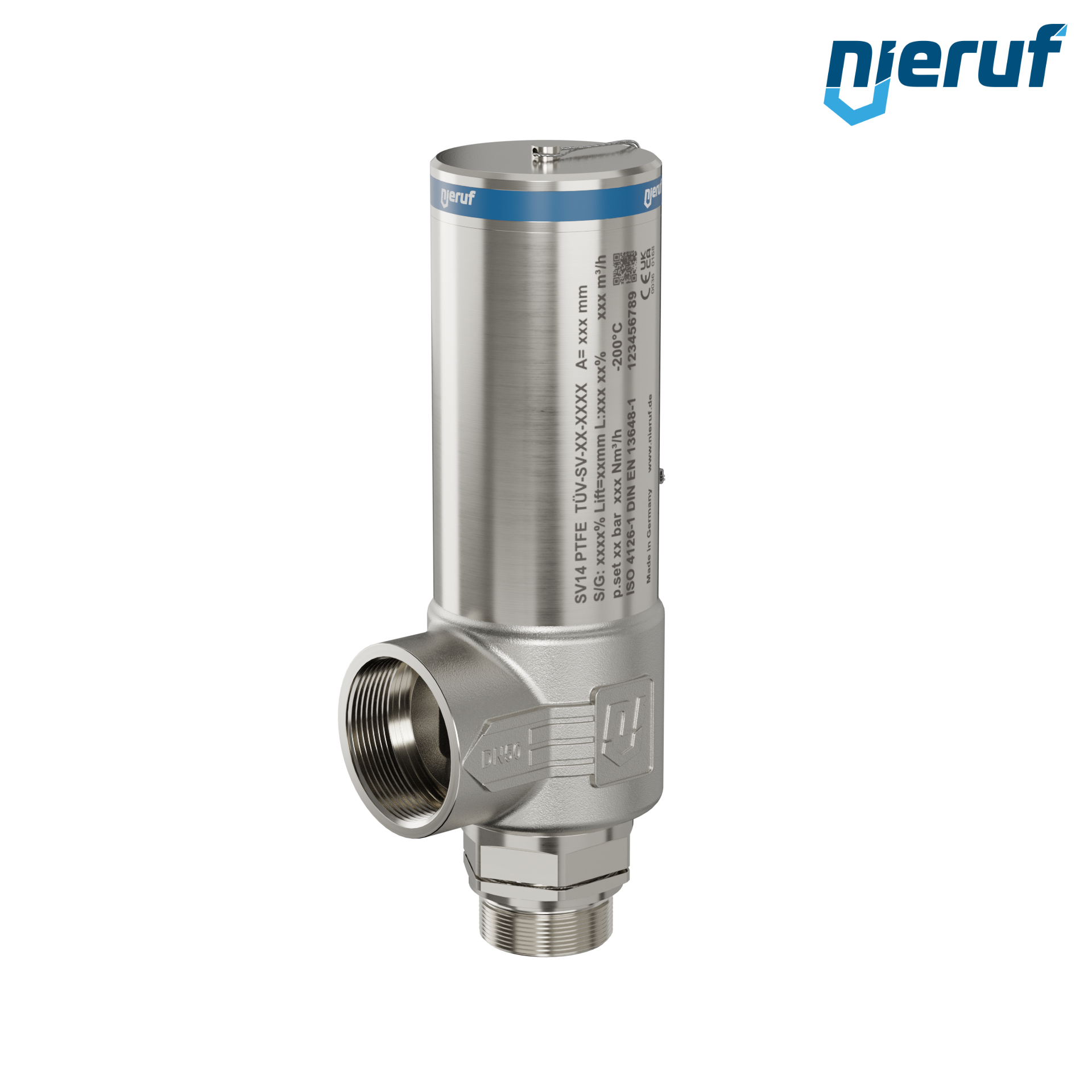 Kriogeniczny zawór bezpieczeństwa DN32 1 1/2" GZ x 2" GW SV14, Stal nierdzewna PTFE, bez dźwigni