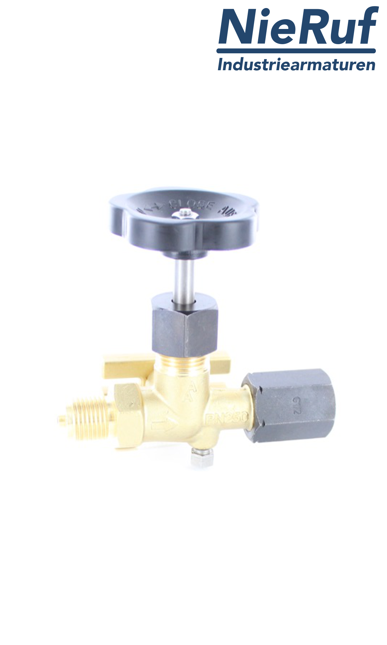 Manometryczny zawór odcinający z mosiądzu 250 bar zgodnie z DIN 16271