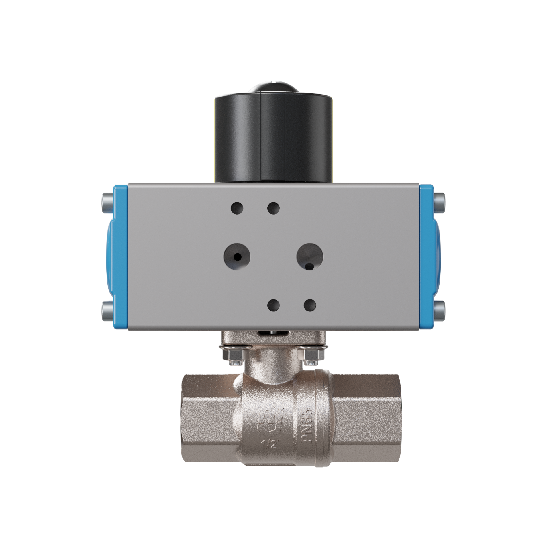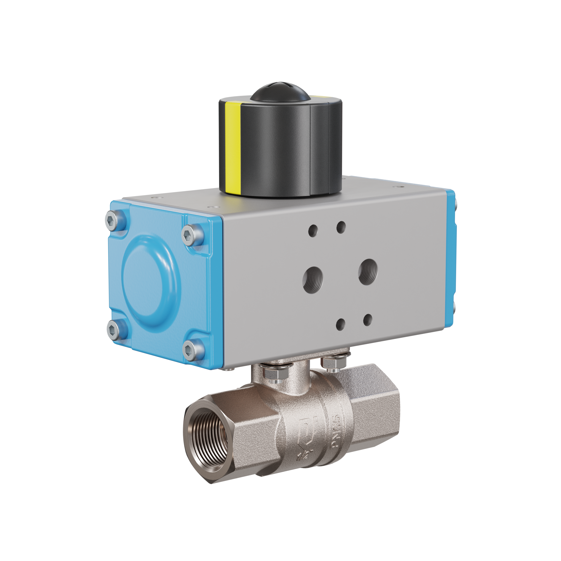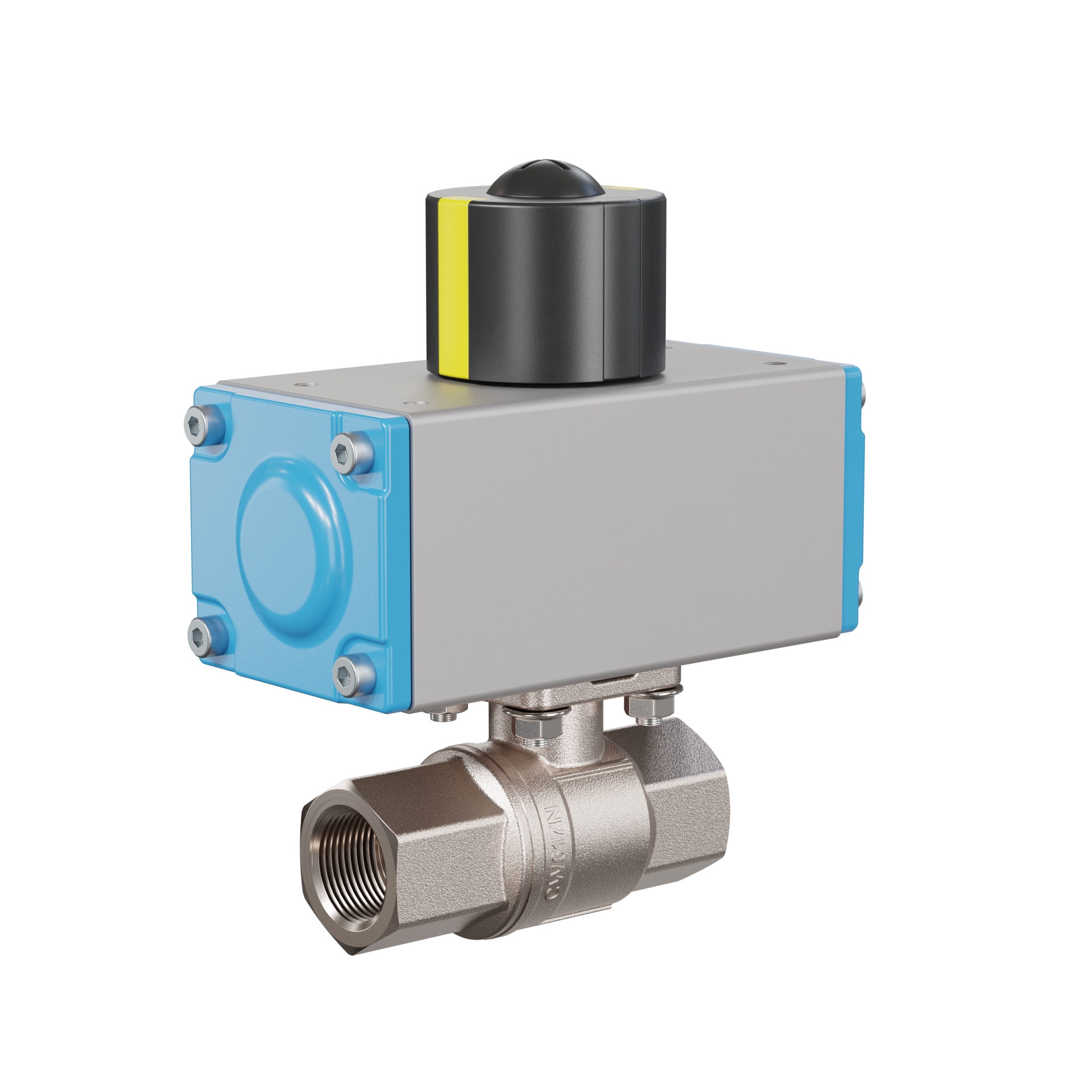 | Budowa | Dwuczęściowy mufowy zawór kulowy z siłownikiem pneumatycznym (dwustronnego działania) |