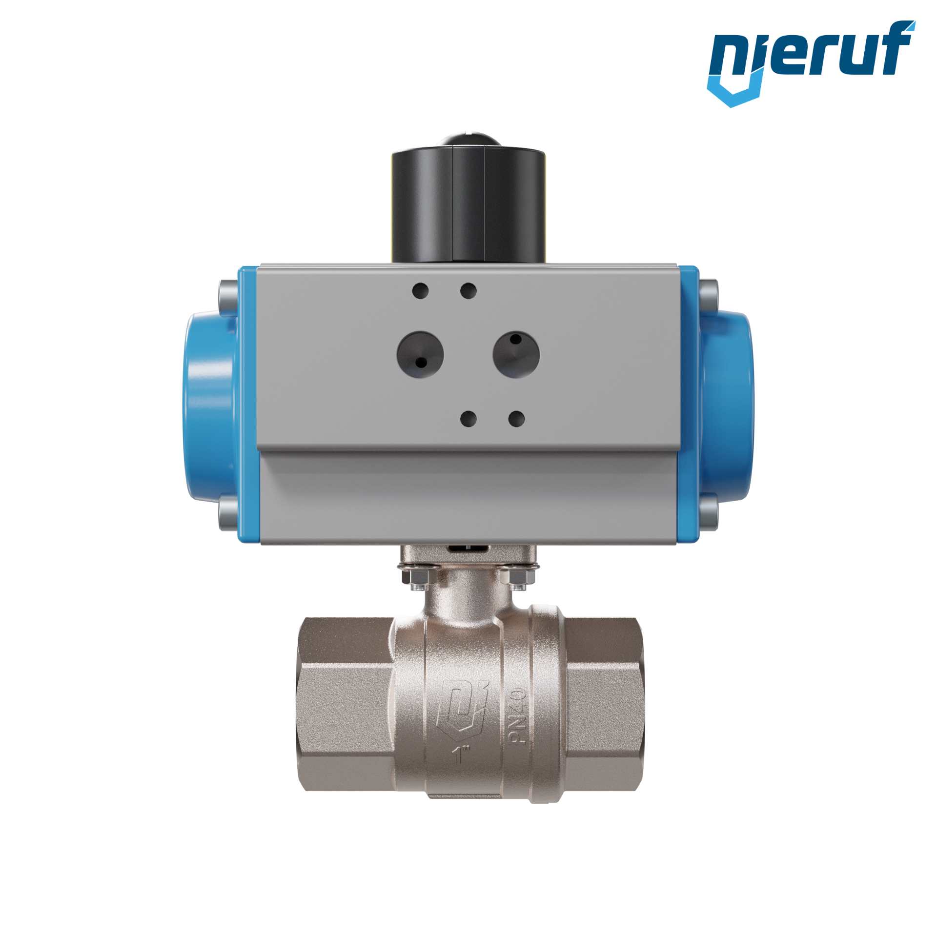 Automatyczny zawór kulowy mufowy DN25 mosiądz CW617N niklowany PK01 pneumatyczny siłownik obrotowy GS052 wykonany z aluminium (funkcja: GS = jednostronnego działania - otwierany sprężyną)