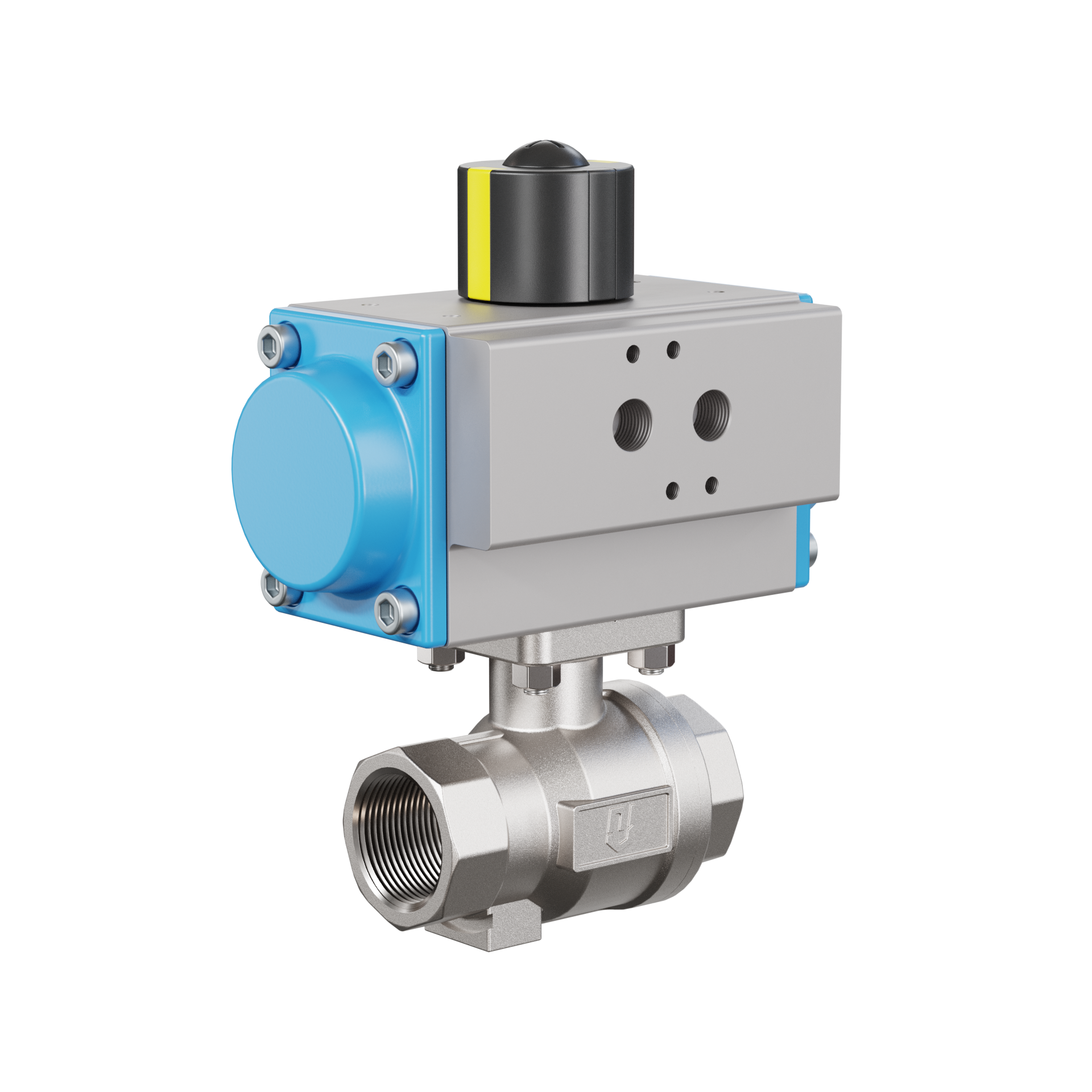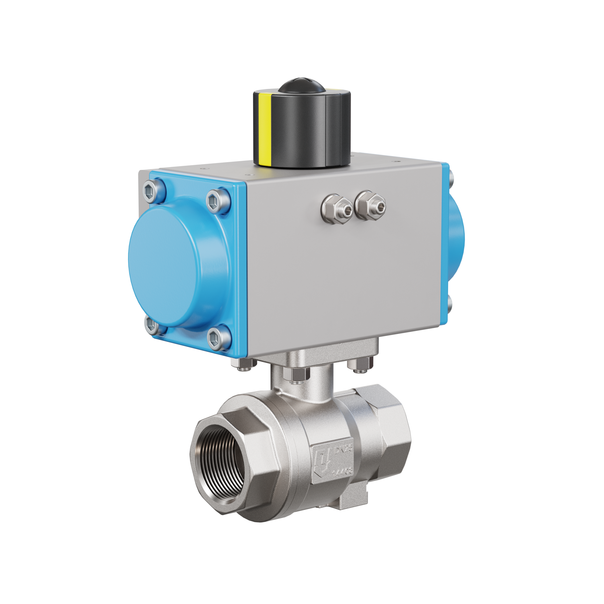 Pneumatyczny zawór kulowy DVGW W DN25 - 1" cal Stal nierdzewna 1.4408 PK02 Pneumatyczny siłownik obrotowy GD052 wykonany z aluminium (tryb pracy: GD = dwustronnego działania)
