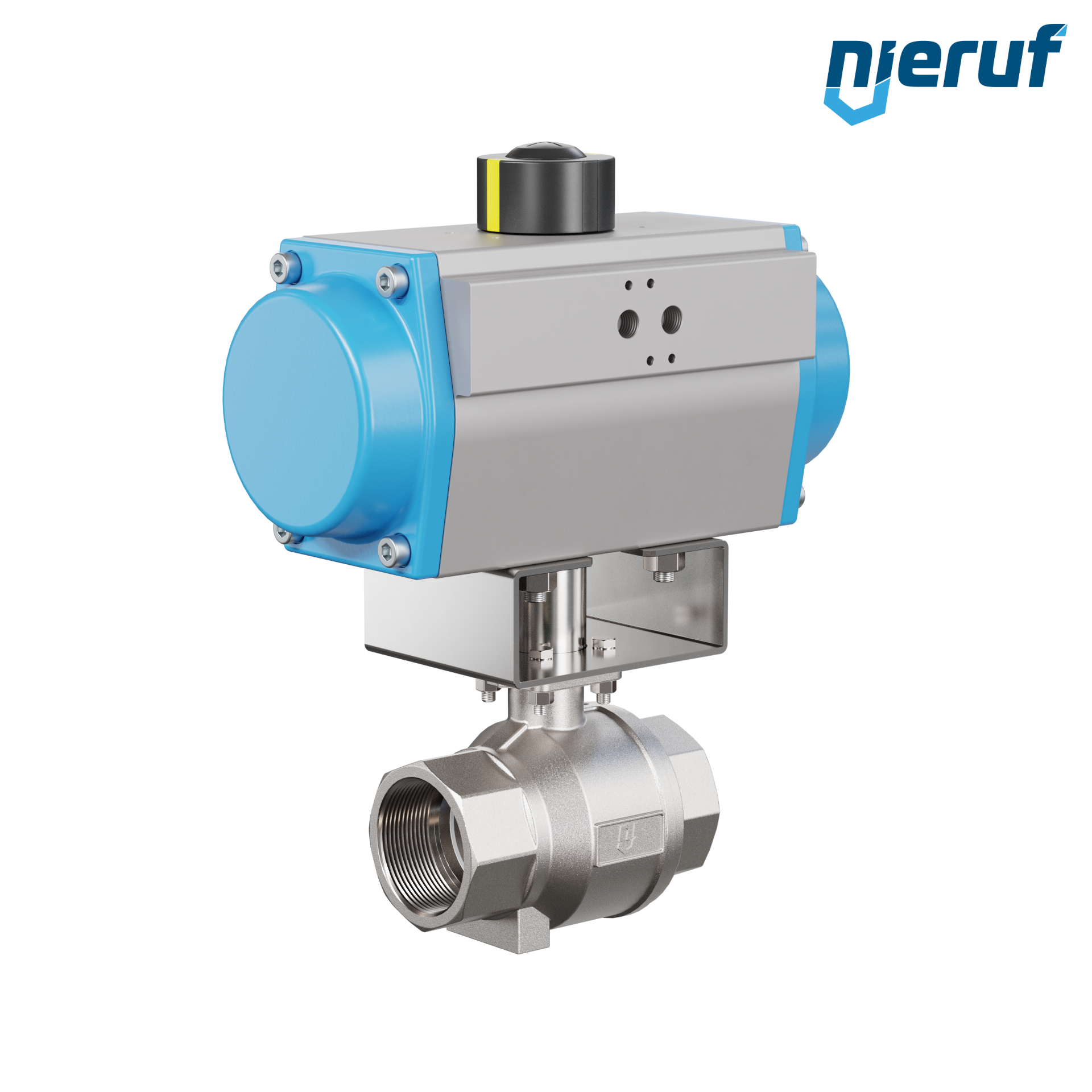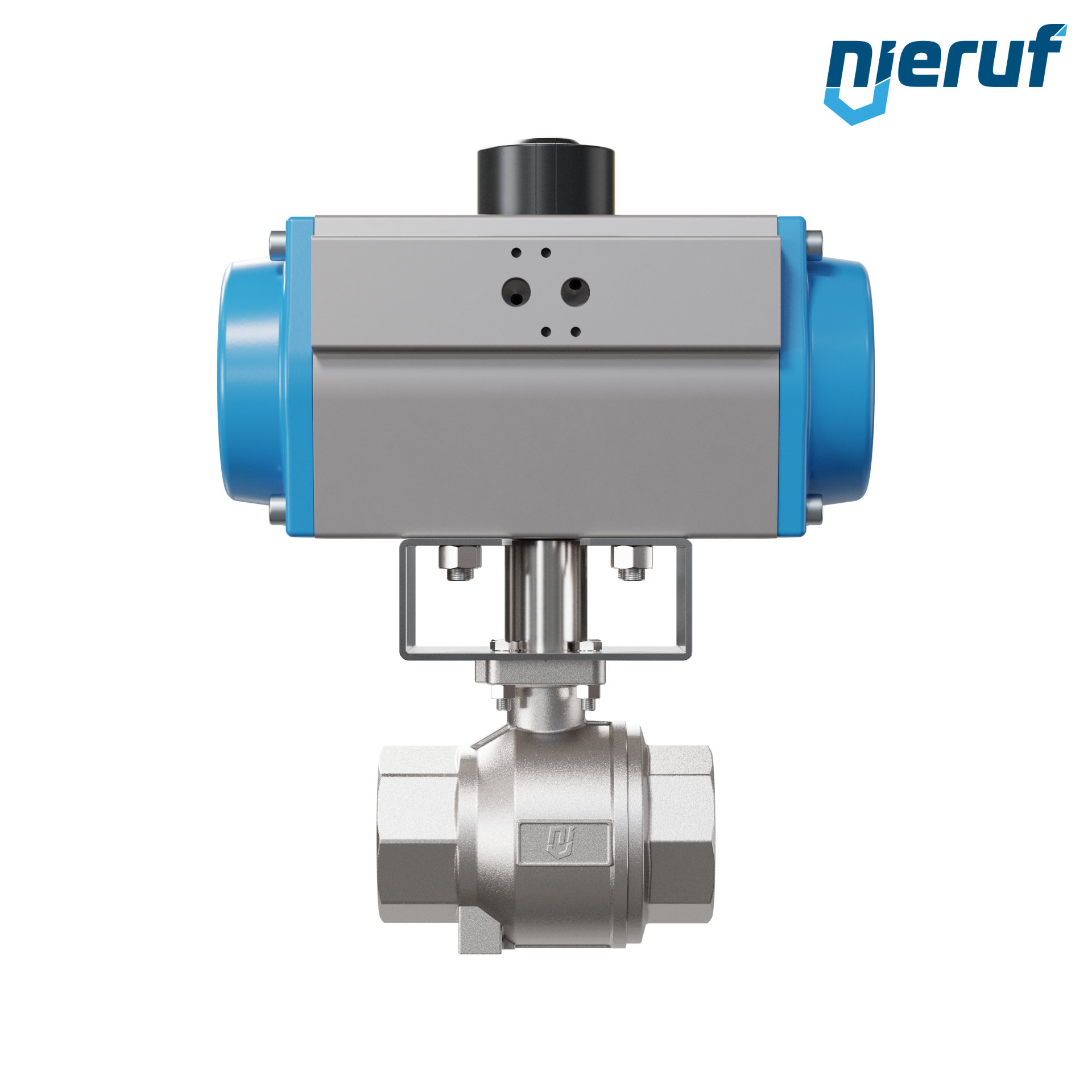 Pneumatyczny zawór kulowy DVGW W DN50 - 2" cale Stal nierdzewna 1.4408 PK02 Pneumatyczny siłownik obrotowy GS105 wykonany z aluminium (tryb pracy: GS = jednostronnego działania - otwierany sprężyną) otwierany sprężyną