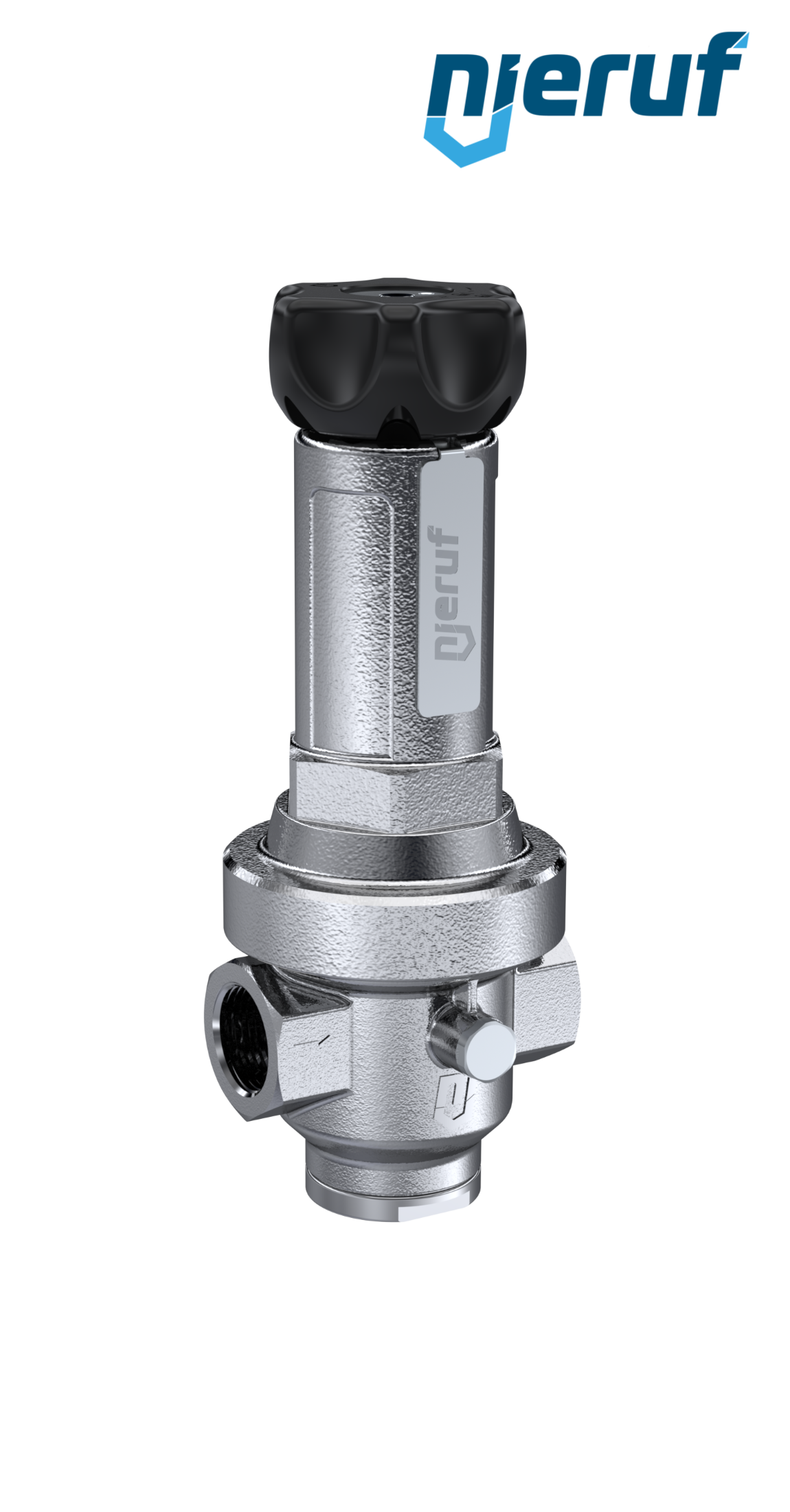 Membranowy precyzyjny reduktor ciśnienia bez wtórnego odpowietrzenia. Regulacja ciśnienia za pomocą niewznoszącego się trzpienia i zintegrowanego przyłącza manometru 1/4" cala.