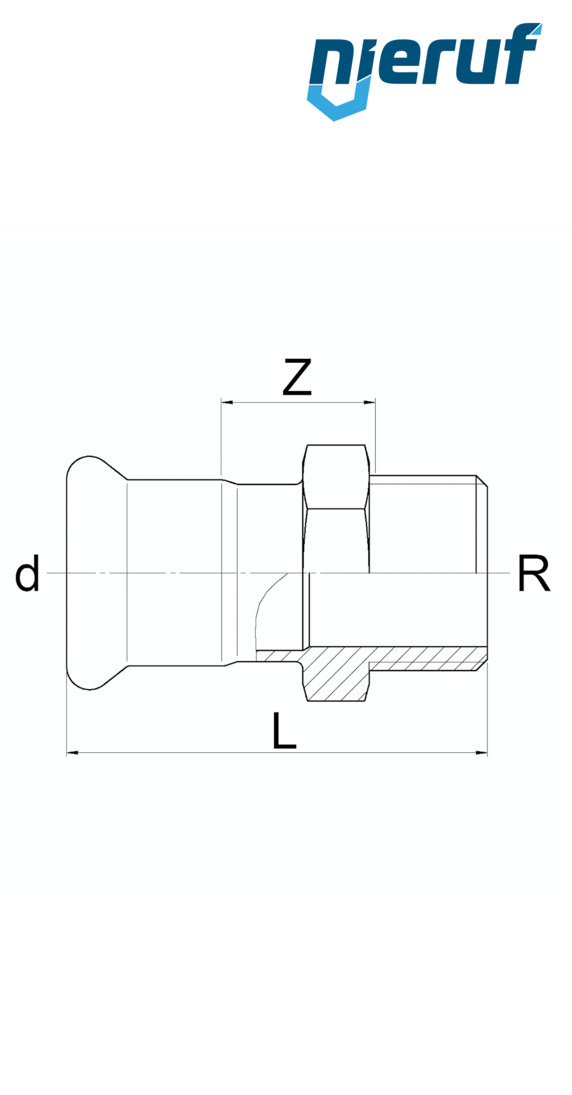 Przejściówka PF01-05-00 z przyłączem zaciskanym W DN12 - 15,0 mm, Gwint zewnętrzny 3/4" cala ze stali nierdzewnej do płynnych i gazowych mediów