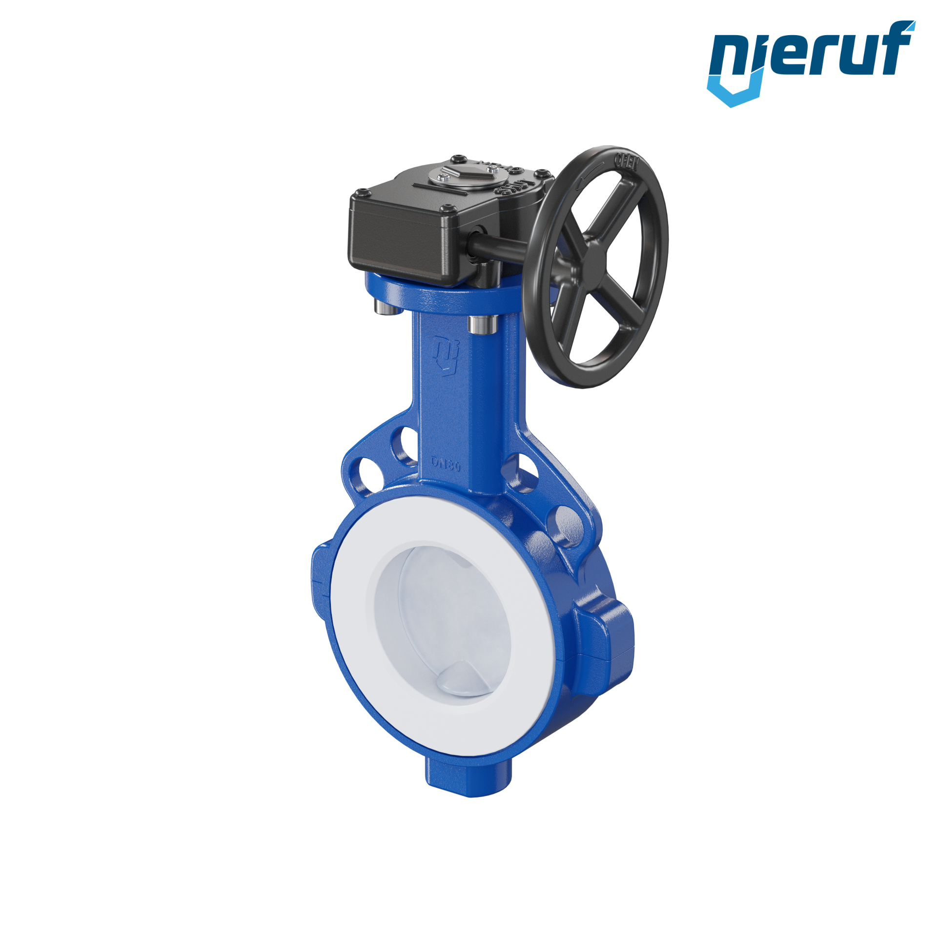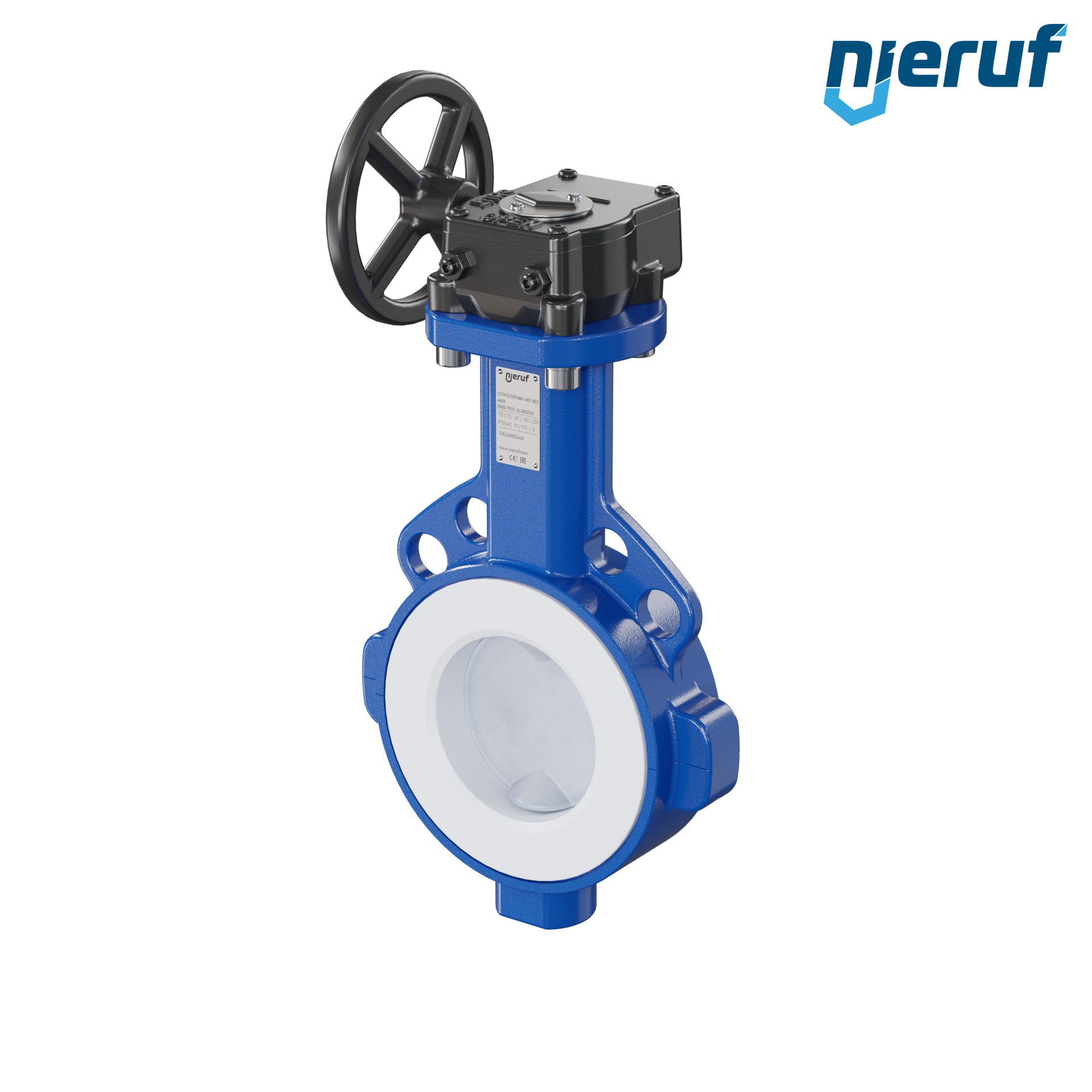 Przepustnica PTFE AK09 DN80 PN10-PN16 przekładnia ślimakowa wkladka FKM