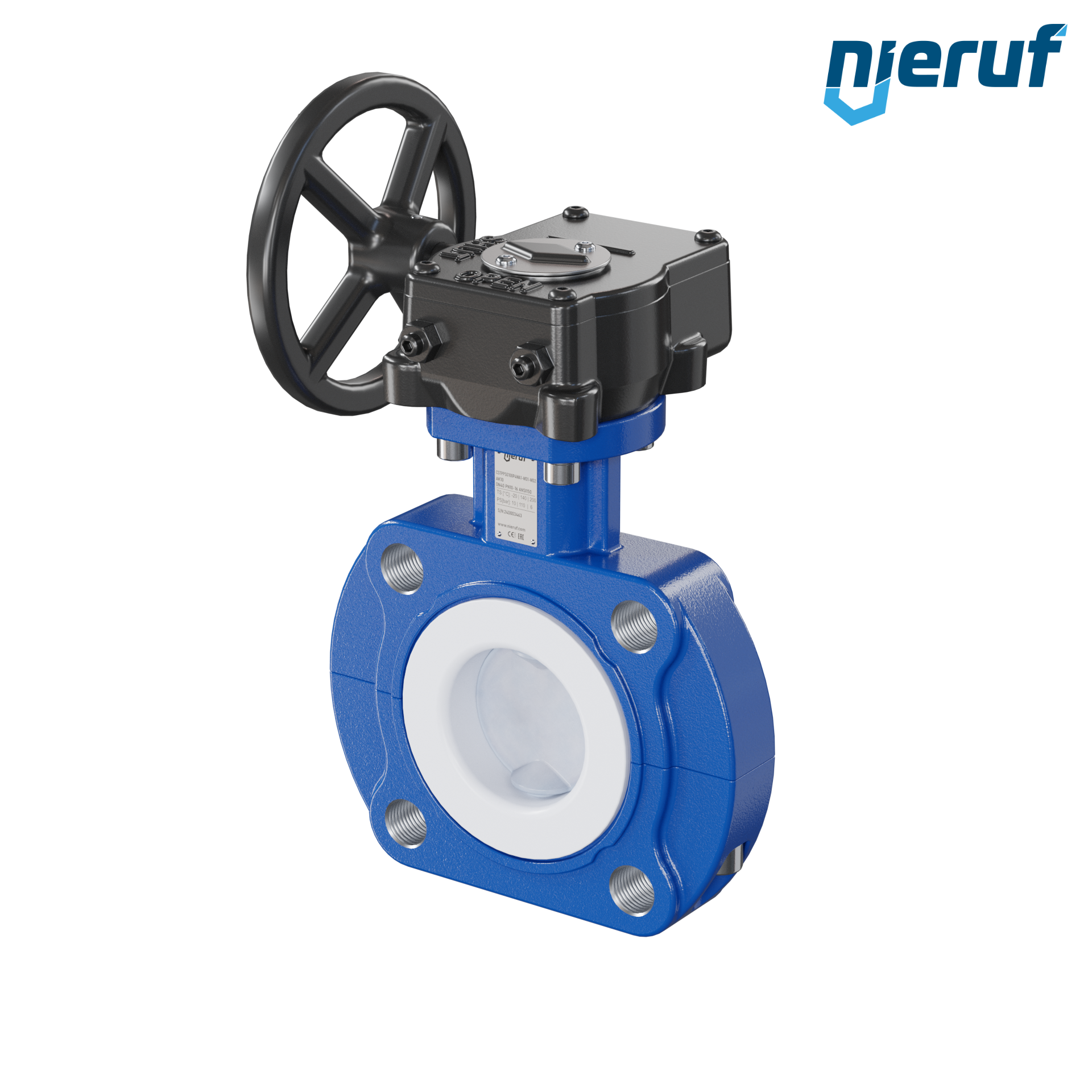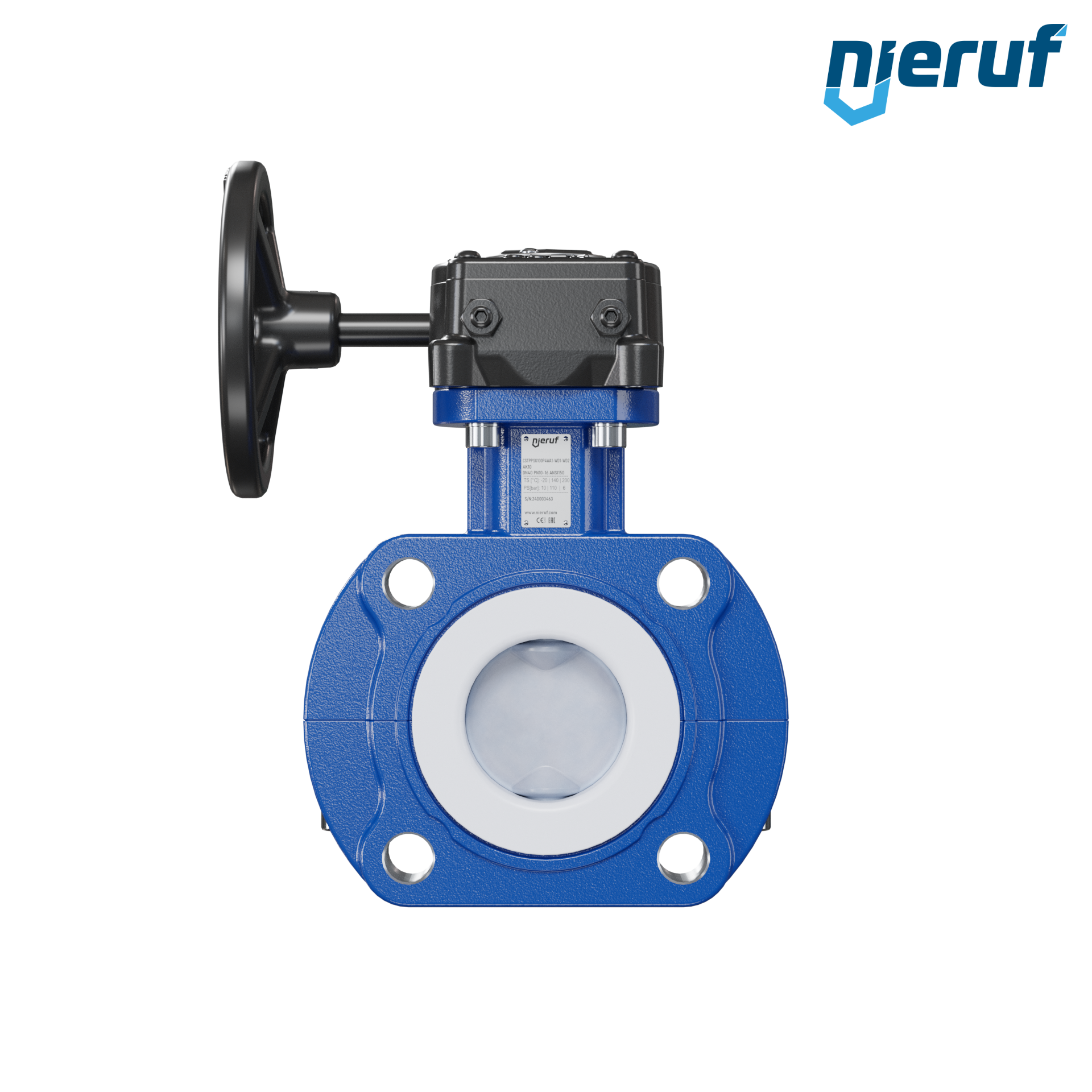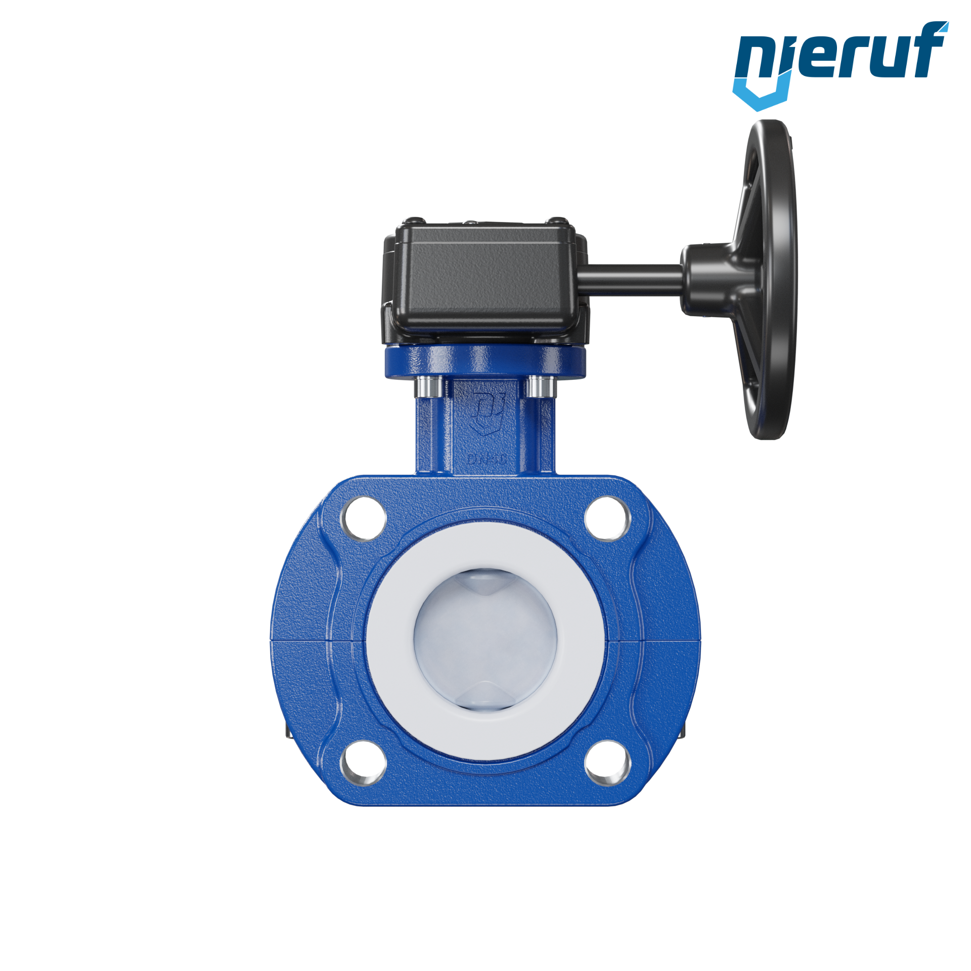 Przepustnica PTFE AK10 DN40 PN10-PN16 przekładnia ślimakowa wkladka FKM
