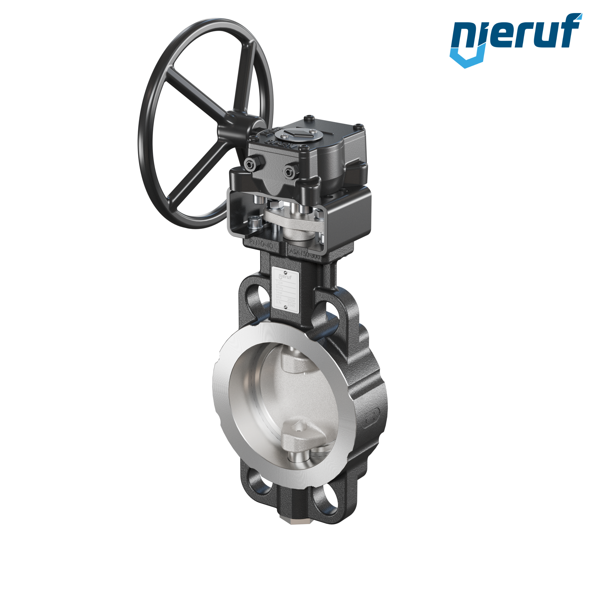 Podwójnie mimośrodowe przepustnice otwory centrujące AK11 DN 100 PN10-PN16-PN25-PN40 & ANSI150-ANSI300 z korpusem ze staliwa max. 50 bar przekładnia ślimakowa