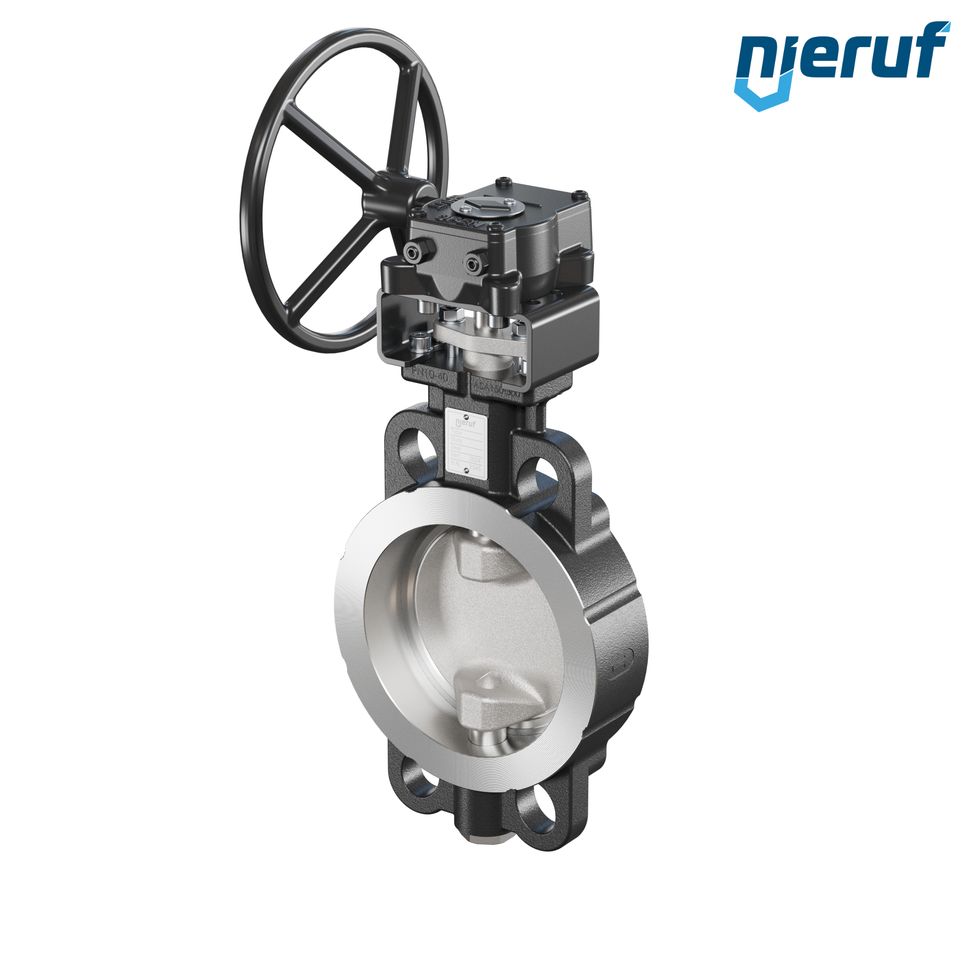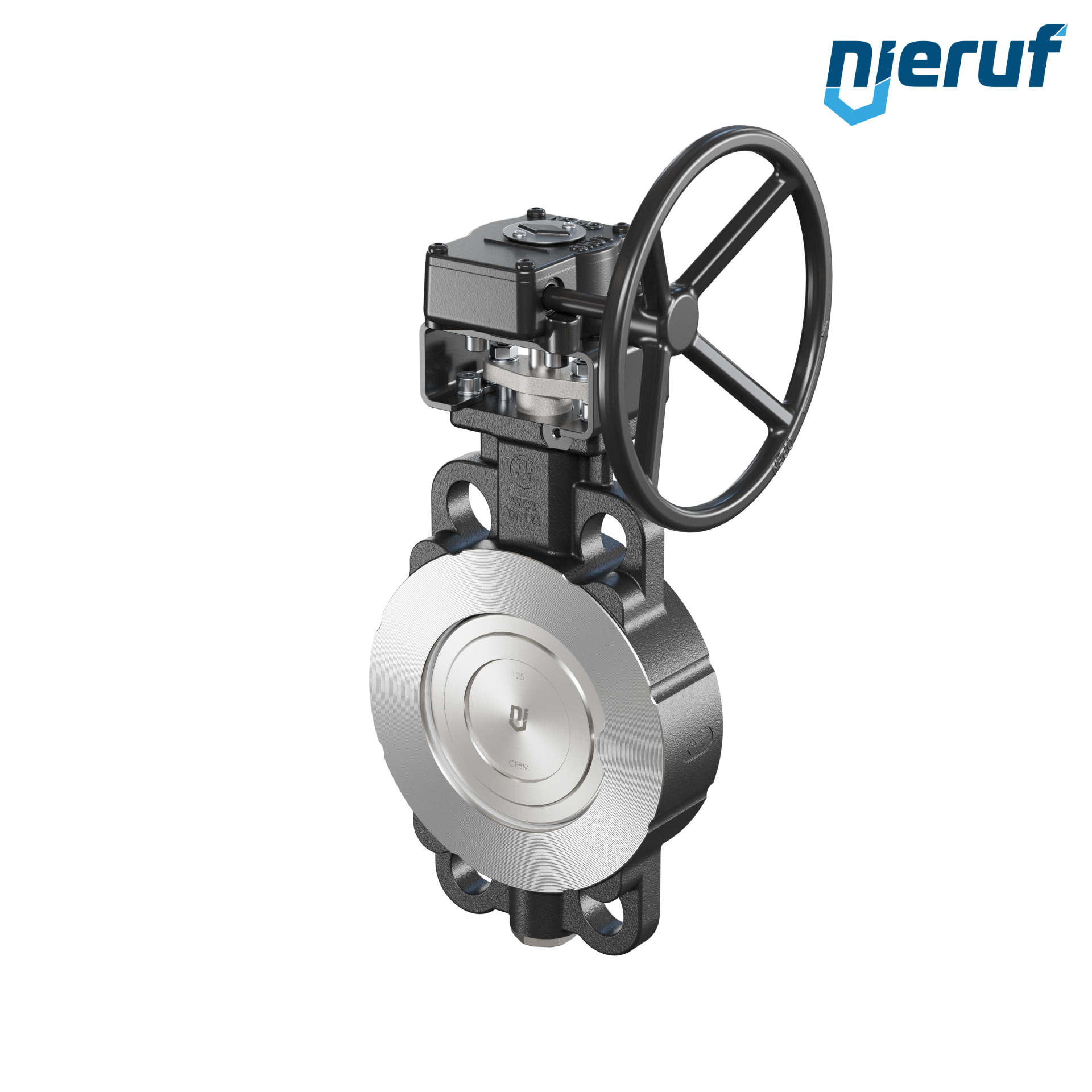 Podwójnie mimośrodowe przepustnice otwory centrujące AK11 DN 125 PN10-PN16-PN25-PN40 & ANSI150-ANSI300 z korpusem ze staliwa max. 40 bar przekładnia ślimakowa