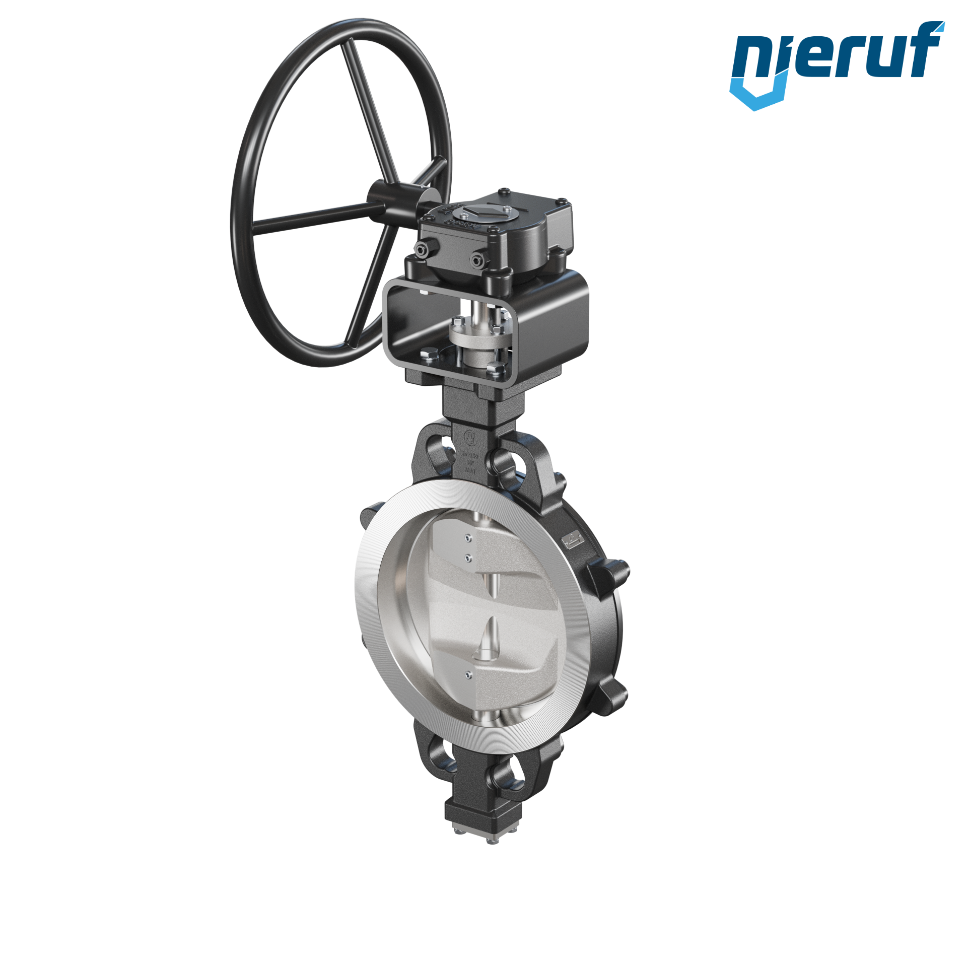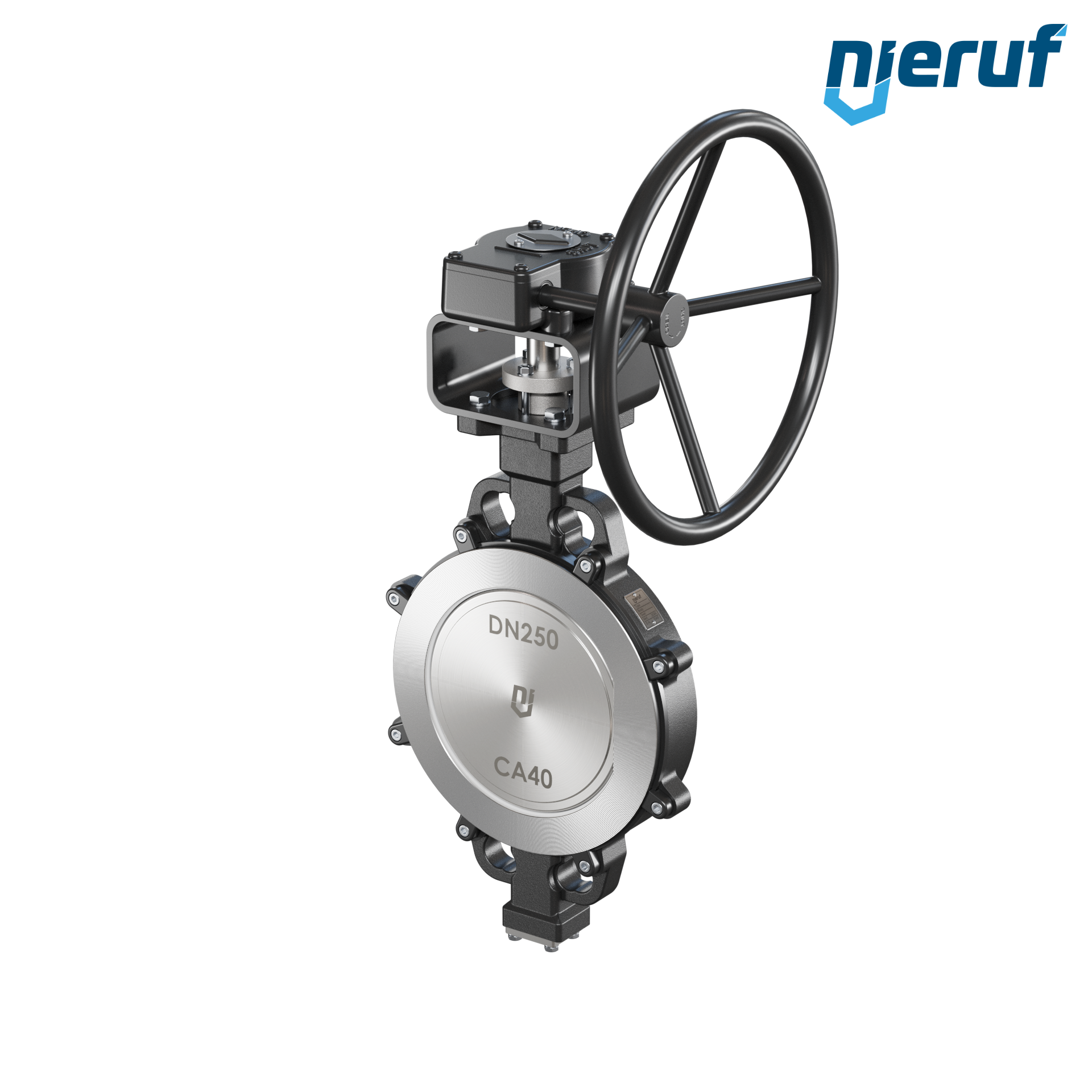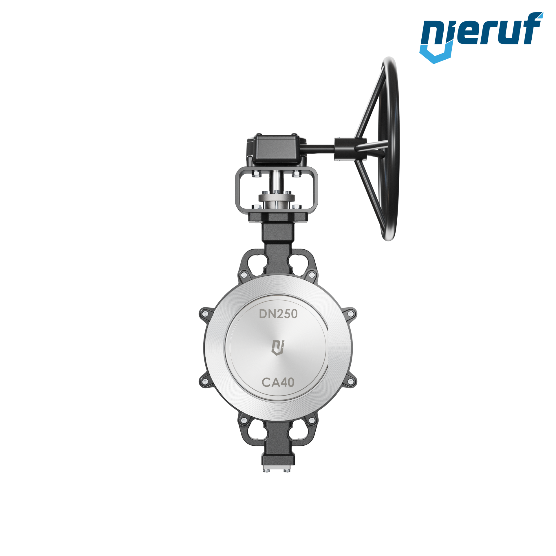 Podwójnie mimośrodowe przepustnice otwory centrujące AK11 DN 250 PN10-PN16-PN25-PN40 & ANSI150-ANSI300 z korpusem ze staliwa max. 25 bar przekładnia ślimakowa