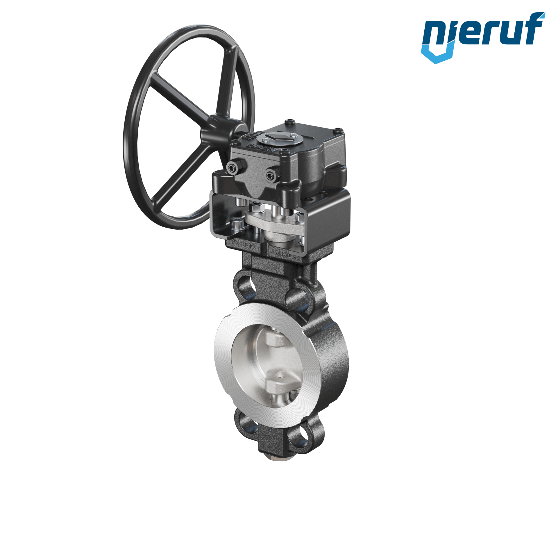 Podwójnie mimośrodowe przepustnice otwory centrujące AK11 DN 65 PN10-PN16-PN25-PN40 & ANSI150-ANSI300 z korpusem ze staliwa max. 50 bar przekładnia ślimakowa