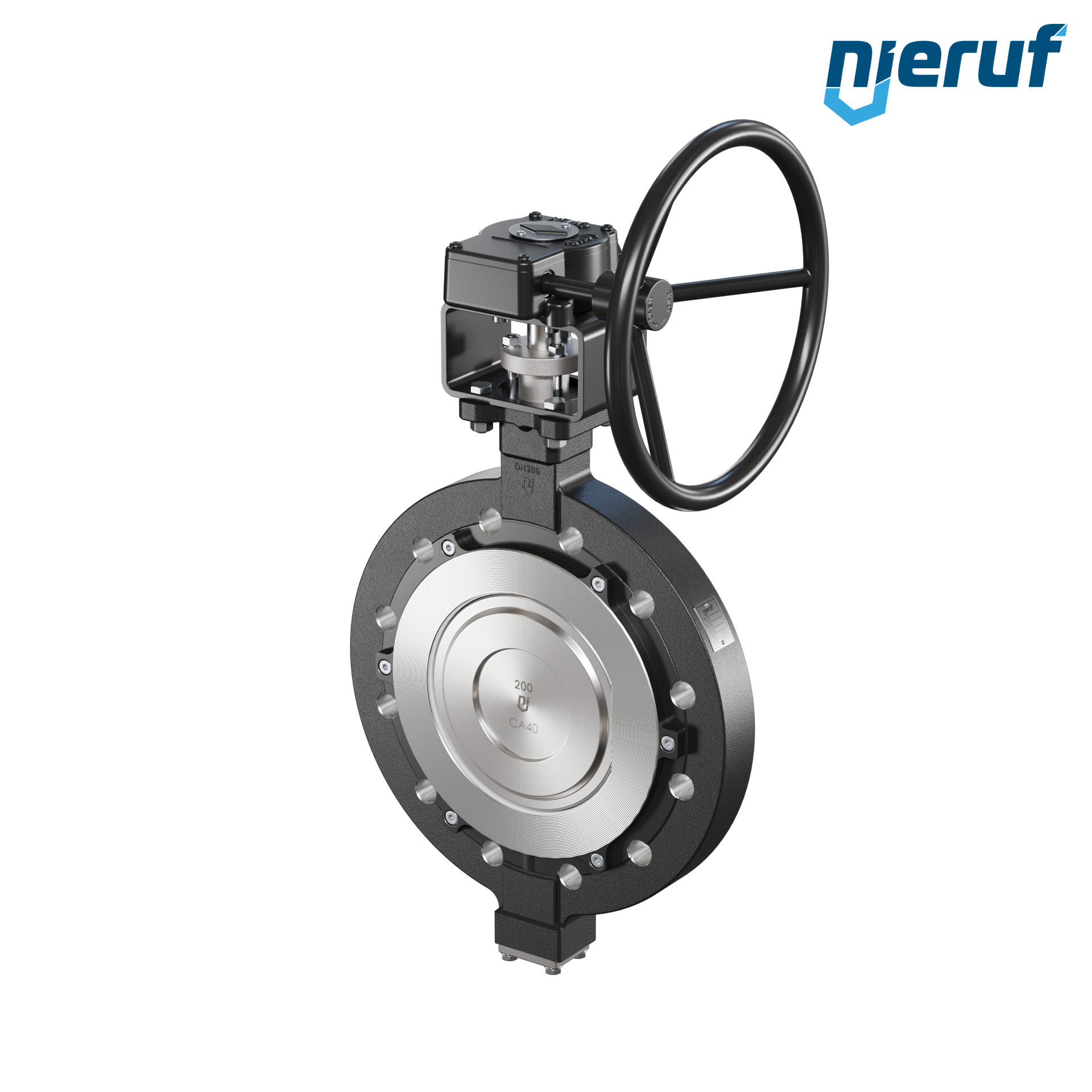 Podwójnie mimośrodowa Przepustnica AK12 DN 200 PN25 przekładnia ślimakowa