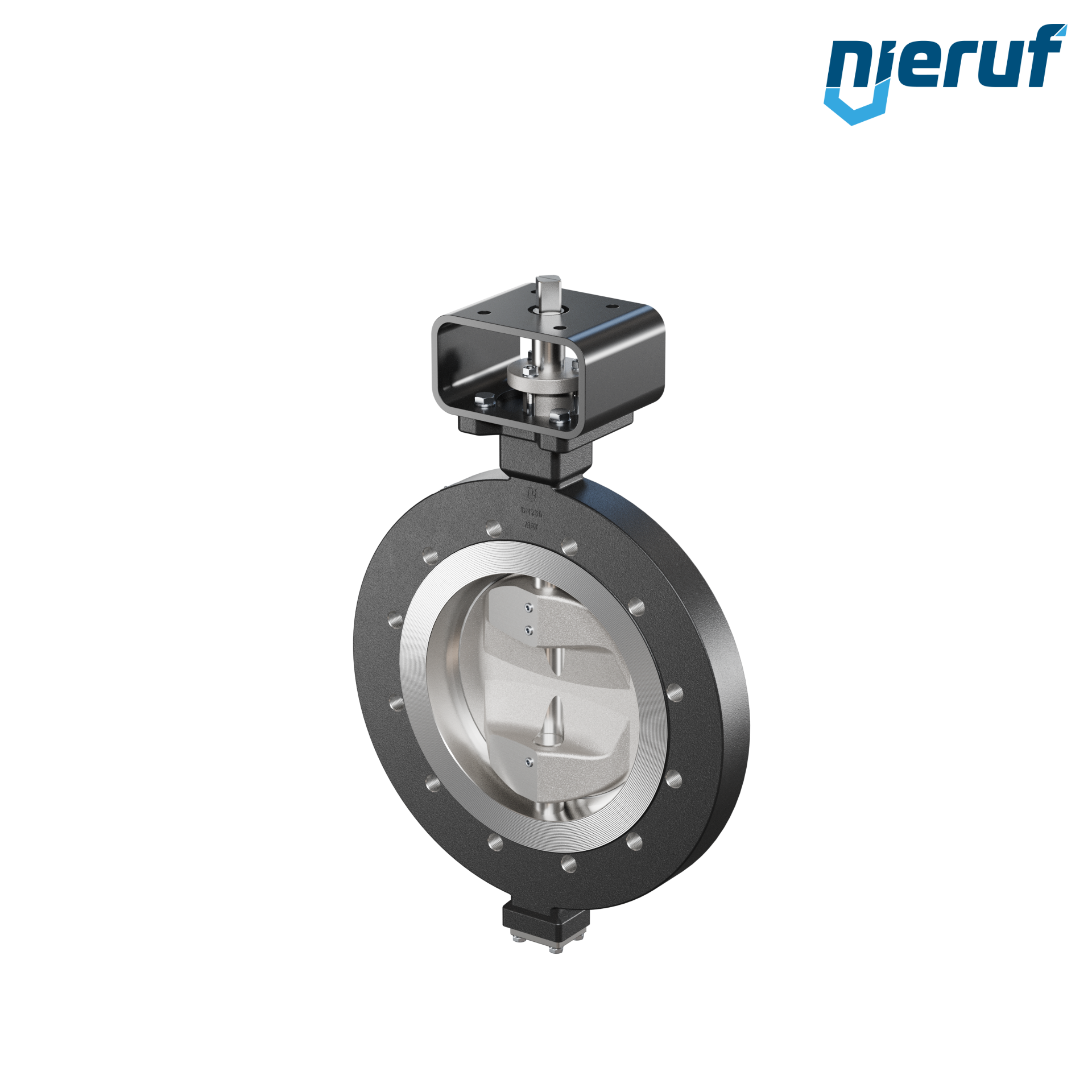 Podwójnie mimośrodowe przepustnice otwory gwintowane AK12 DN 250 PN10 z korpusem ze staliwa max. 25 bar Wolny koniec wału