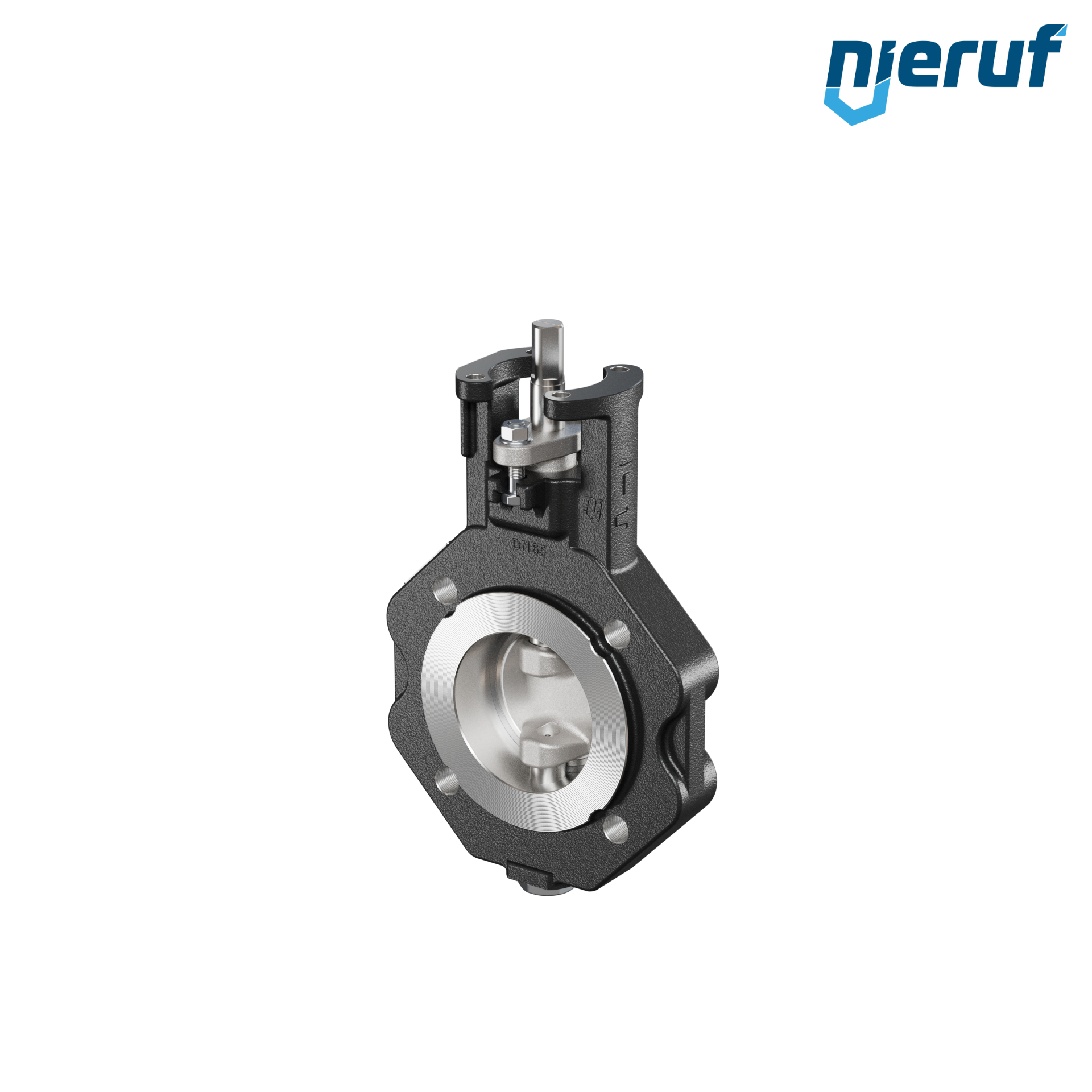Zawory motylkowe z podwójnym mimośrodem LUG AK12 DN 65 PN10-PN16-PN25-PN40 z korpusem ze staliwa max. 50 bar Wolny koniec wału