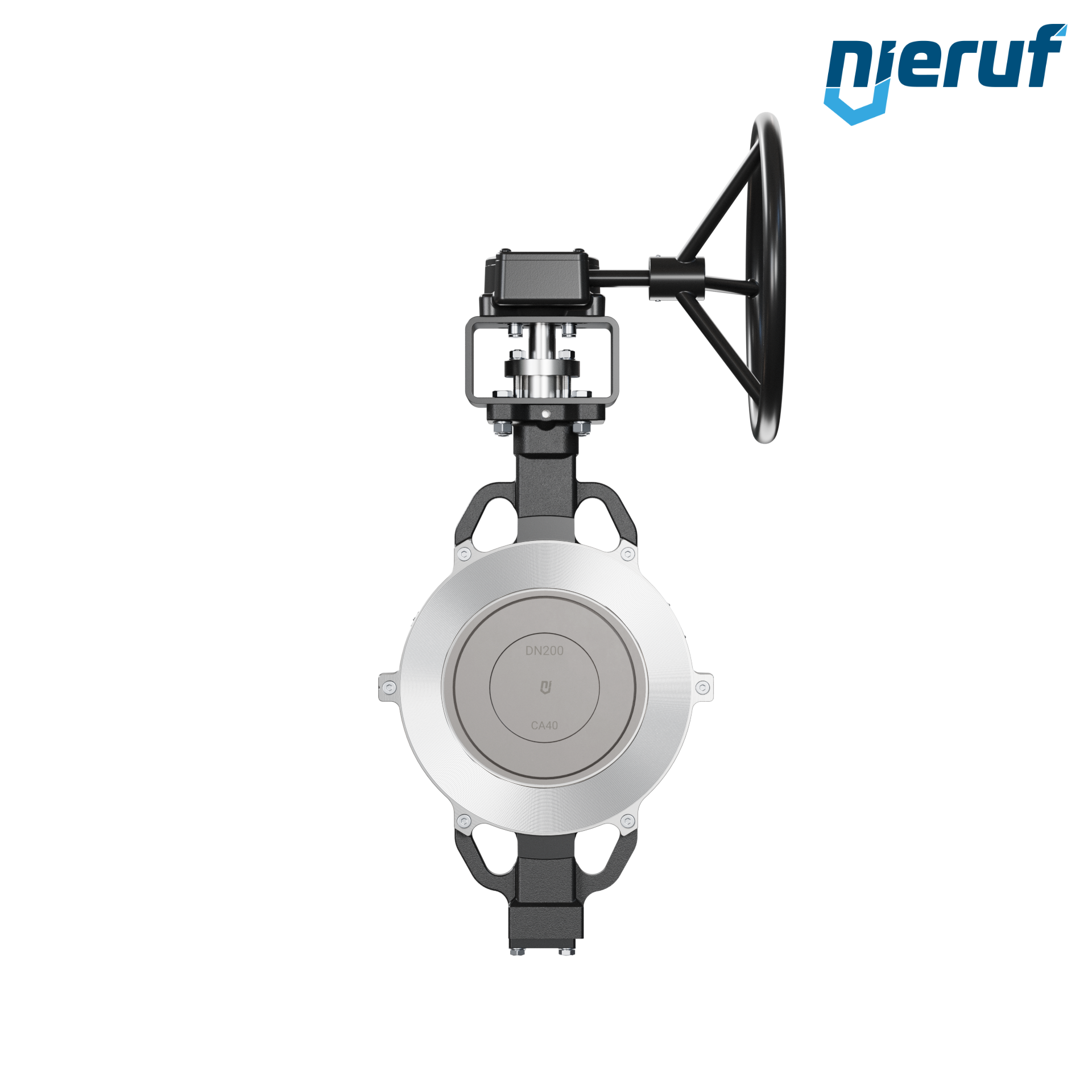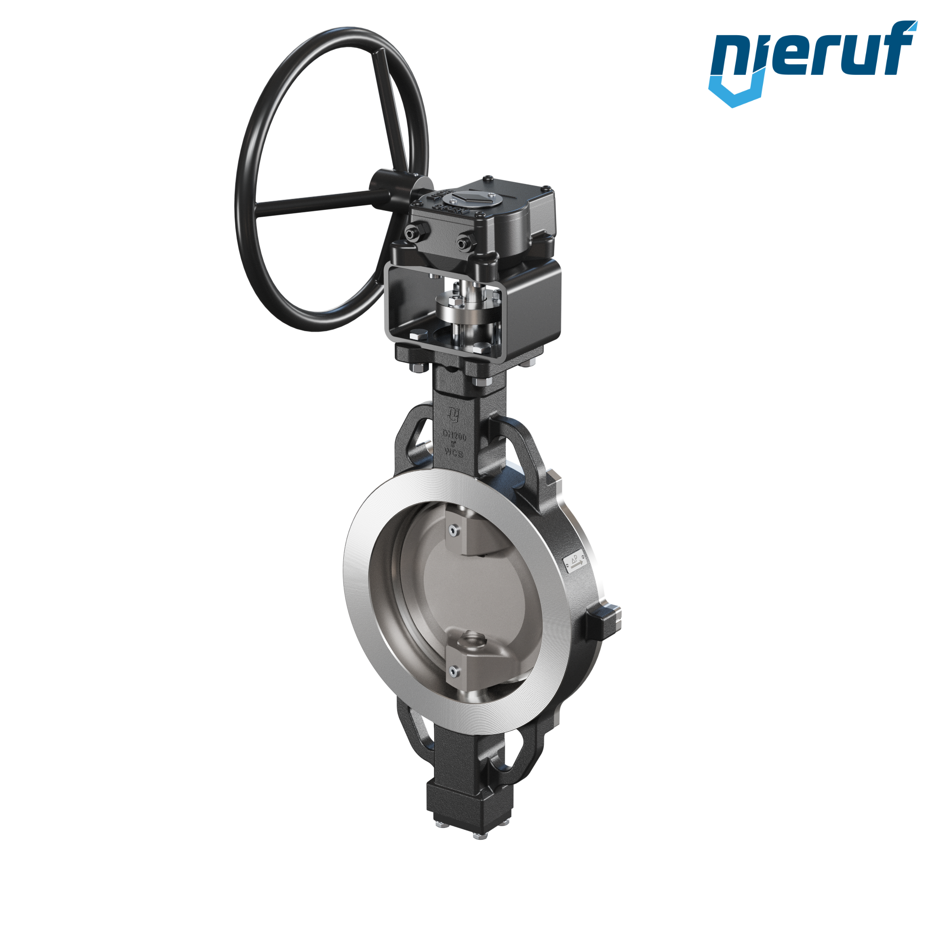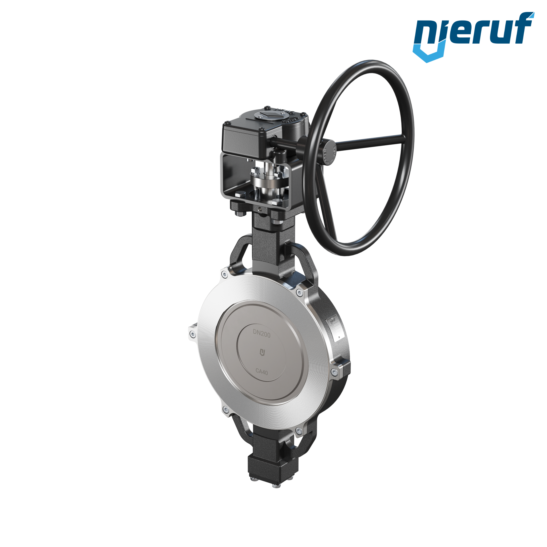 Przepustnice z potrójnym mimośrodem otwory centrujące AK13 DN 200 PN10-PN16-PN25-PN40 & ANSI150-ANSI300 z korpusem ze staliwa max. 40 bar przekładnia ślimakowa