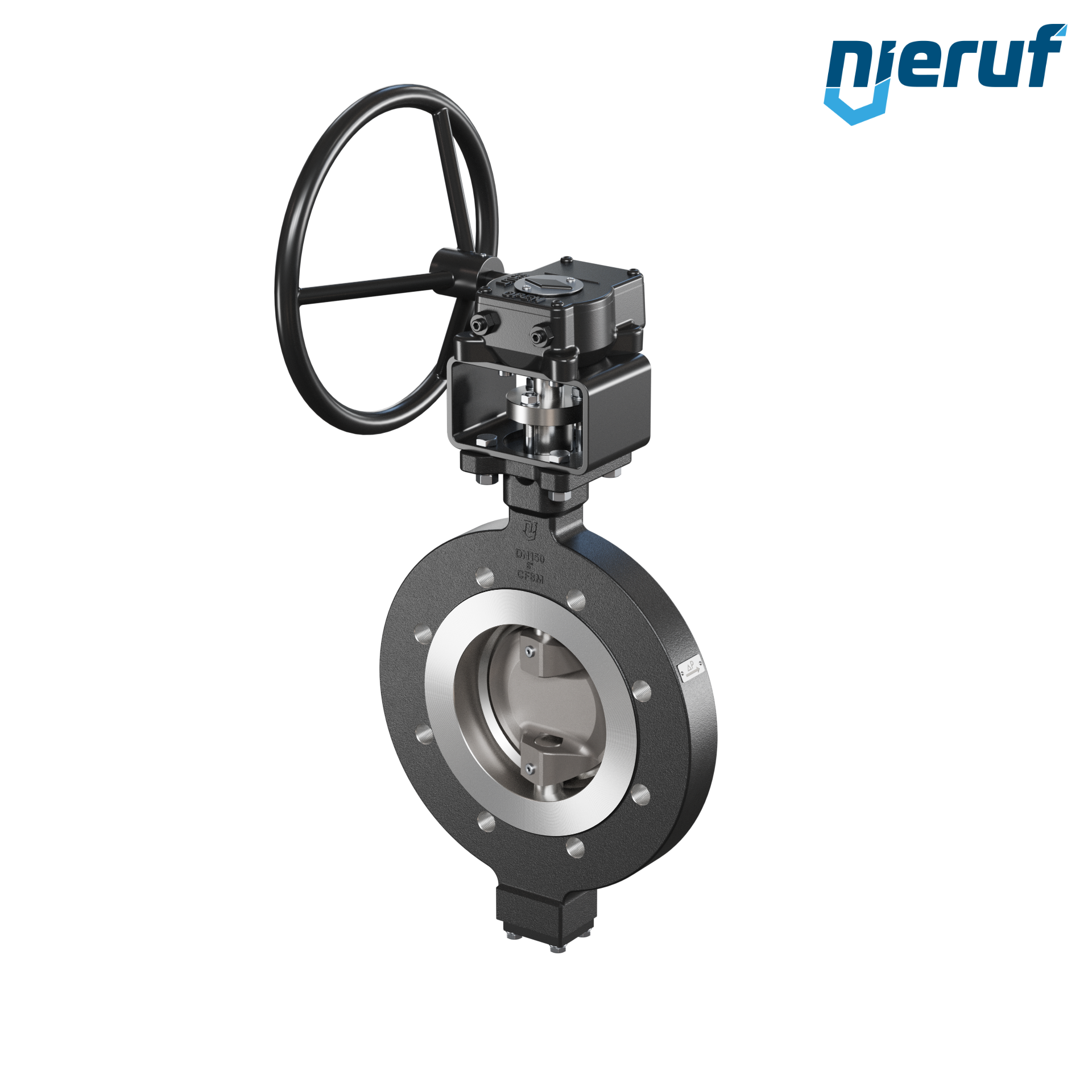 Potrójnie mimośrodowa Przepustnica Staliwo AK14 DN 150 PN10-16 przekładnia ślimakowa