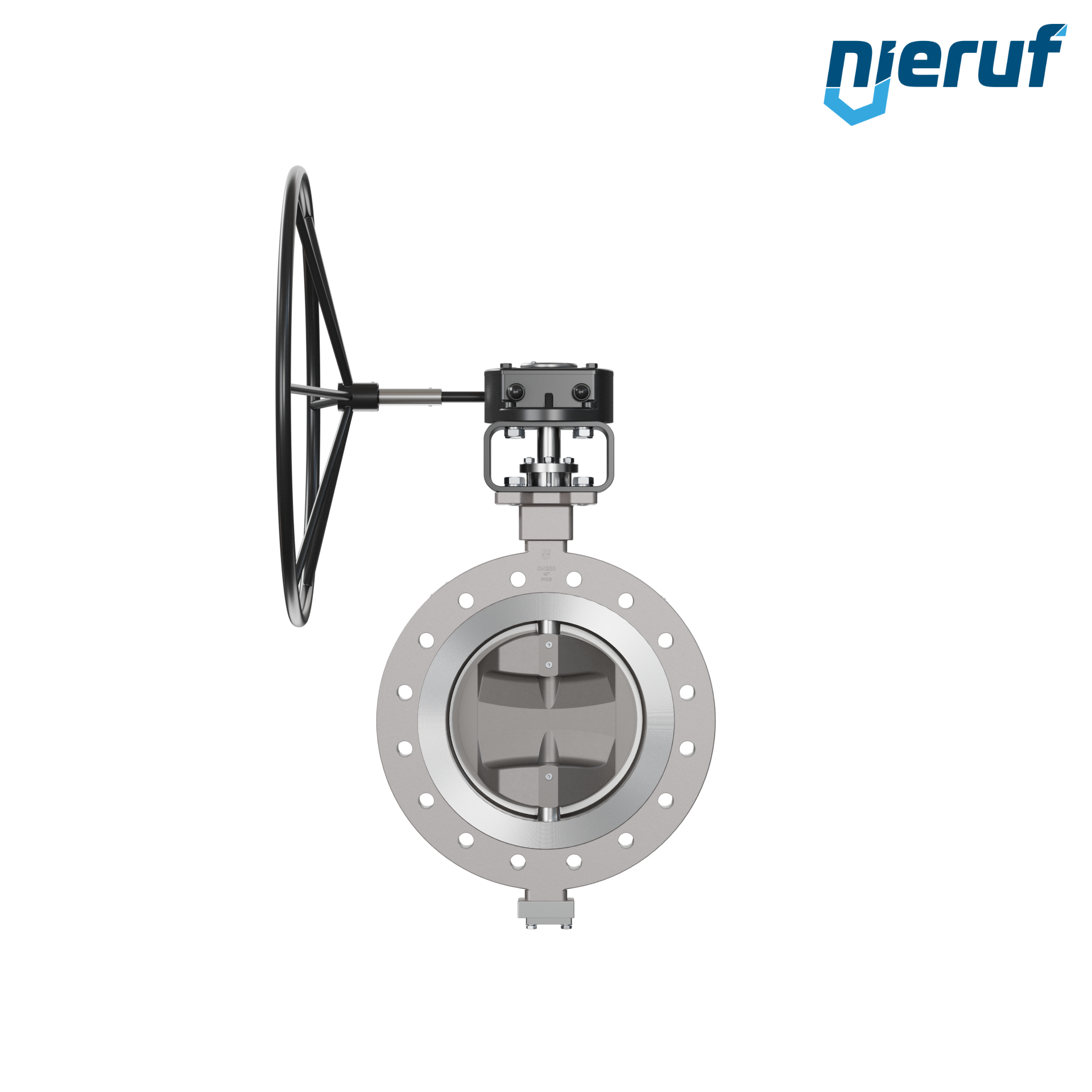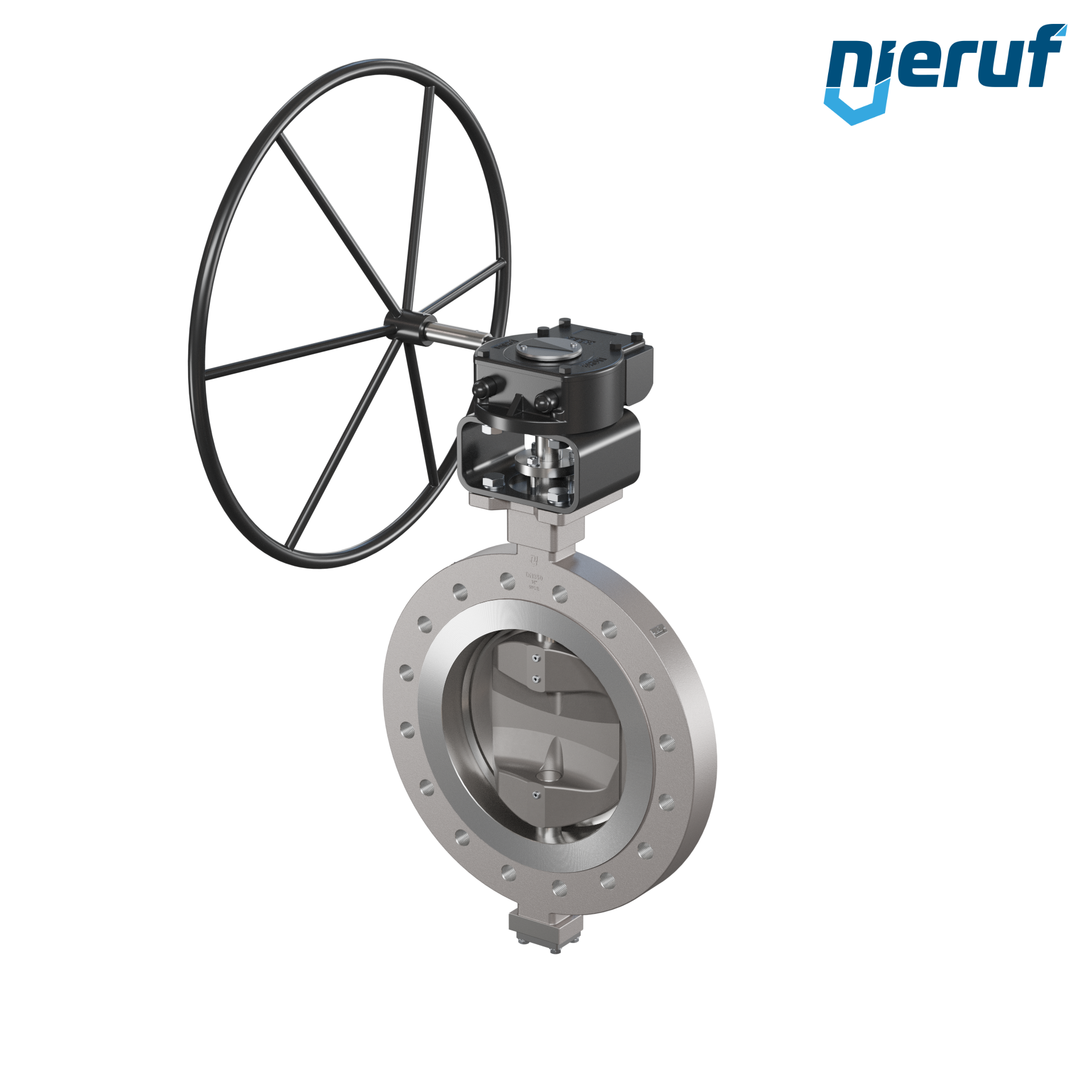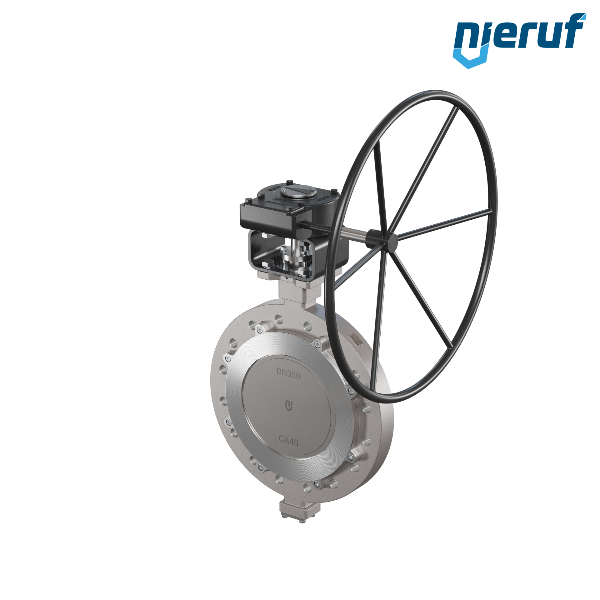 Przepustnice z potrójnym mimośrodem otwory gwintowane AK14 DN 350 PN25 z korpusem ze stali nierdzewnej max. 25 bar przekładnia ślimakowa