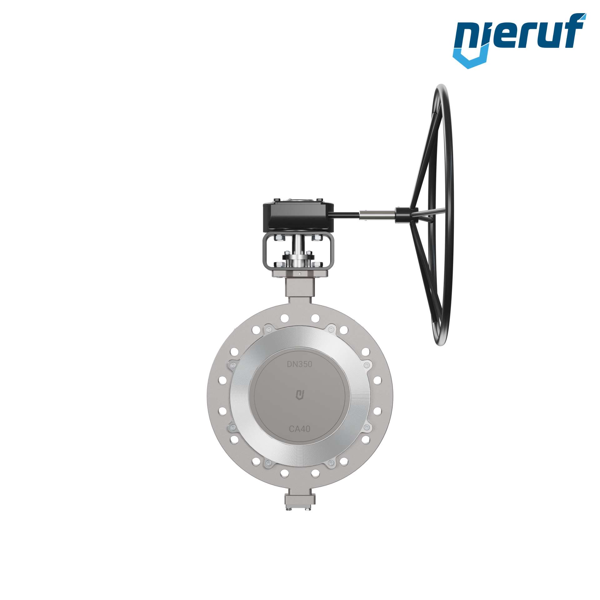 Potrójnie mimośrodowa Przepustnica stal nierdzewna AK14 DN 350 PN25 przekładnia ślimakowa