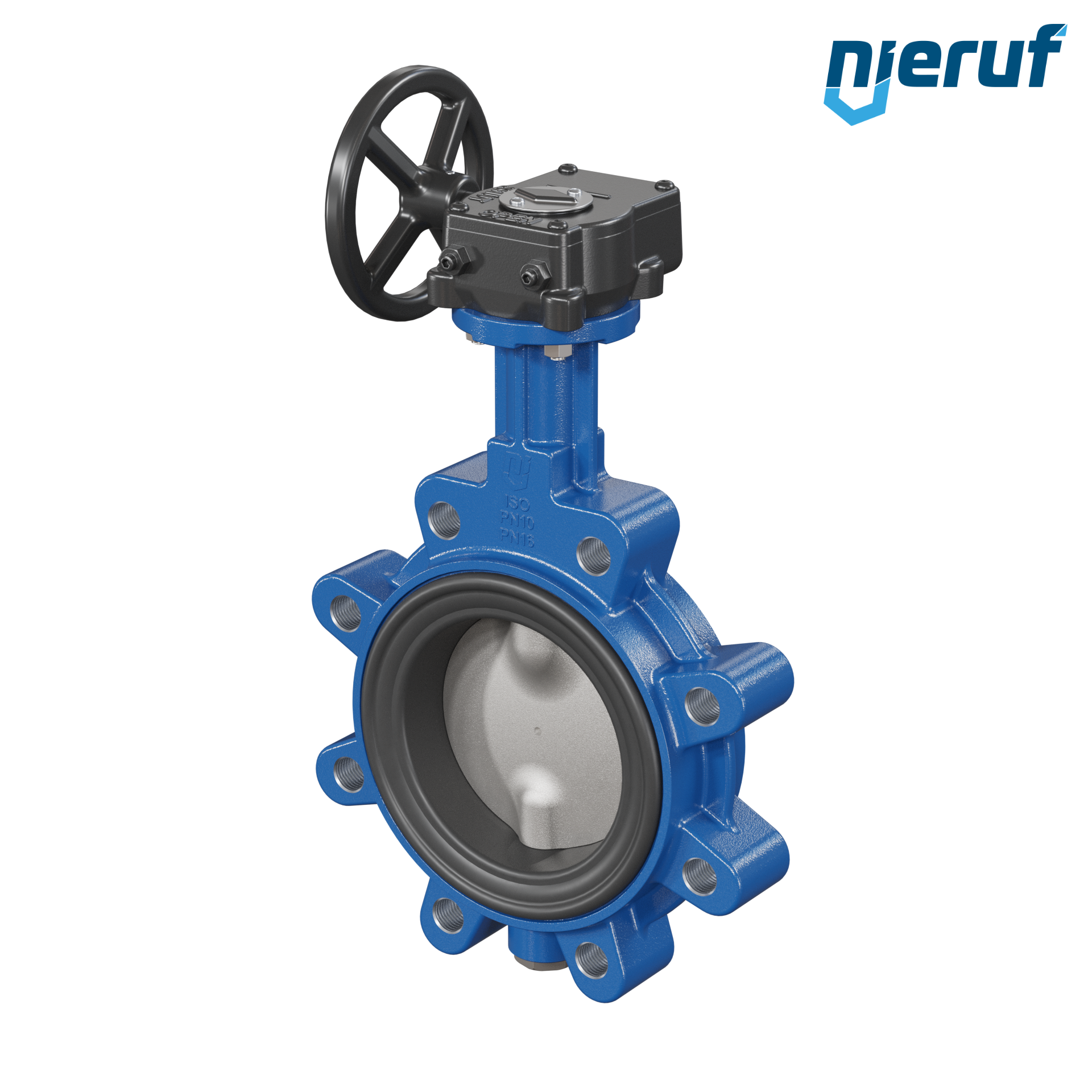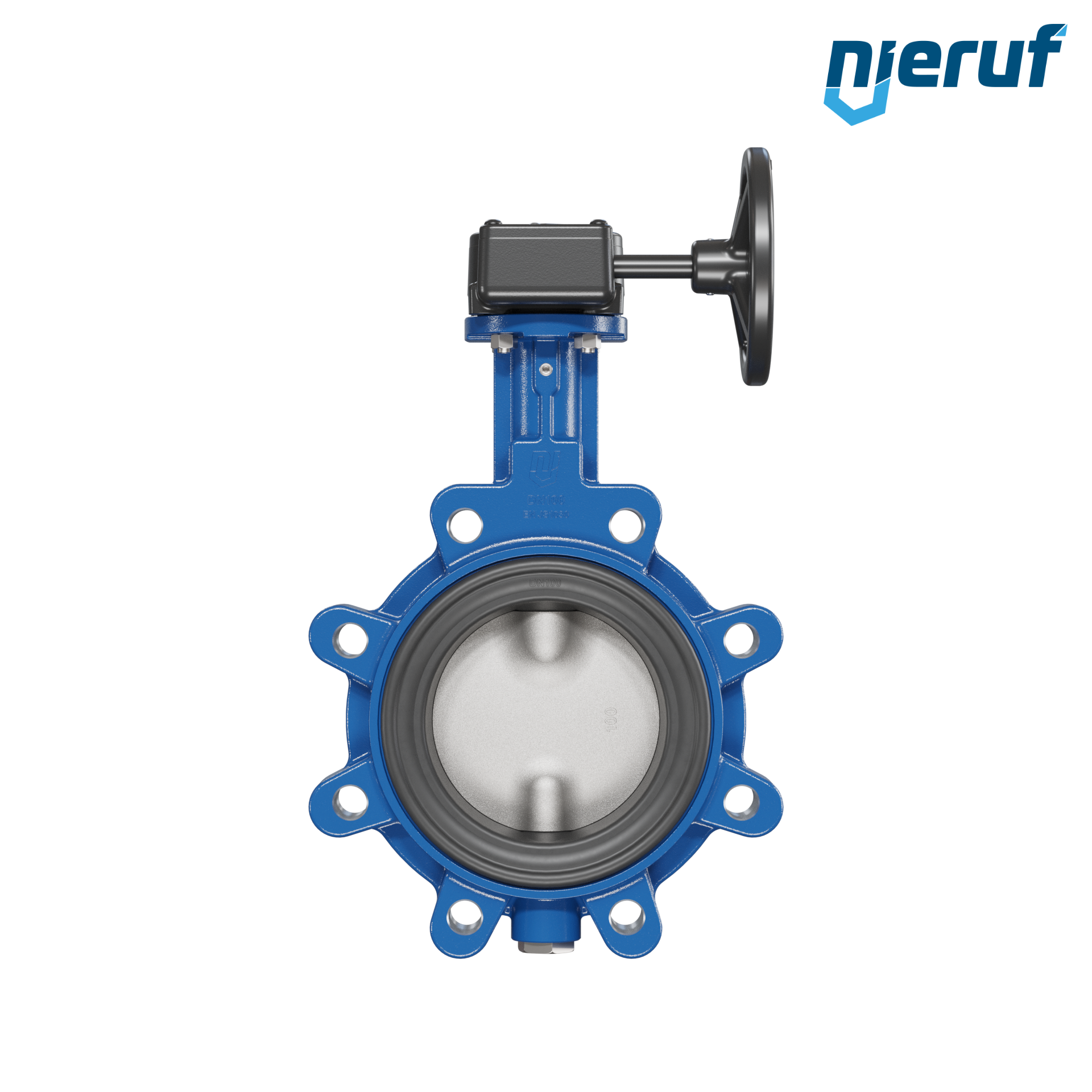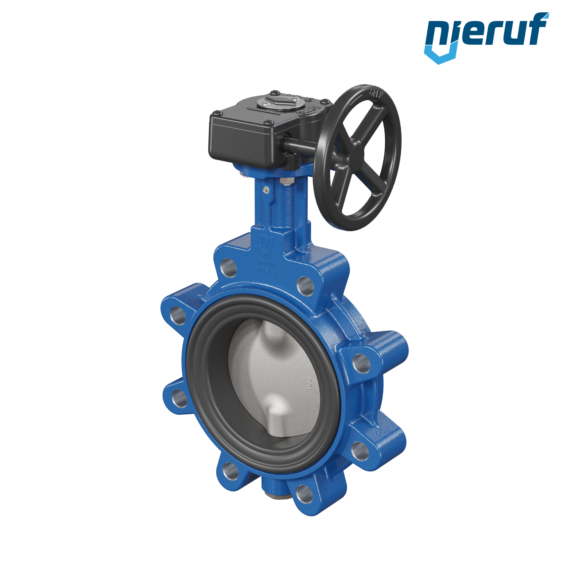 Przepustnica DN 100 PN10-PN16 dokołnierzowa/Lug korpus z żeliwa sferoidalnego z przekładnią ślimakową NBR-70-czarny DVGW Gaz