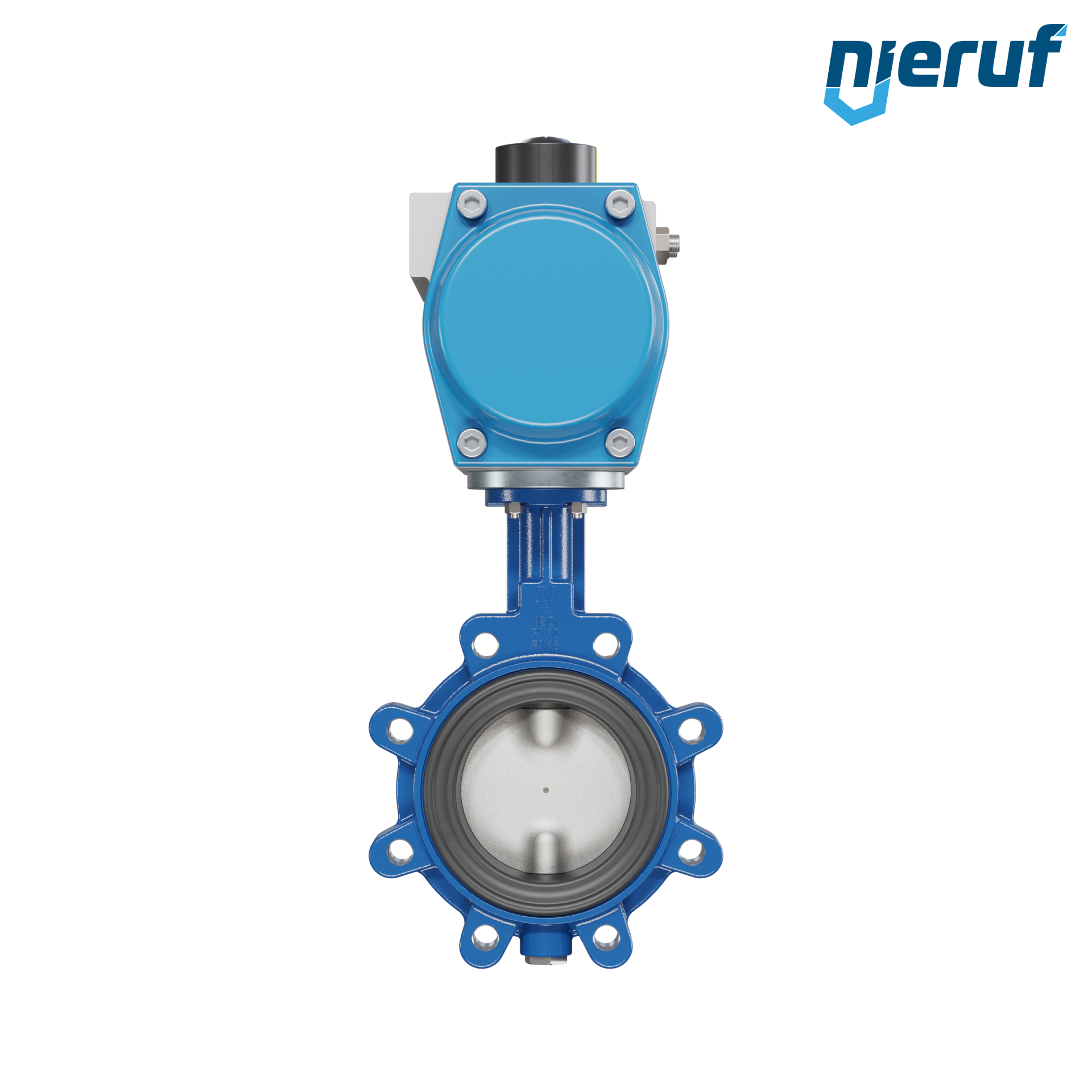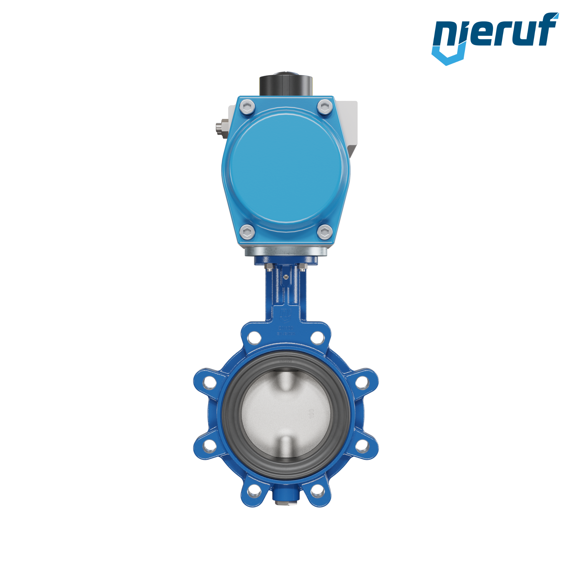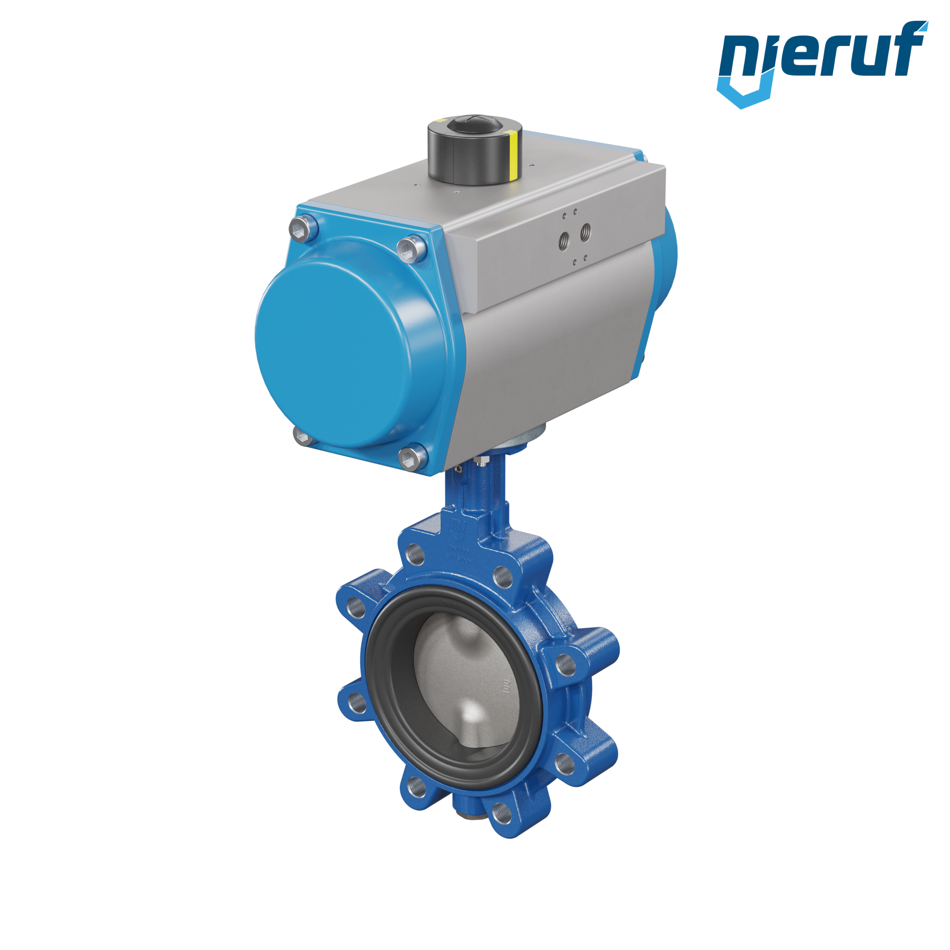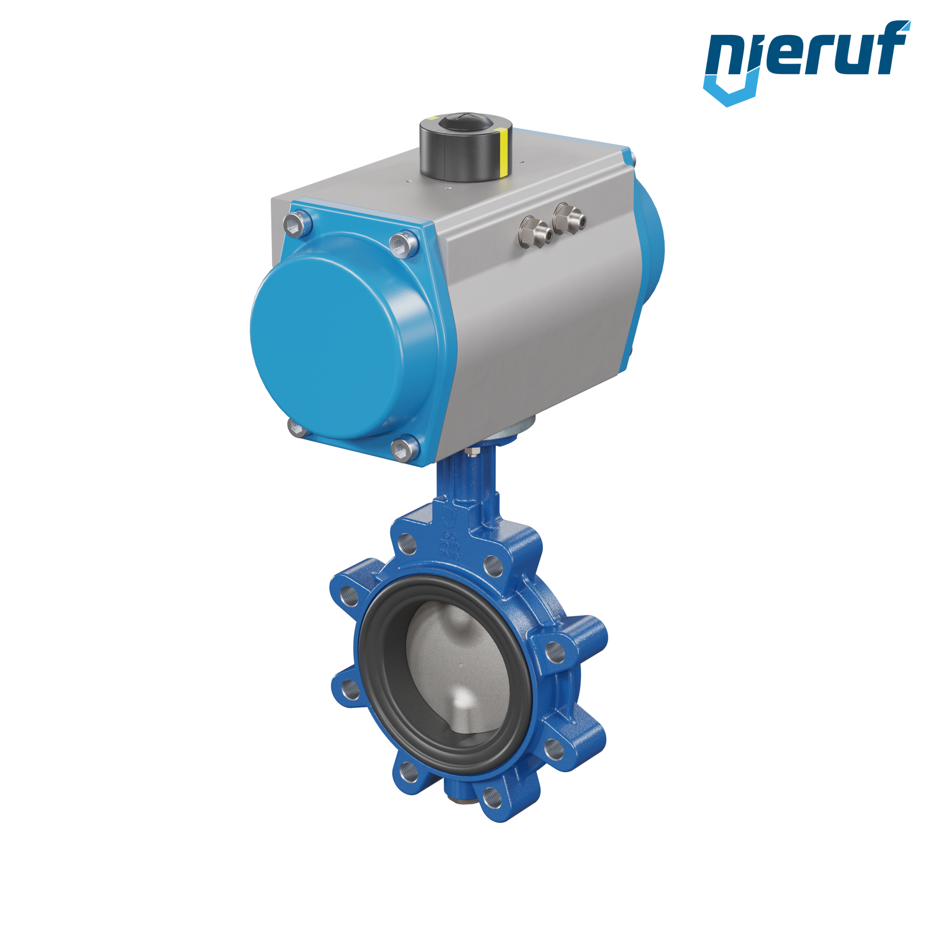 Przepustnica DN 100 PN10-PN16 dokołnierzowa/Lug korpus z żeliwa sferoidalnego z Pneumatycznym napędem obrotowym jednostronnego działania NBR-70-czarny DVGW Gaz