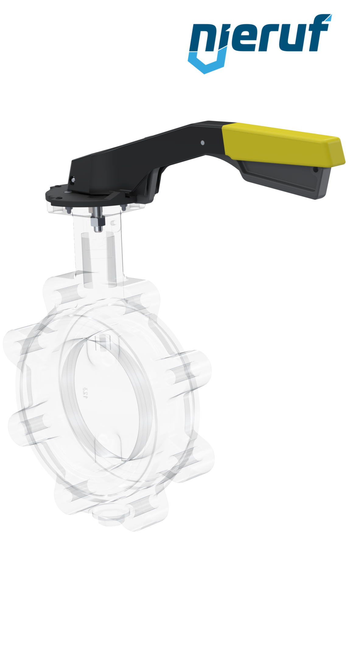 Przepustnica DN 125 PN10-PN16 dokołnierzowa/Lug korpus z żeliwa sferoidalnego z Dźwignia ręczna z żółtym rękawem NBR-70-czarny DVGW Gaz