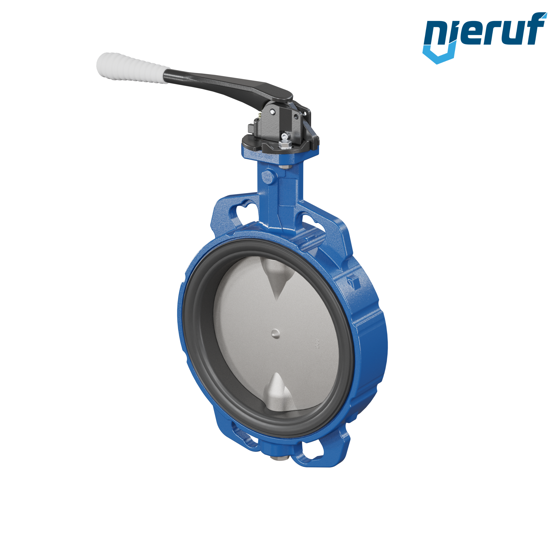 Przepustnica DN200 PN6-PN10-PN16 & ANSI150 międzykołnierzowa/Wafer z żeliwa sferoidalnego z dźwignią ręczną z szarym rękawem EPDM DVGW Woda pitna, WRAS, ACS, W270