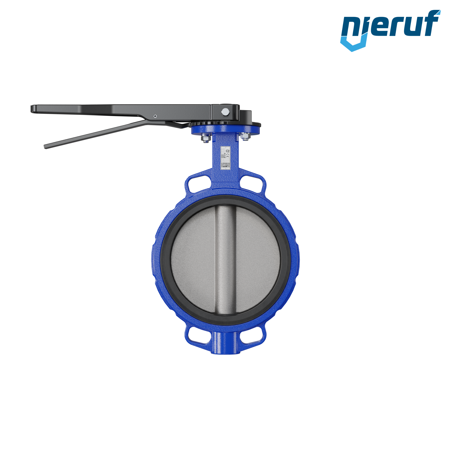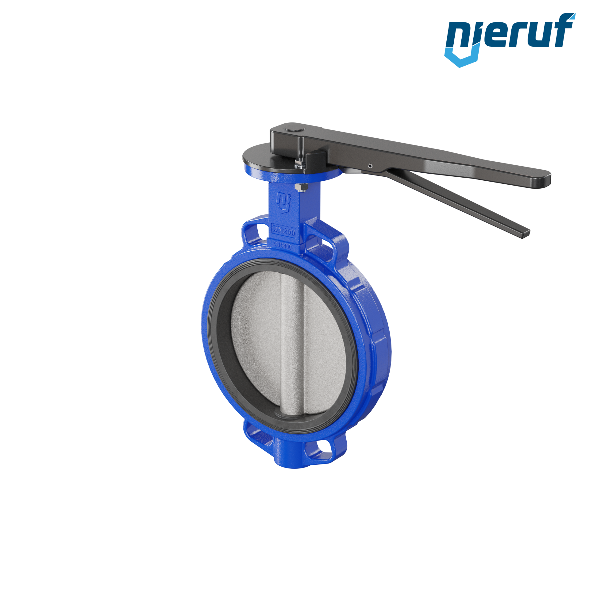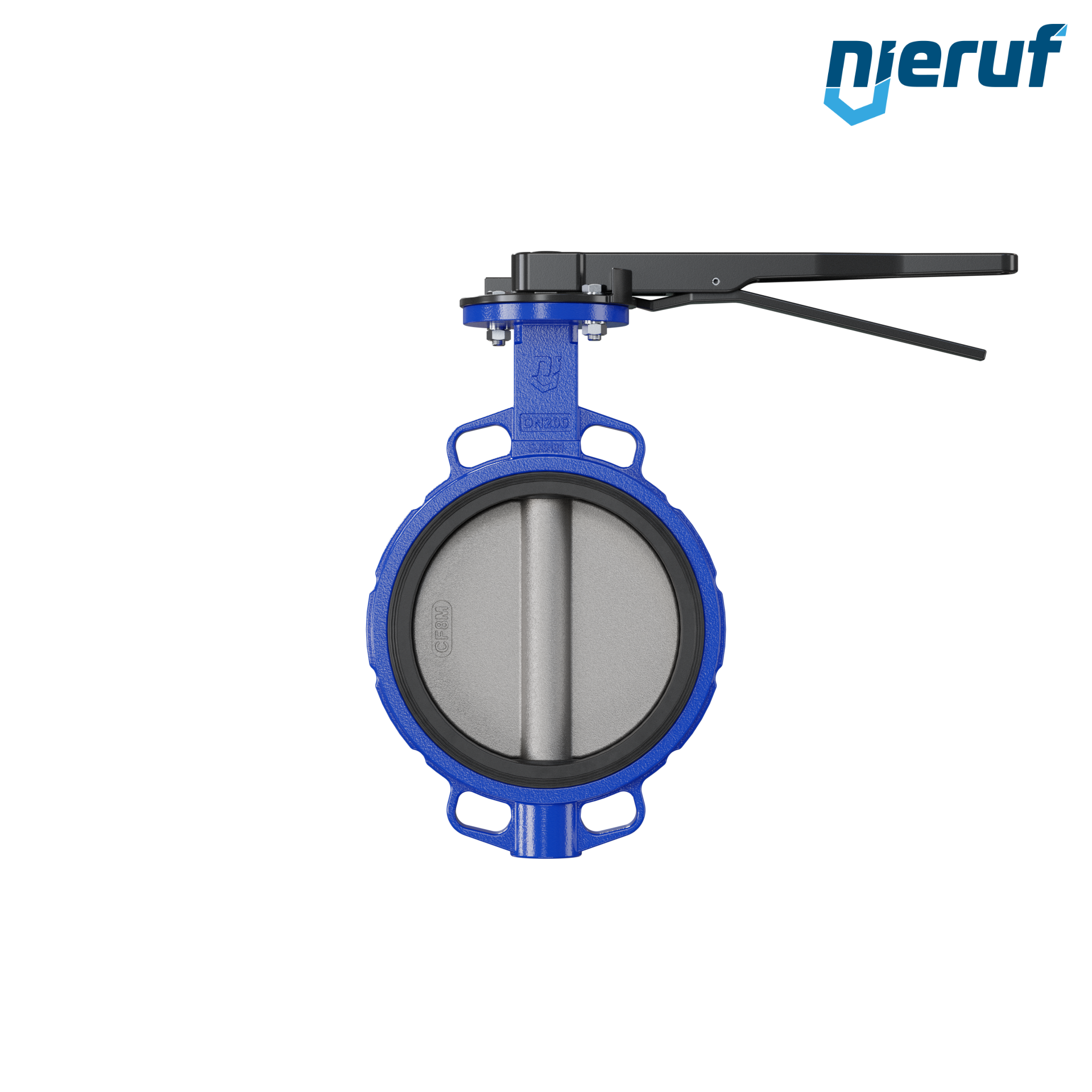 Przepustnica DN200 PN16 z otworami centrującymi, korpus z żeliwa EN GJL-250 (GG25), klapa ze stali nierdzewnej 1.4408, z manszetą EPDM i dźwignią ręczną