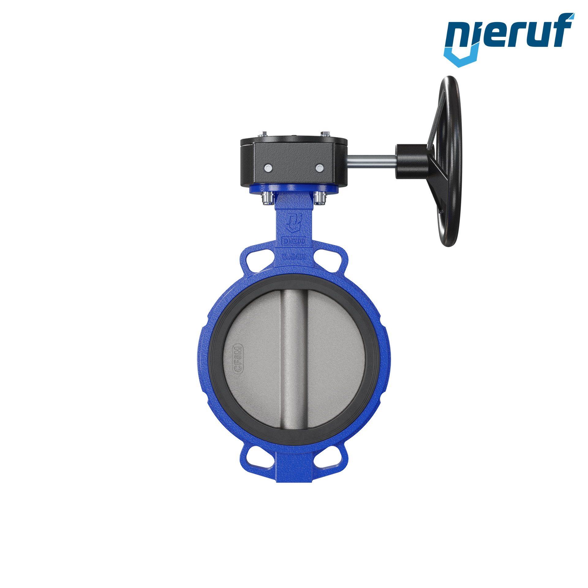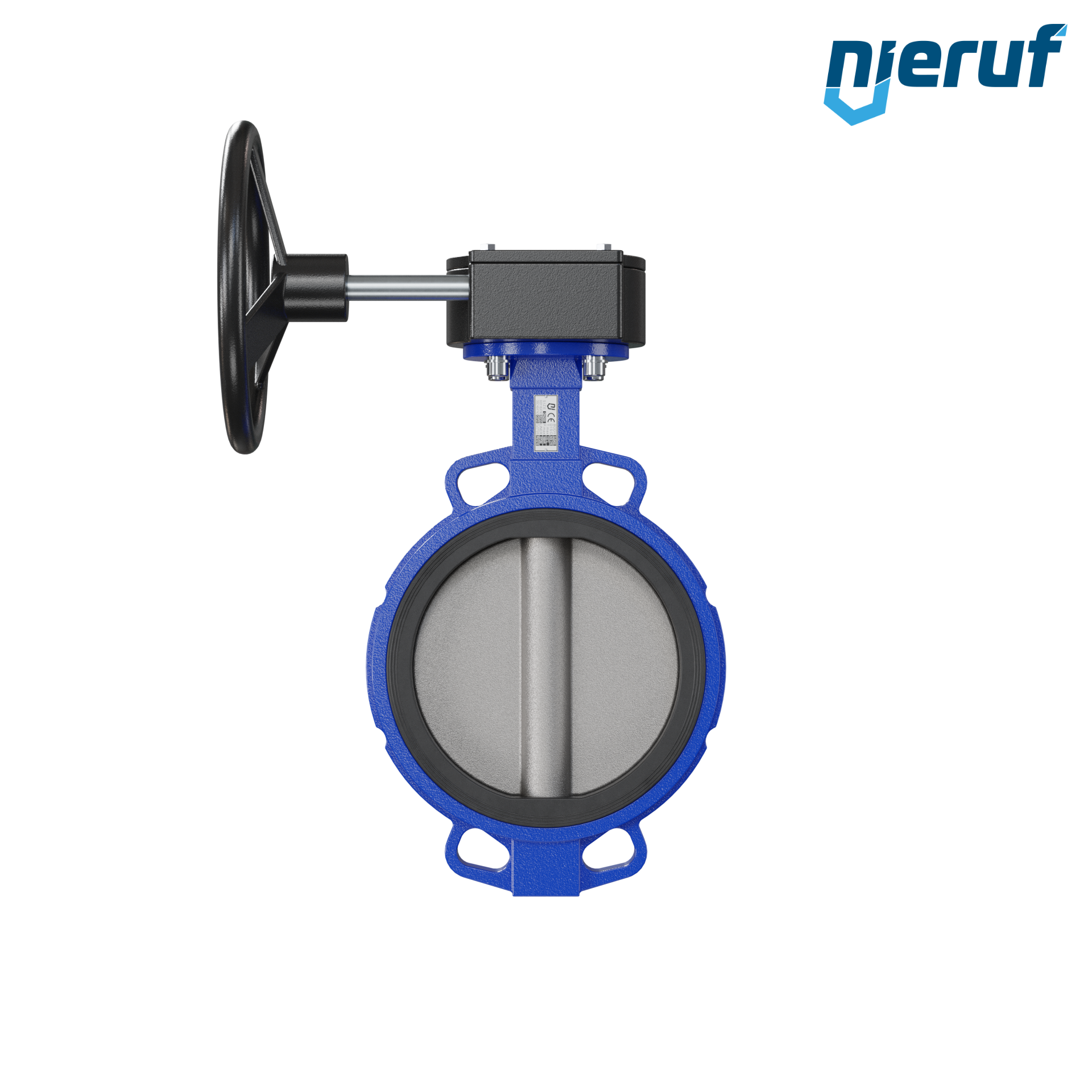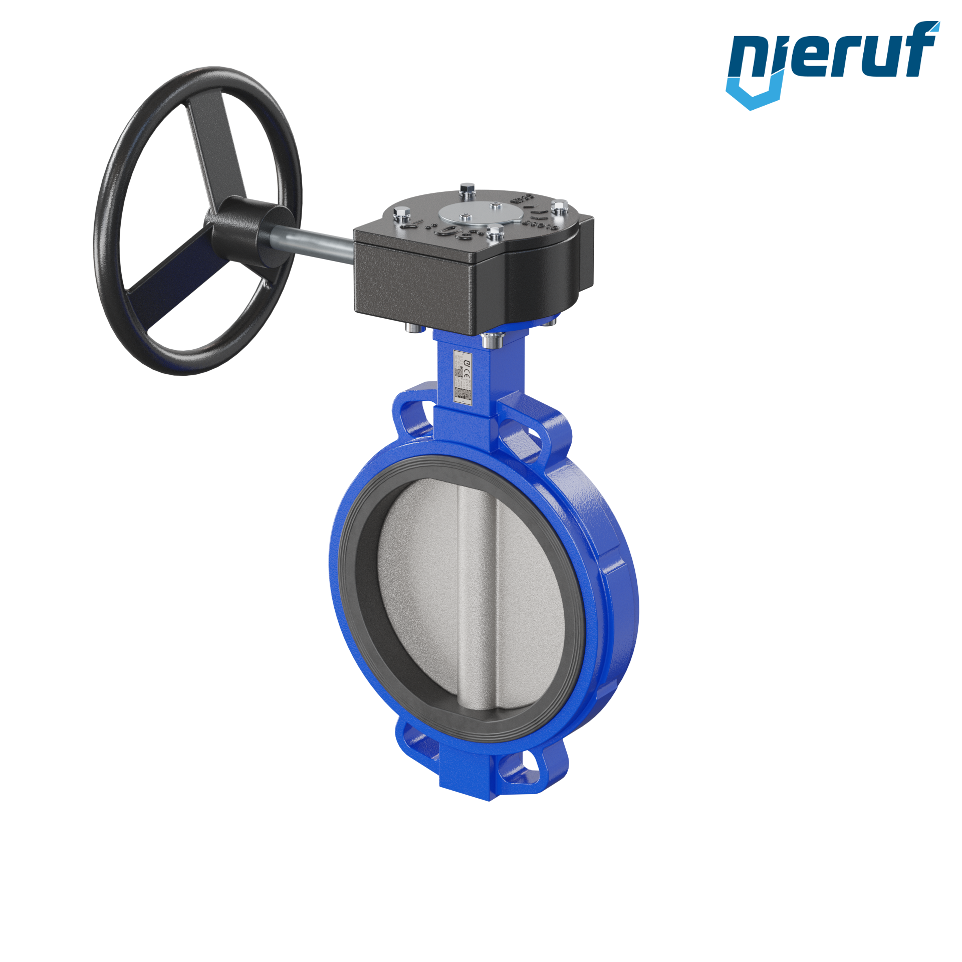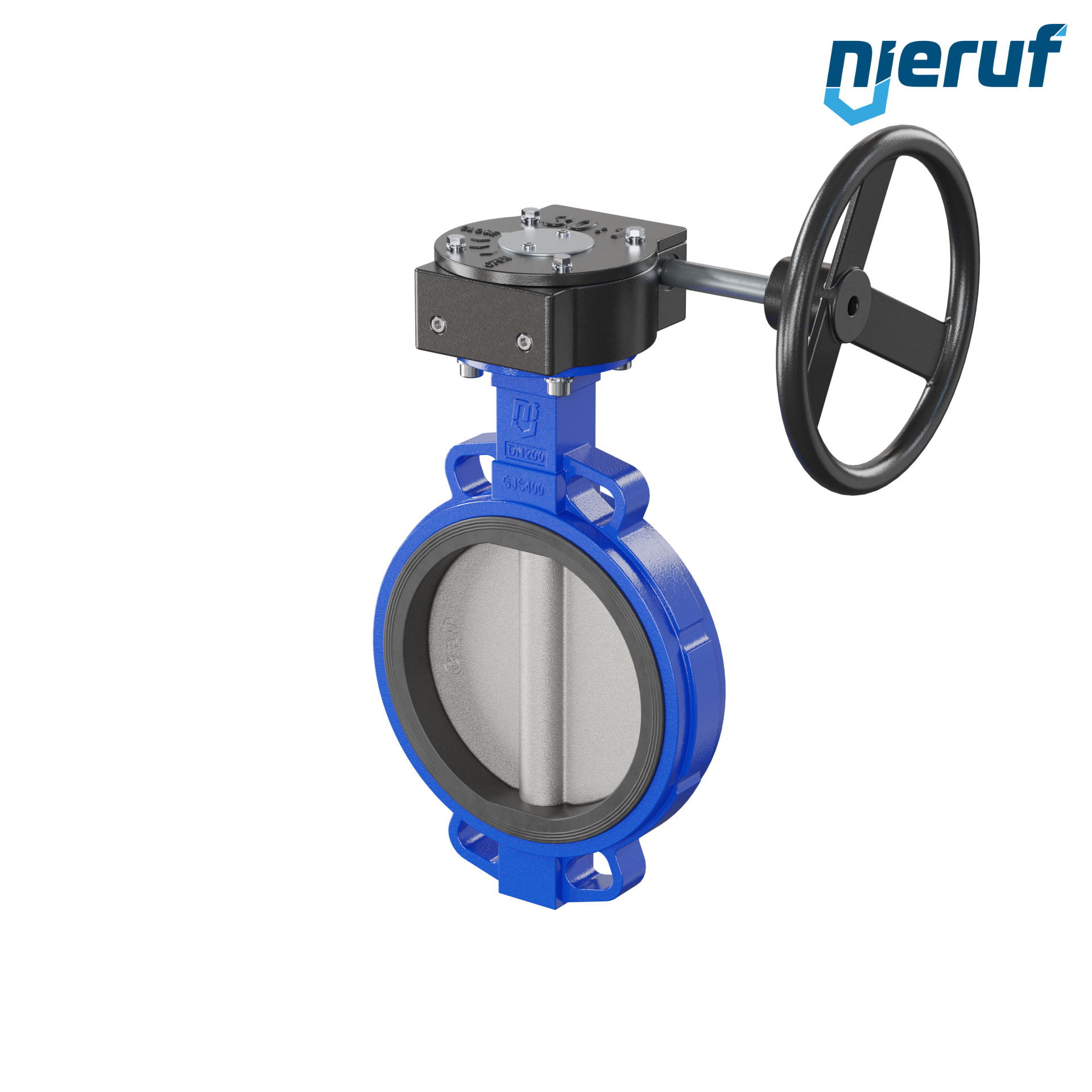 Przepustnica DN200 PN16 z otworami centrującymi, korpus z żeliwa EN GJL-250 (GG25), klapa ze stali nierdzewnej 1.4408, z manszetą NBR i przekładnią