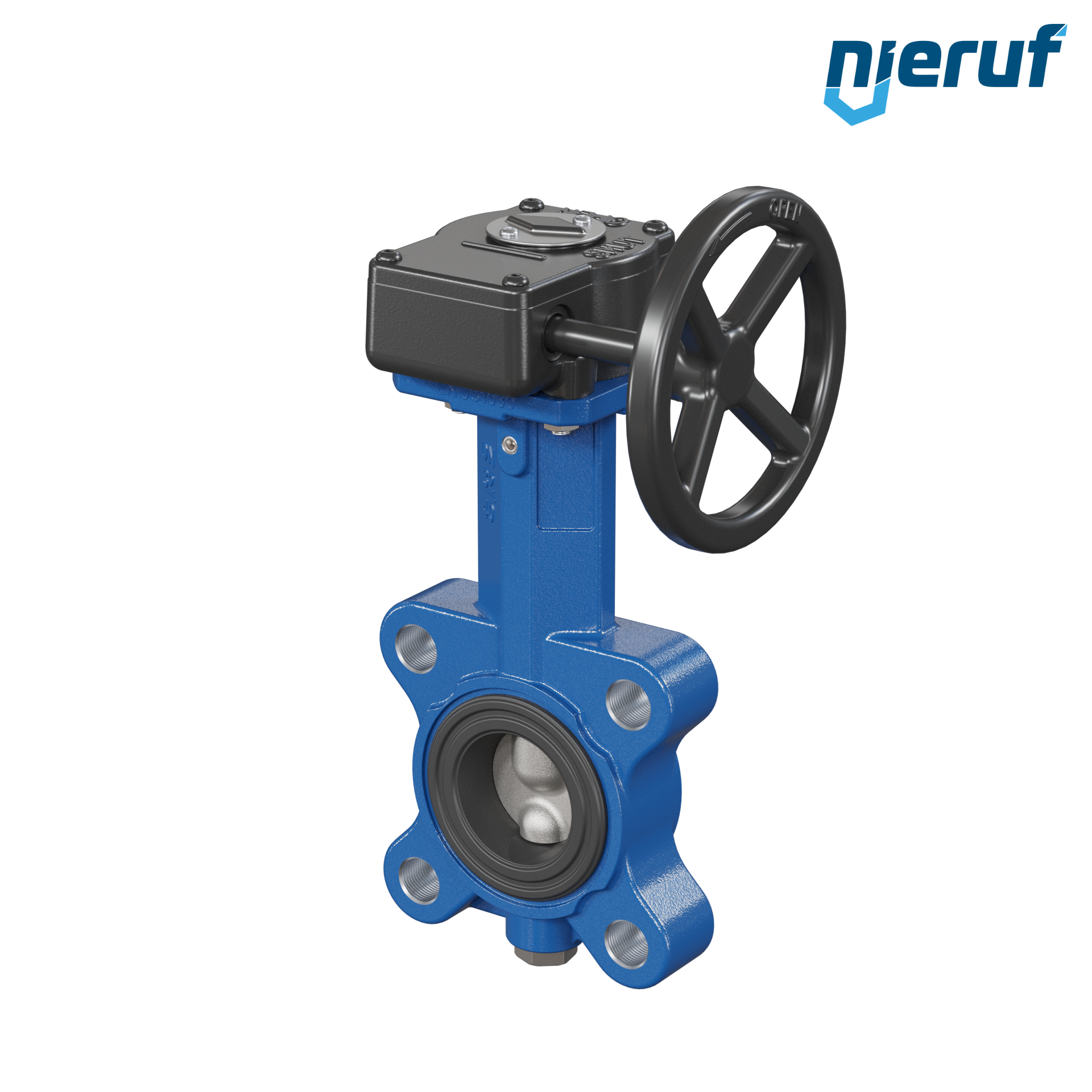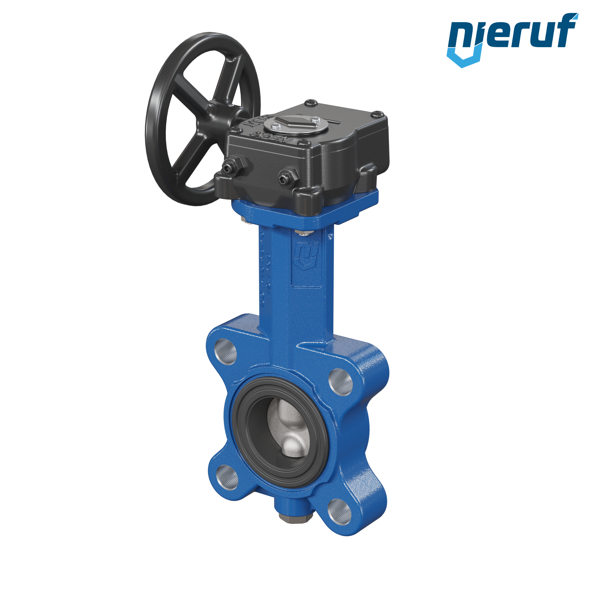 Przepustnica DN 32 PN10-PN16 dokołnierzowa/Lug korpus z żeliwa sferoidalnego z przekładnią ślimakową NBR-70-czarny DVGW Gaz