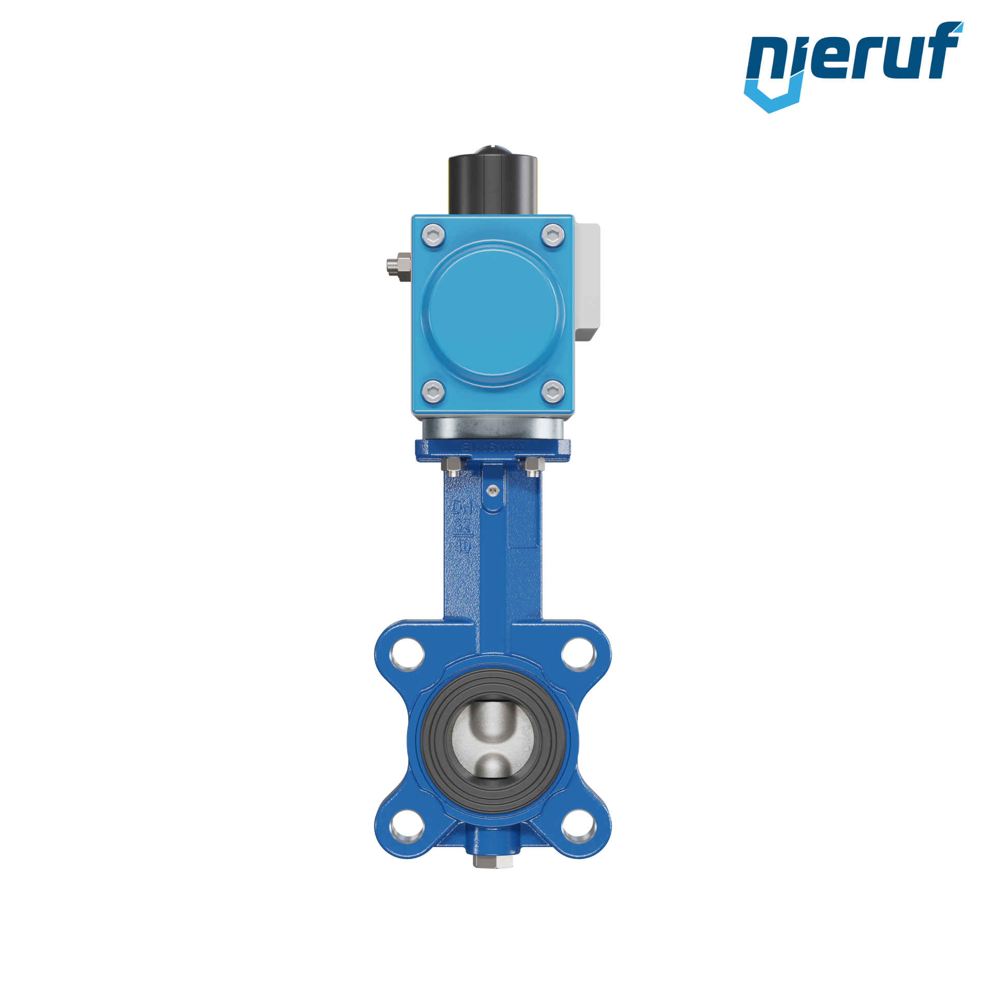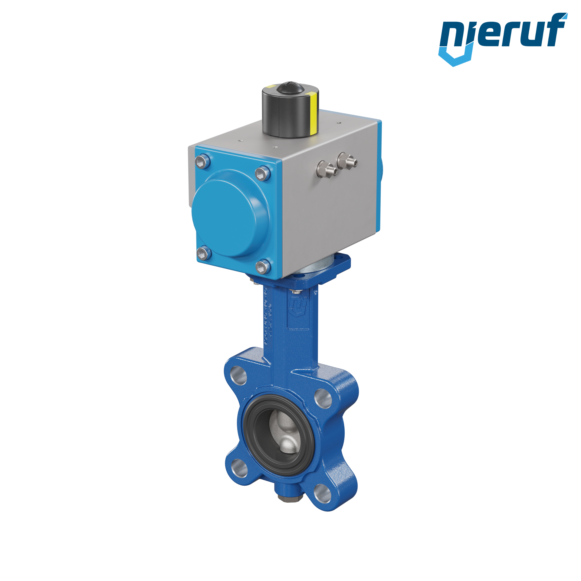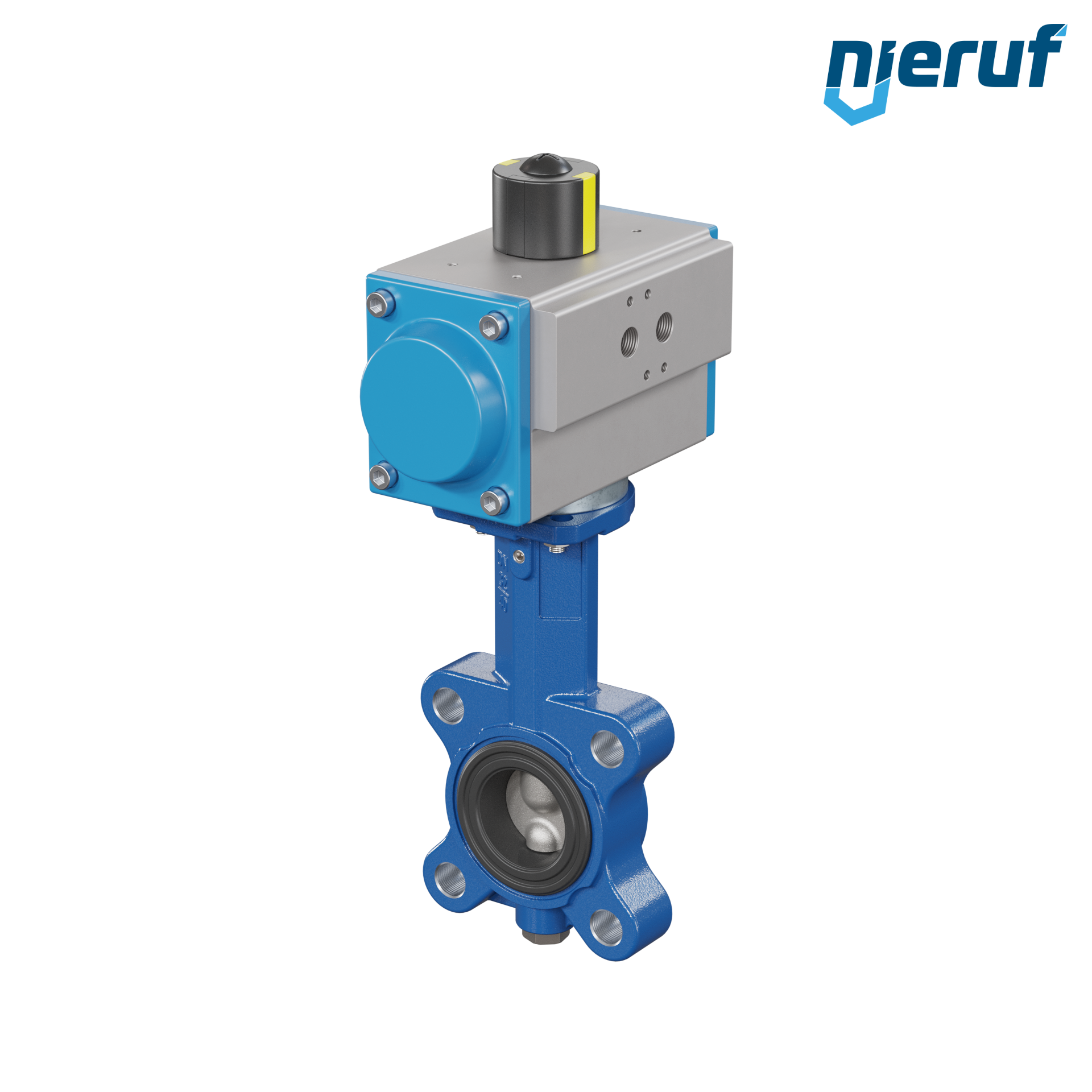 Przepustnica DN 32 PN10-PN16 dokołnierzowa/Lug korpus z żeliwa sferoidalnego z Pneumatycznym napędem obrotowym jednostronnego działania NBR-70-czarny DVGW Gaz